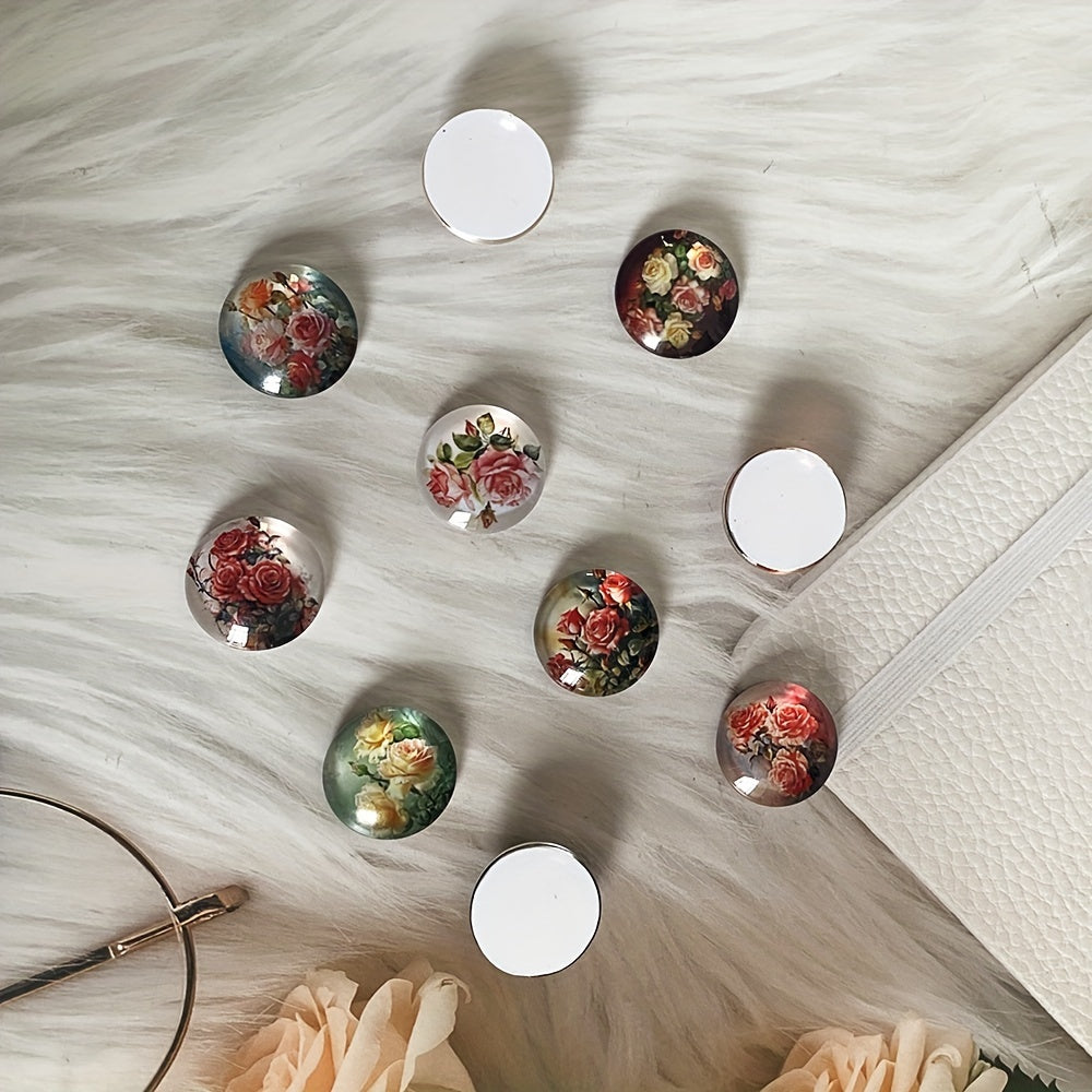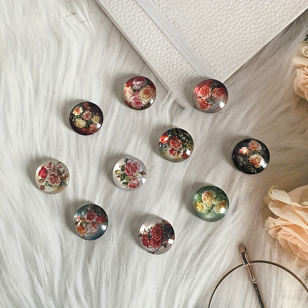 Create stunning jewelry and crafts with these 20mm flat back round mosaic glass cabochons featuring beautiful floral rose designs.