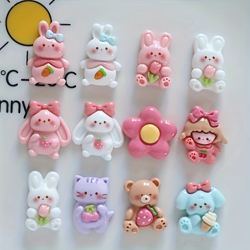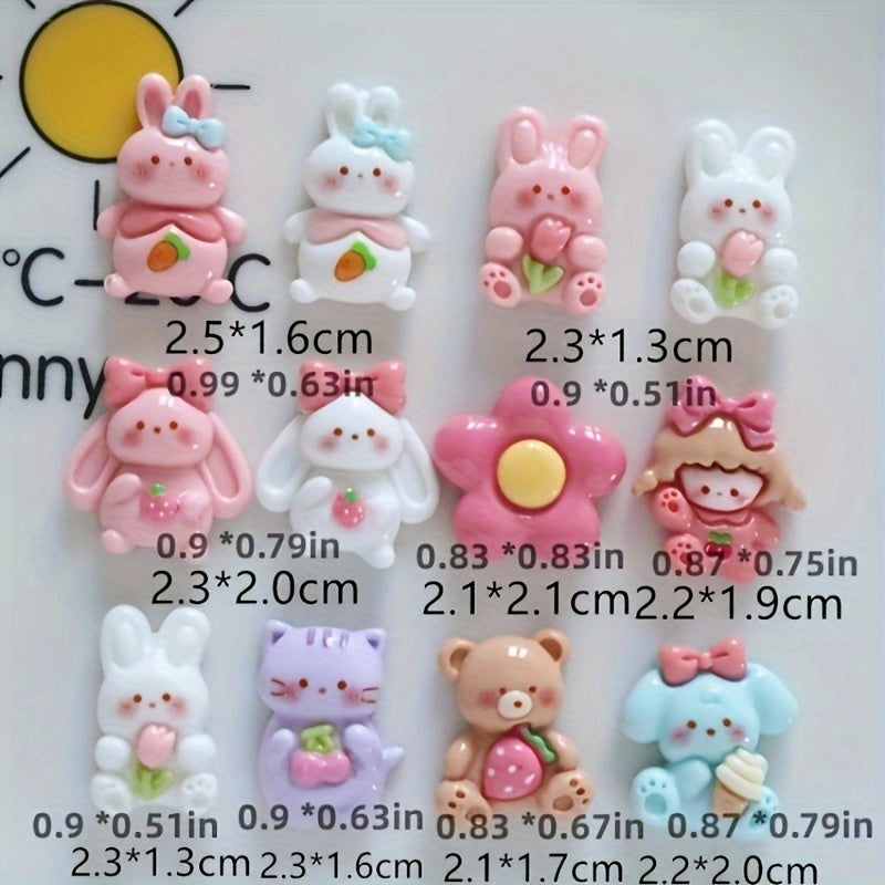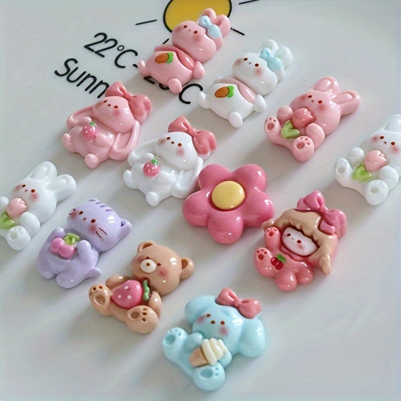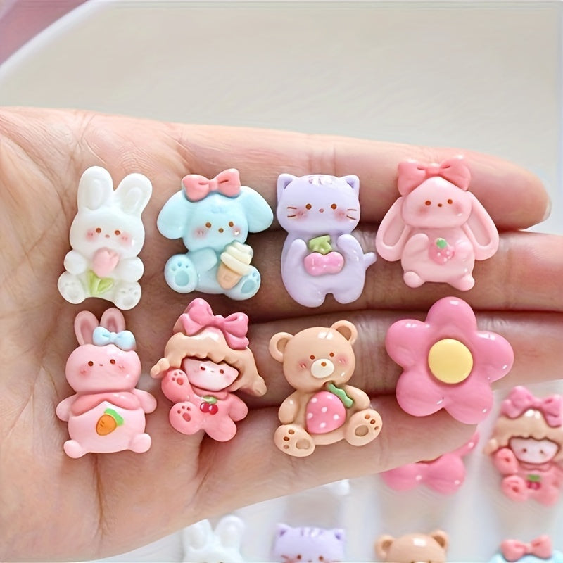 Adorable animal-themed resin charms with glue for creating earrings and hair accessories.