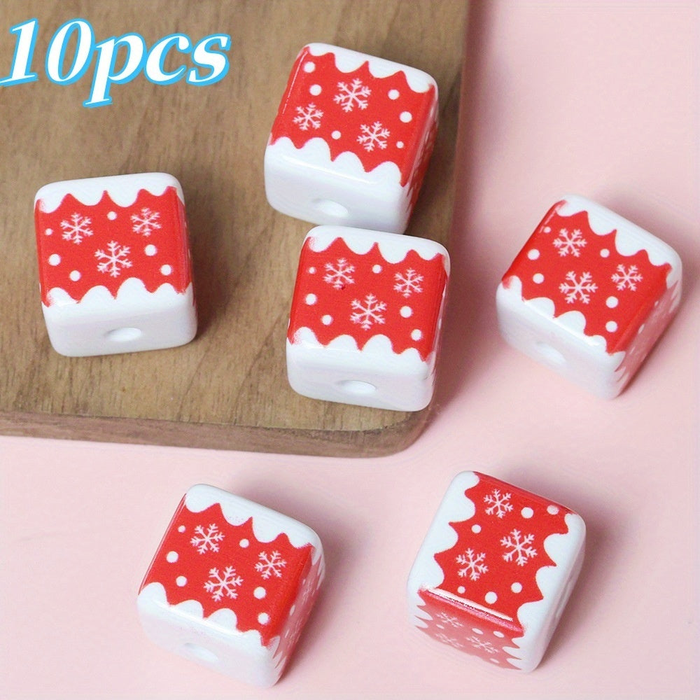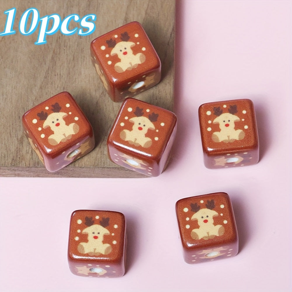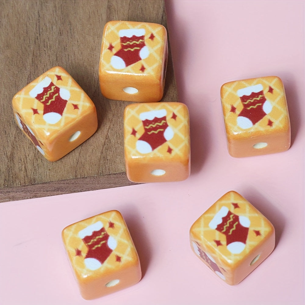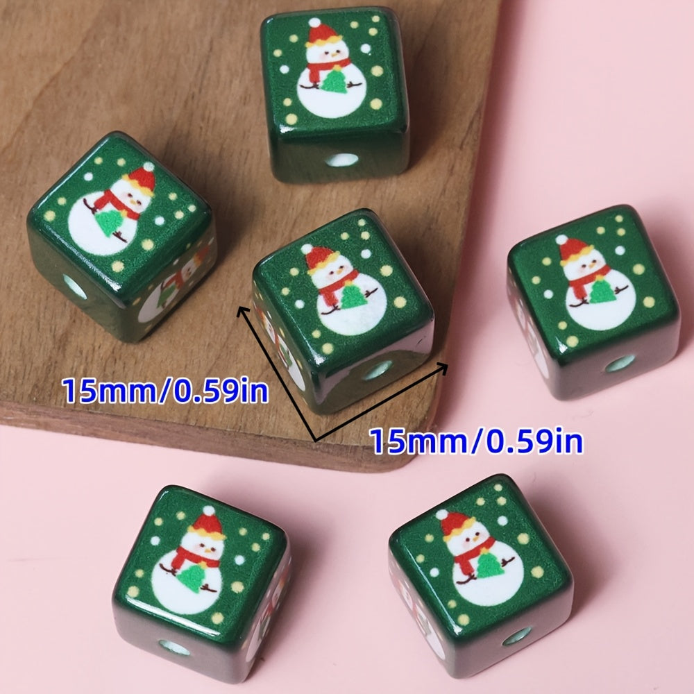 Add a festive touch to your jewelry creations with these Christmas-themed beads. The set includes red, green, golden, and brown square beads featuring Santa hats and trees.