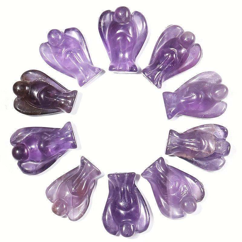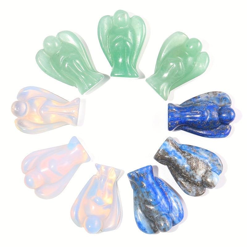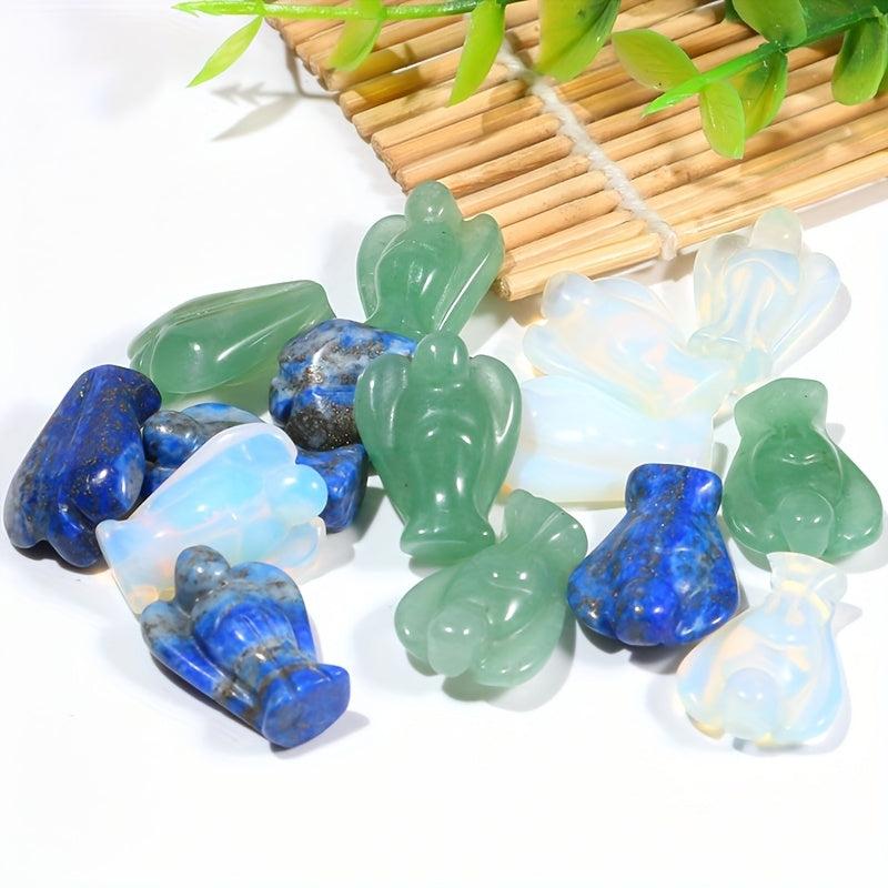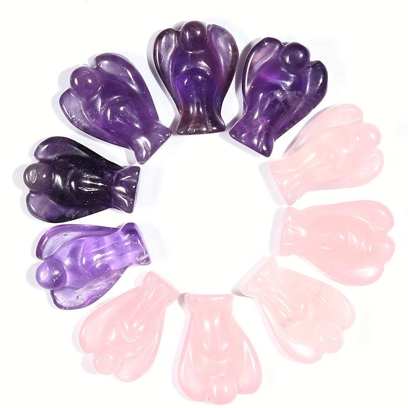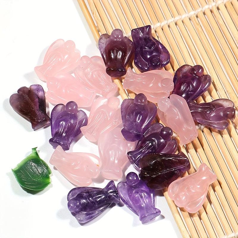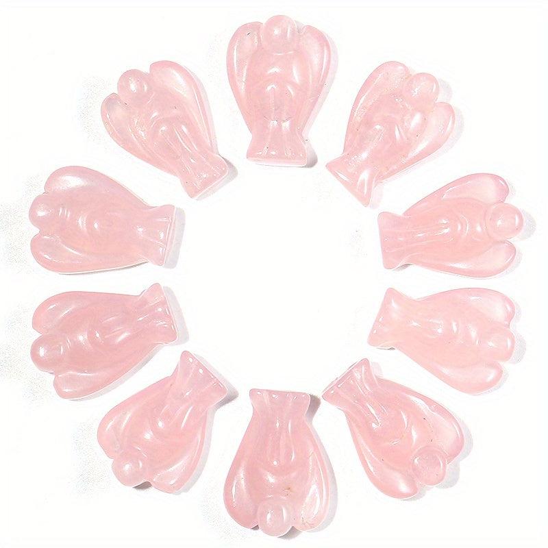 Add a touch of elegance with these 10 mini carved angel rose quartz stone ornaments. Perfect for DIY jewelry projects or as charming home decorations.