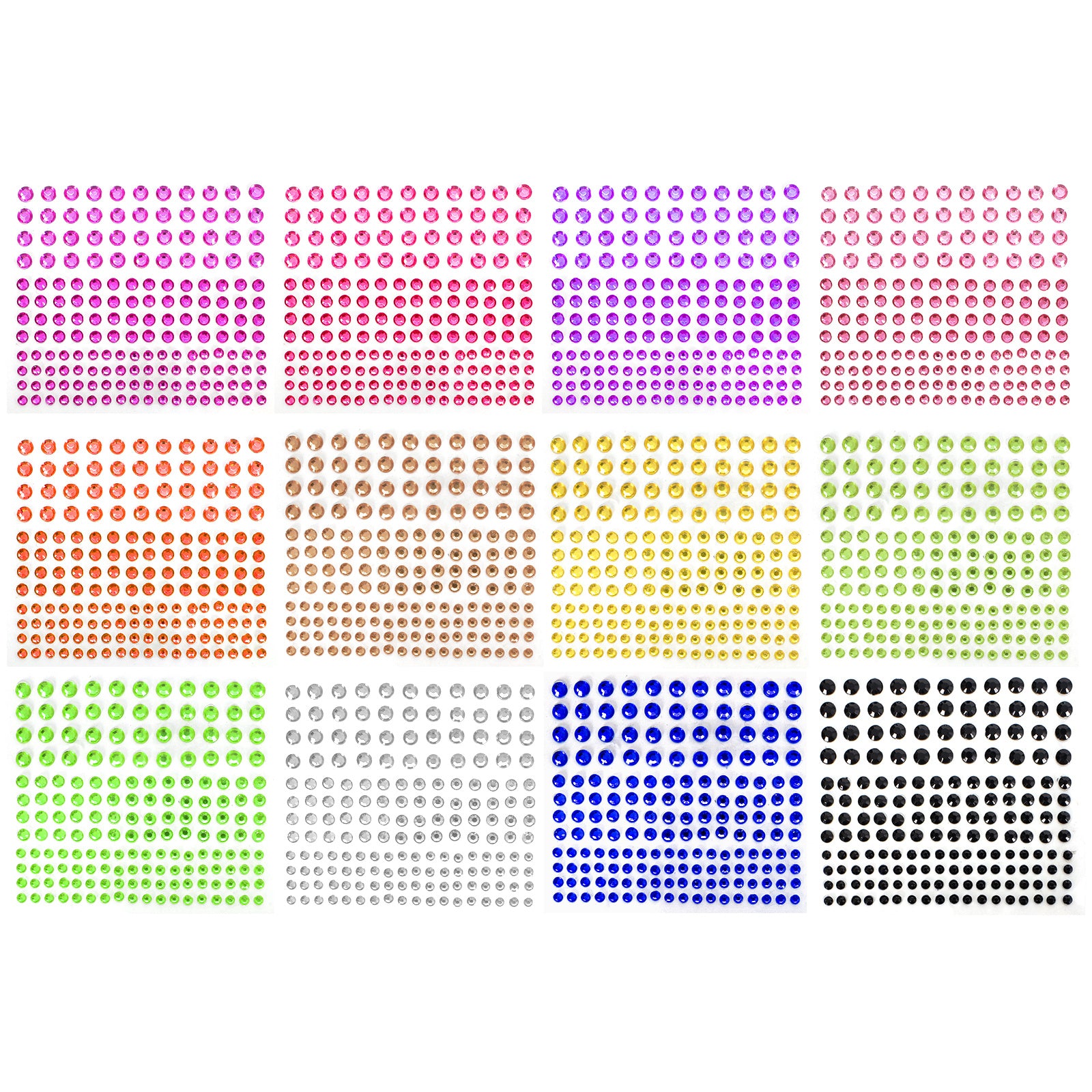 • Each sheet features a variety of colors and sizes of rhinestones