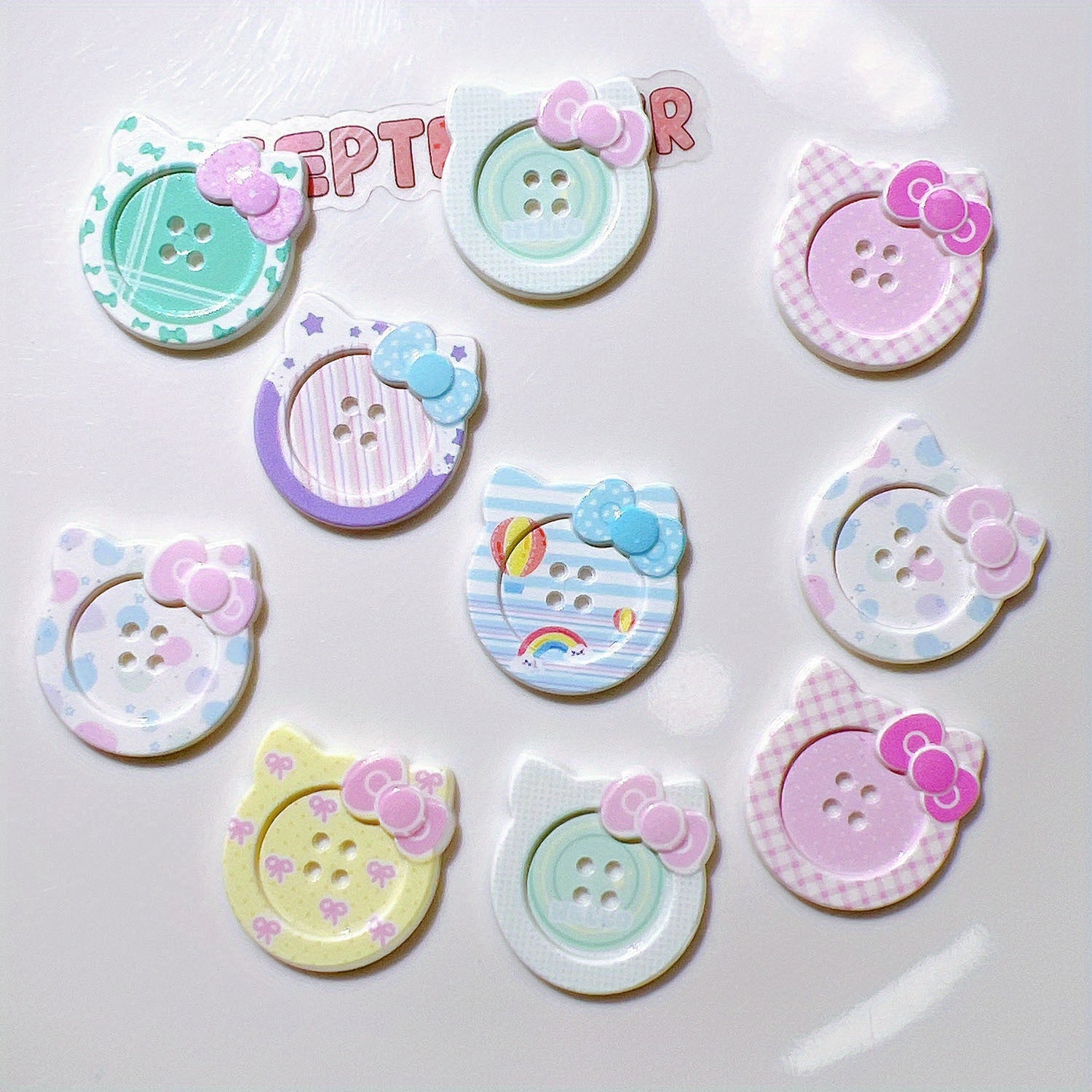 Add a touch of cuteness to your crafts with these adorable cat buttons featuring bows and polka dots in pastel colors. Perfect for DIY projects, jewelry making, clothing embellishments, and scrapbooking.