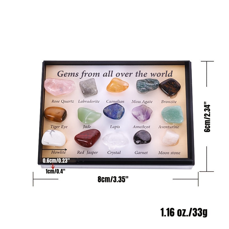 This set includes 15 pieces of natural crystal agate stone ore specimens that showcase the beauty of these minerals. These polished stones are perfect for collecting, display, or metaphysical use.