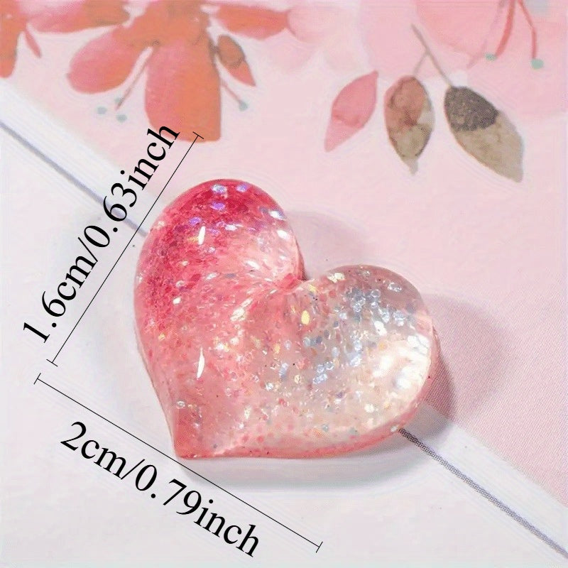 Create stunning jewelry pieces with these pink gradient glitter heart-shaped resin charms. Perfect for DIY projects, these charms are 0.63x0.79 inches in size and can be used to make unique hair clips and accessories.
