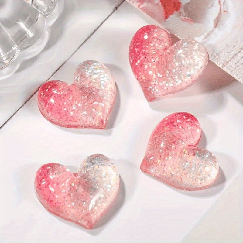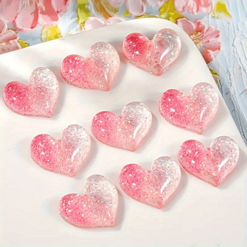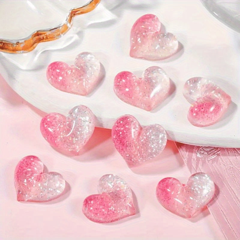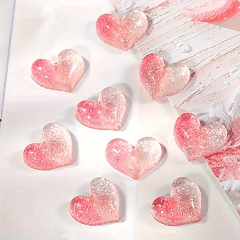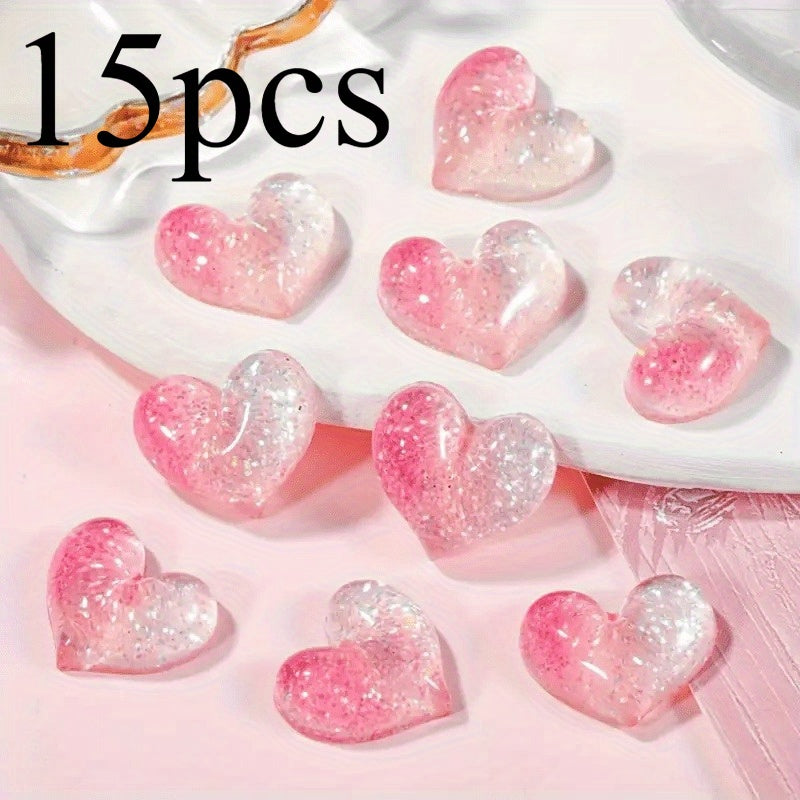 15pcs Pink Glitter Heart Shaped Resin Charms for Jewelry Making