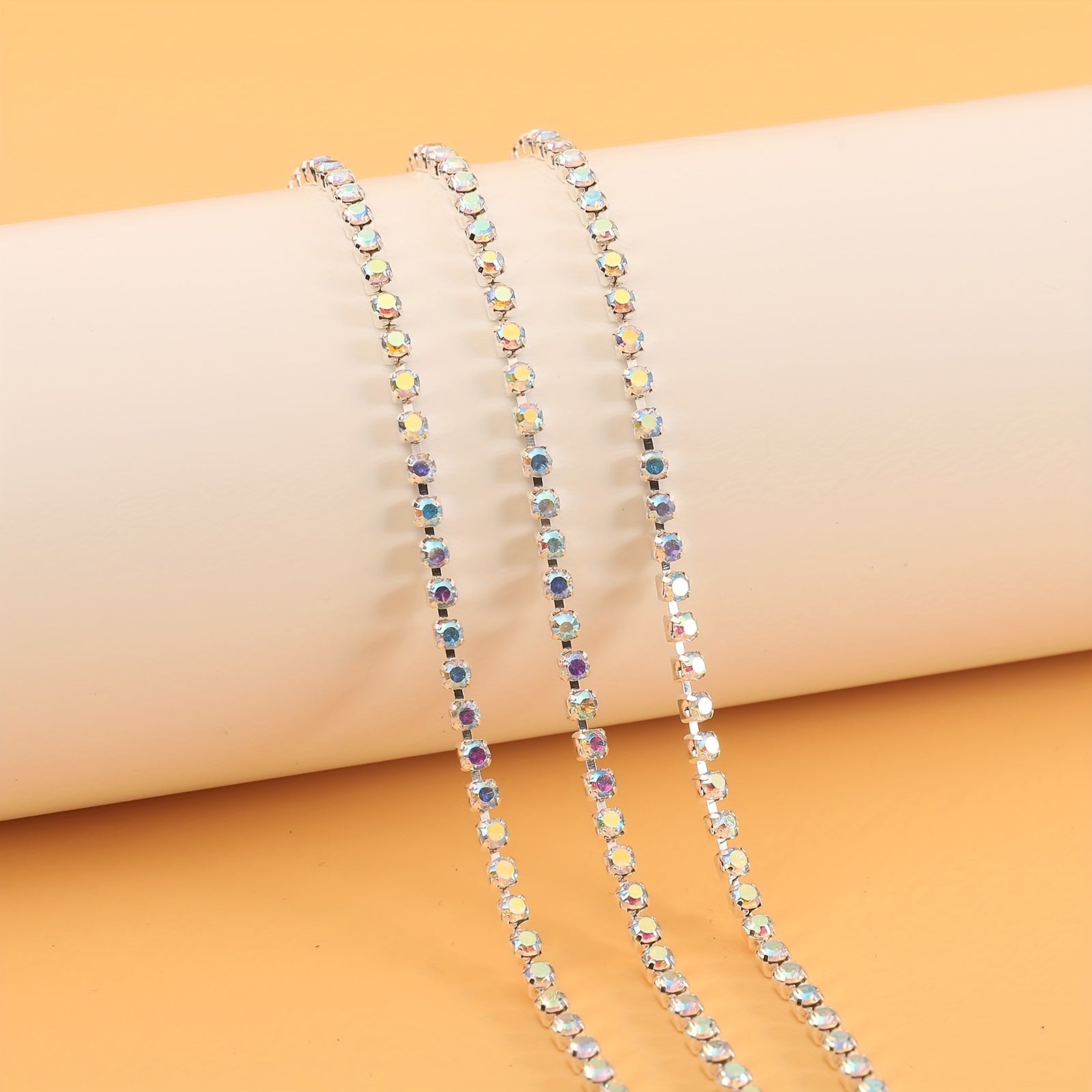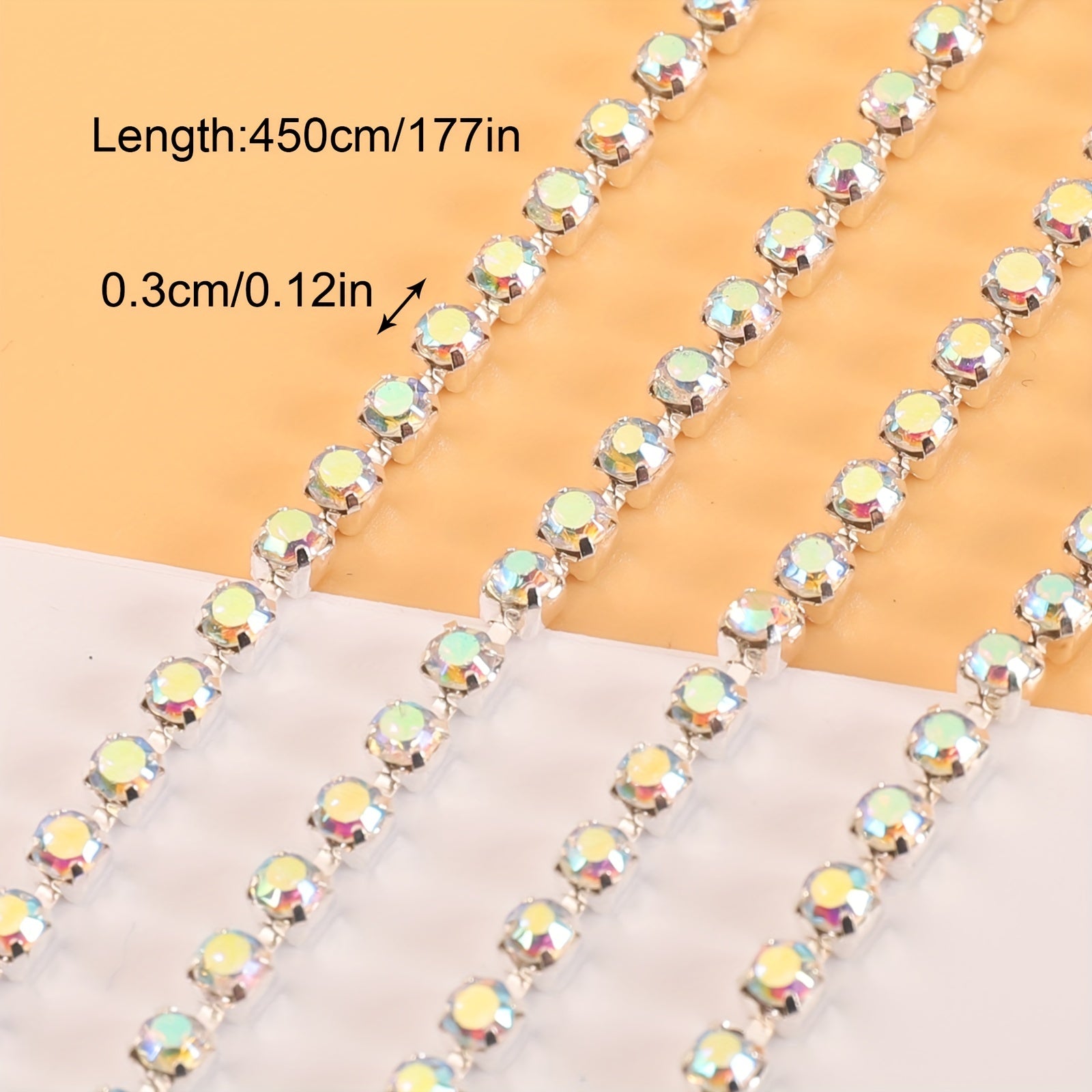 This 177 17inch Flash Silver AB Rhinestone Chain is perfect for decorating mobile phone cases, shoes, clothing, and more. Add a touch of sparkle to your DIY projects.