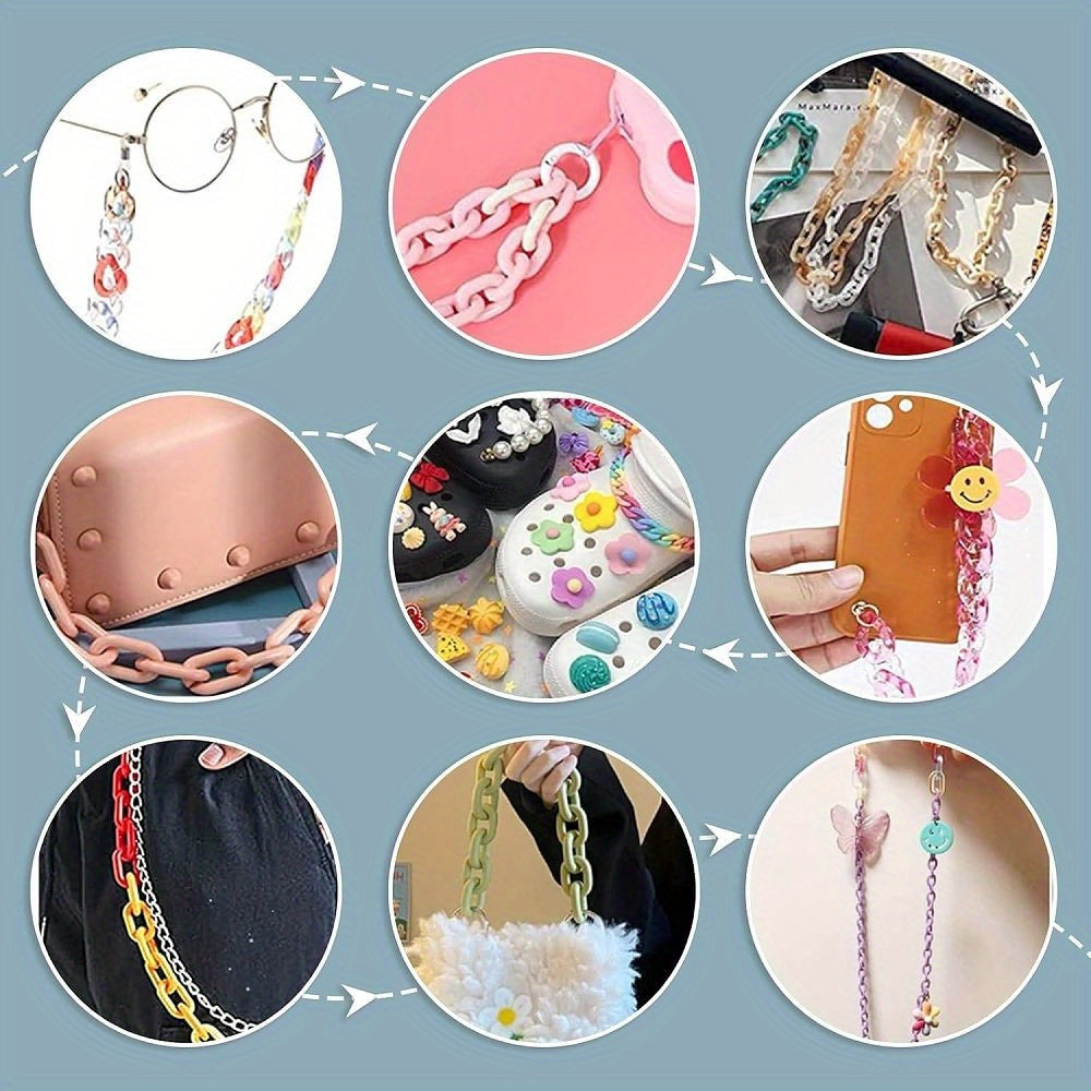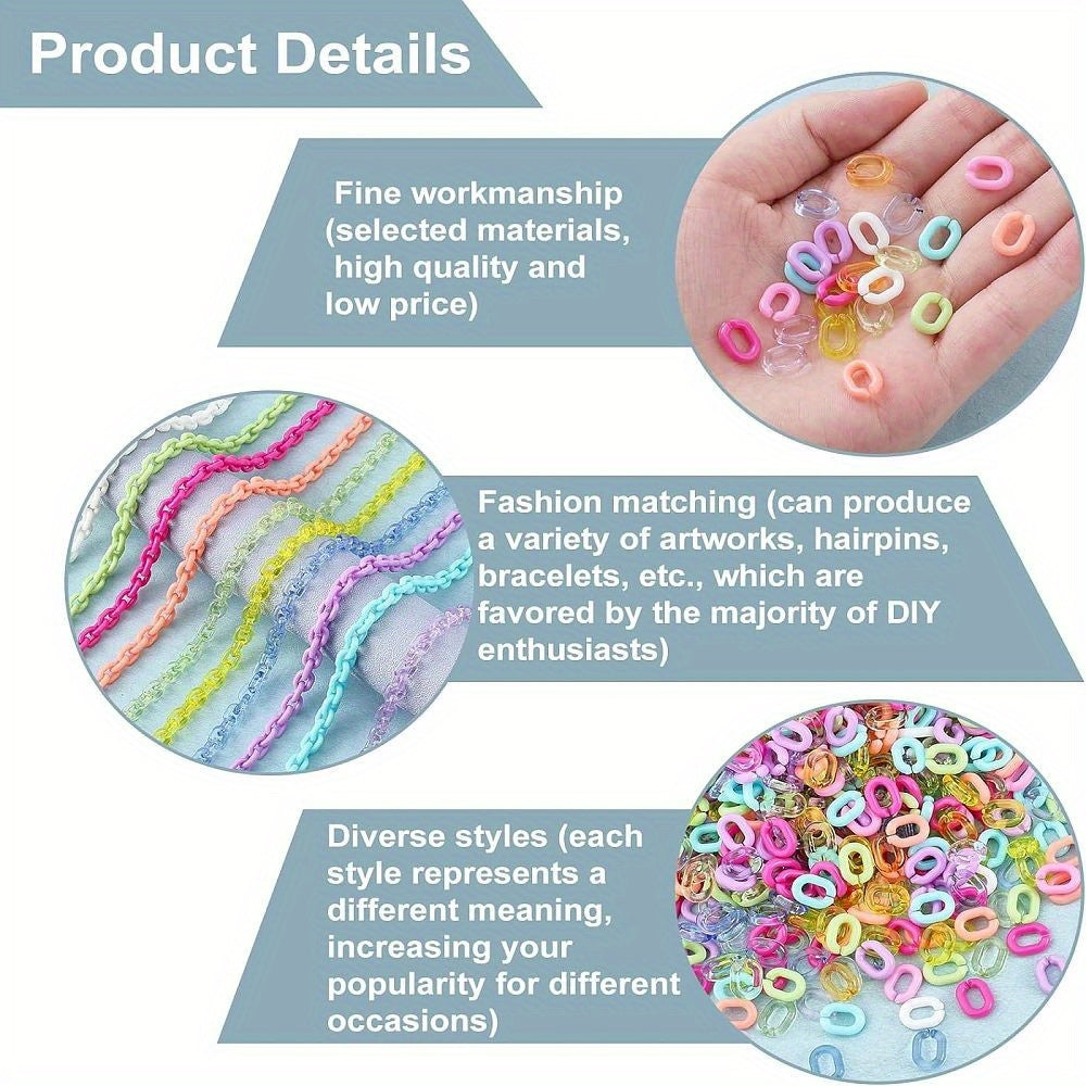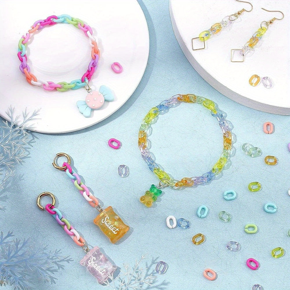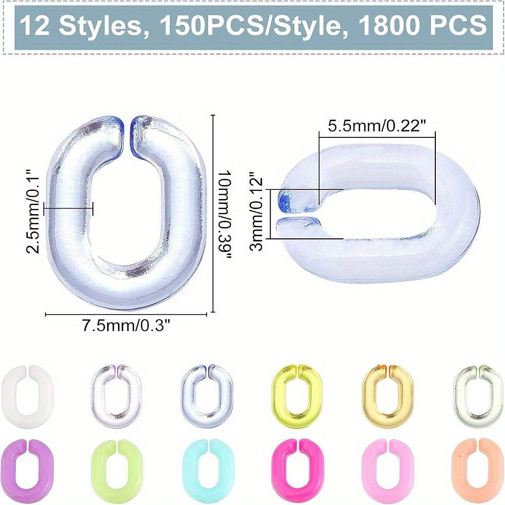 This set includes 1800 mixed acrylic linking rings in 12 different styles, perfect for creating earrings, necklaces, and eyeglass chains. Each ring measures 10x7.5mm, making them ideal for various jewelry projects.