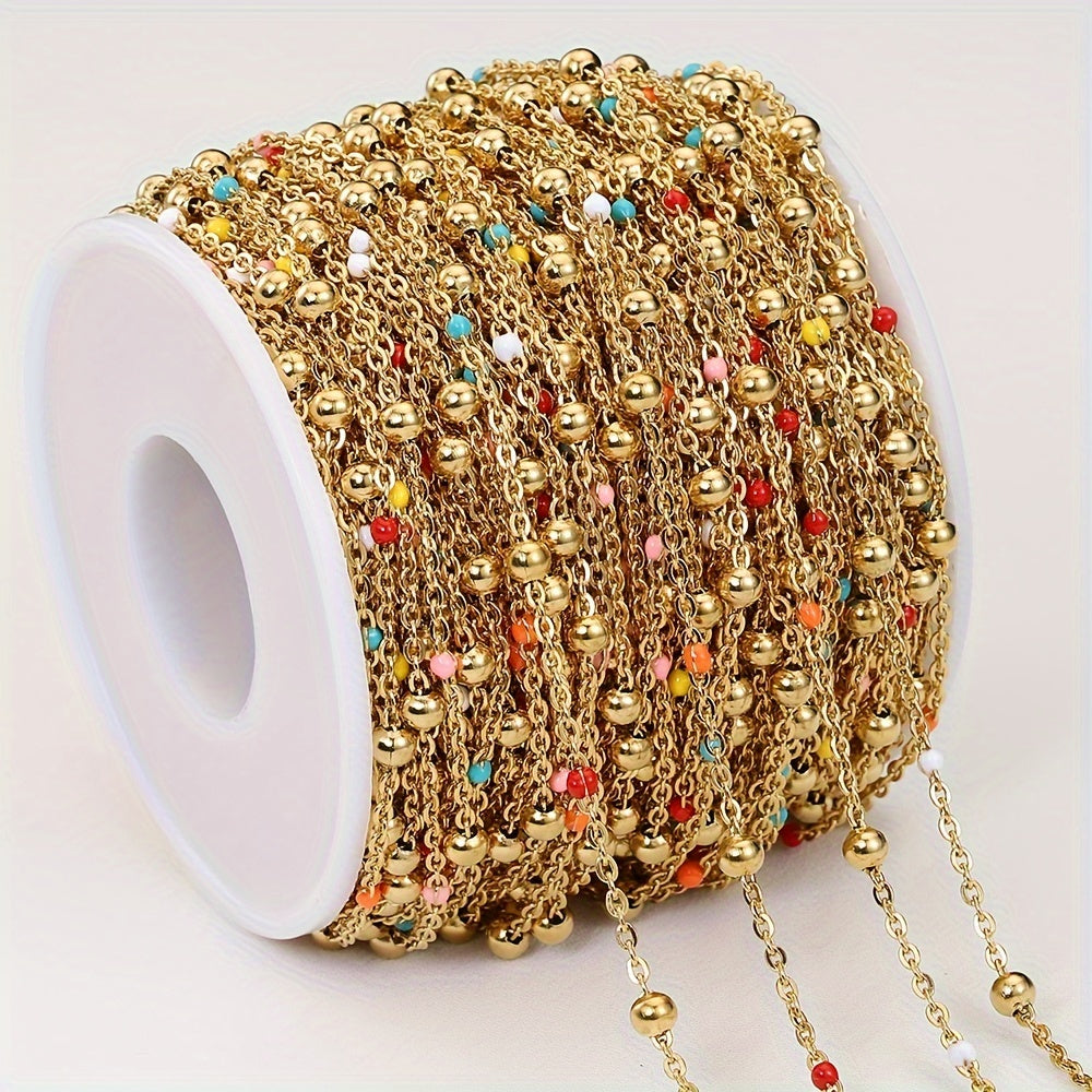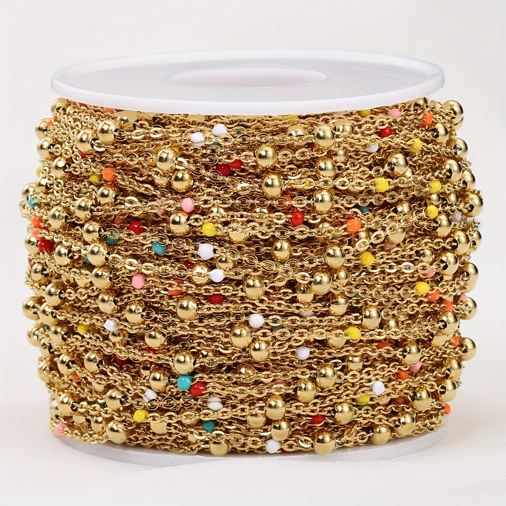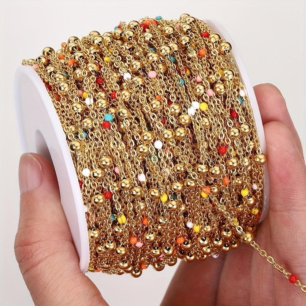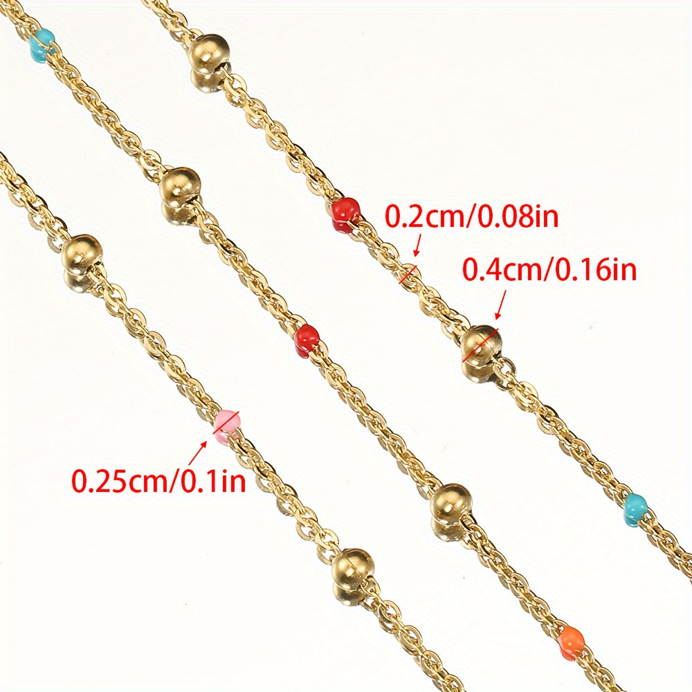 Create unique bracelets and necklaces with this stainless steel chain featuring multicolor enamel rice beads. Perfect for DIY jewelry crafting projects.