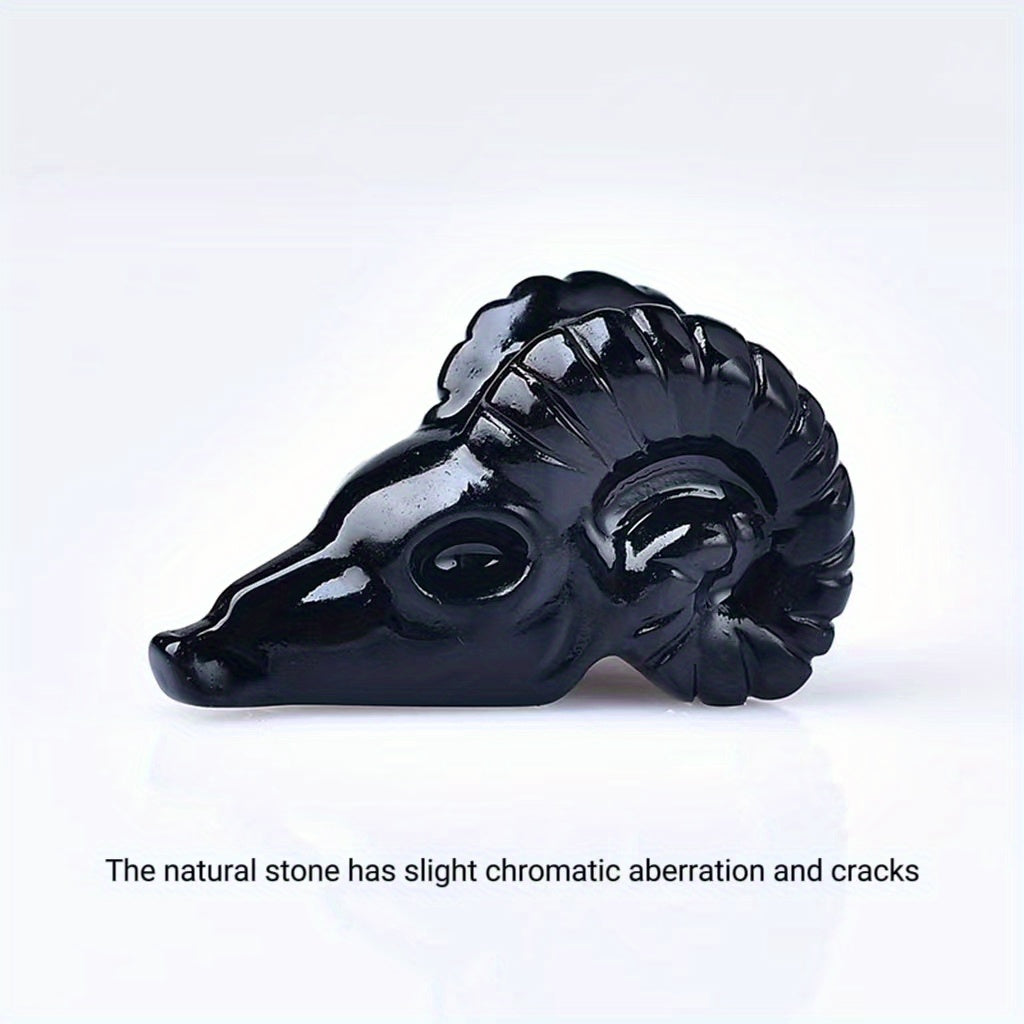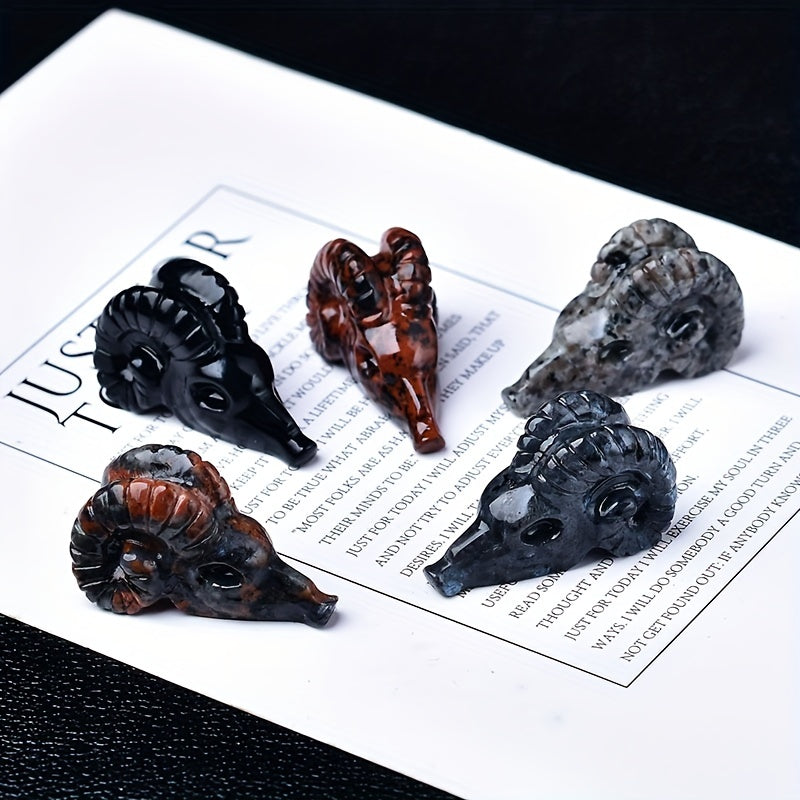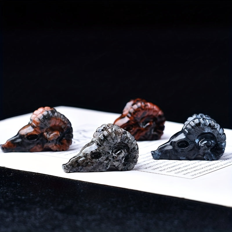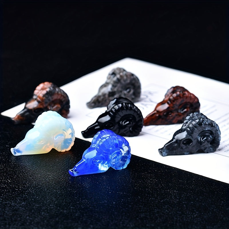 1pc 1.57in 3 Crystal Carved Goat Skull Crystal Statue Pocket Decoration