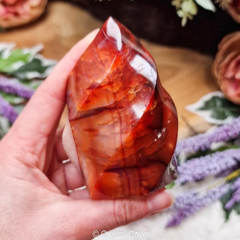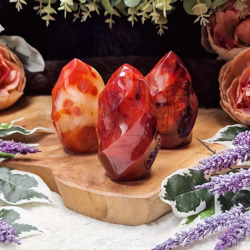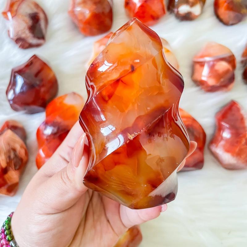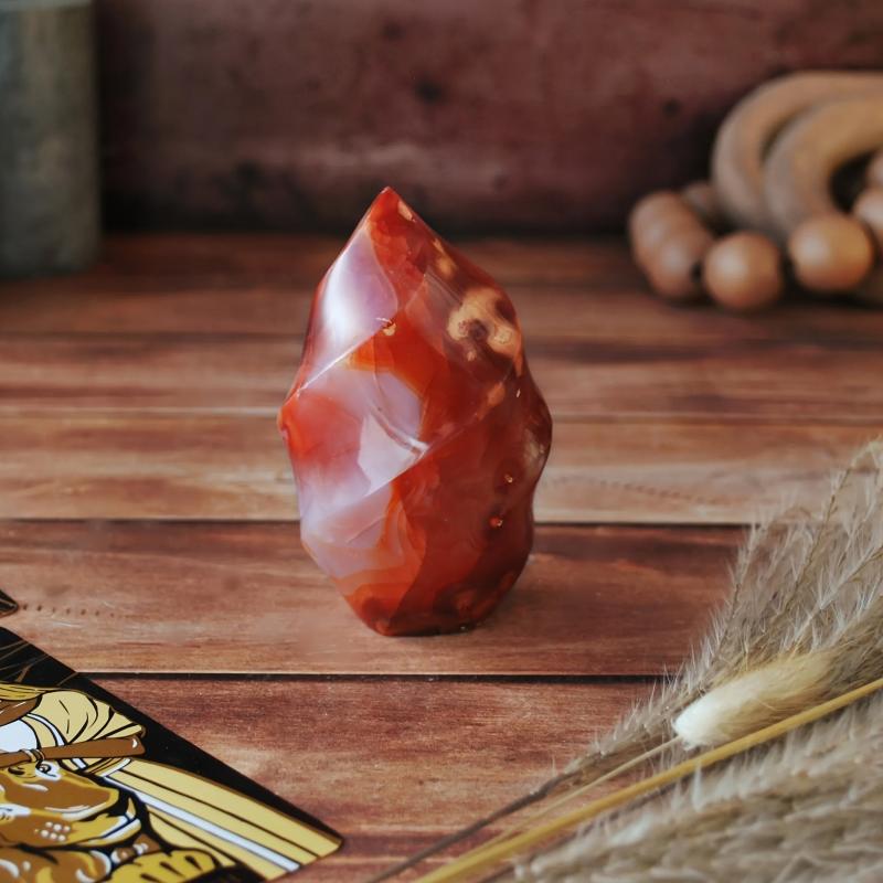 • Handcrafted Carnelian Torch Red Agate Flame stone