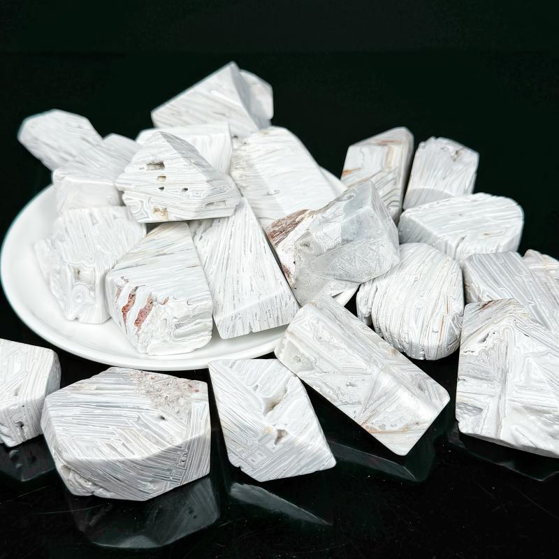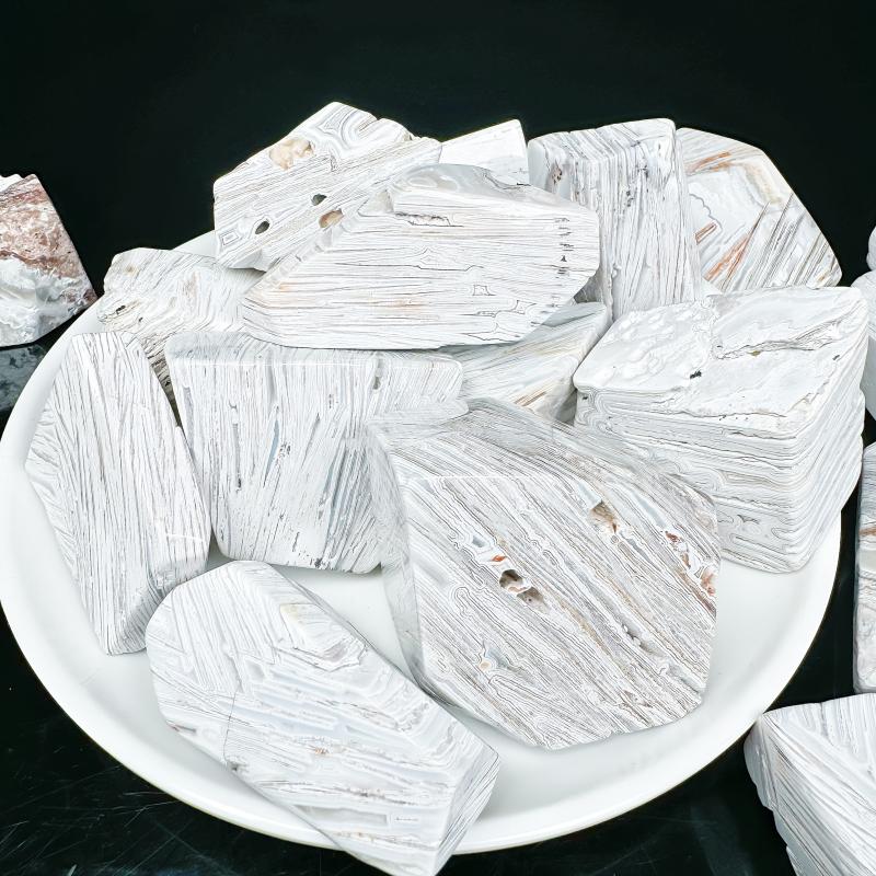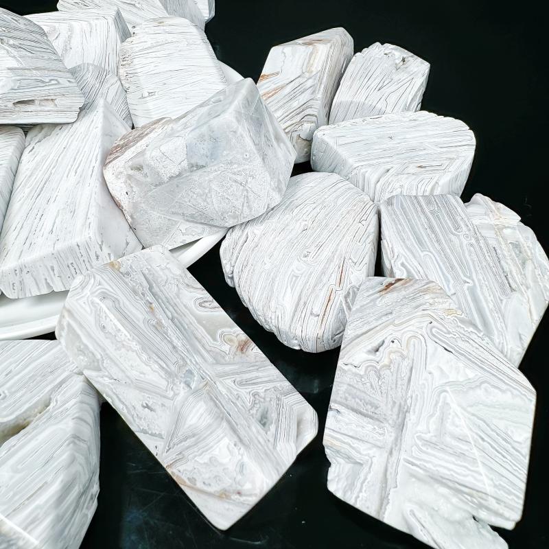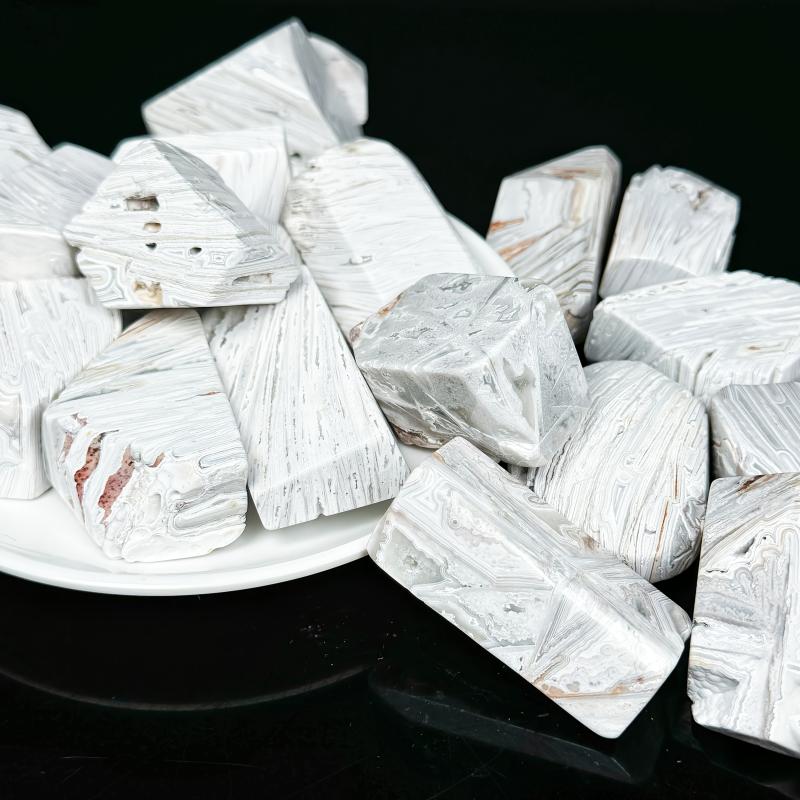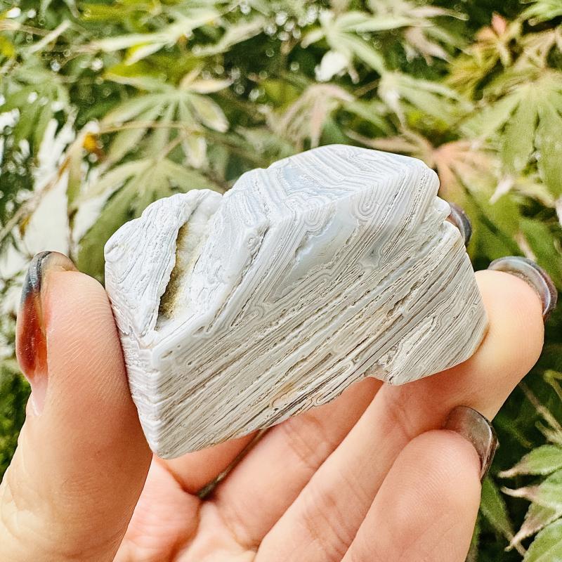 This Mexican Agate features a random texture, perfect for home decor or as a holiday gift. The natural stone contains irregular cracks and crystal formations.