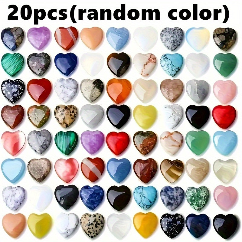 Polished love stones in a set of 20 heart-shaped faux gemstones, perfect for Valentine's and Mother's Day gifts or DIY jewelry making.