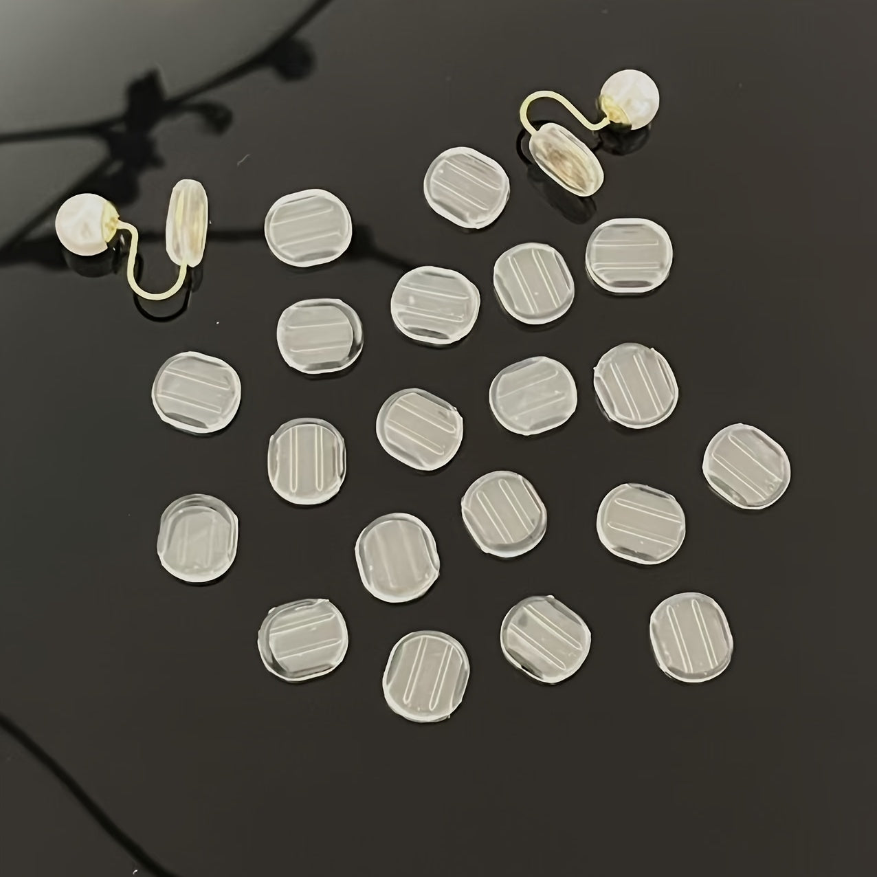 Get these transparent silicone earring pads for a comfortable fit with clip-on earrings. Suitable for clip-on earring back accessories.