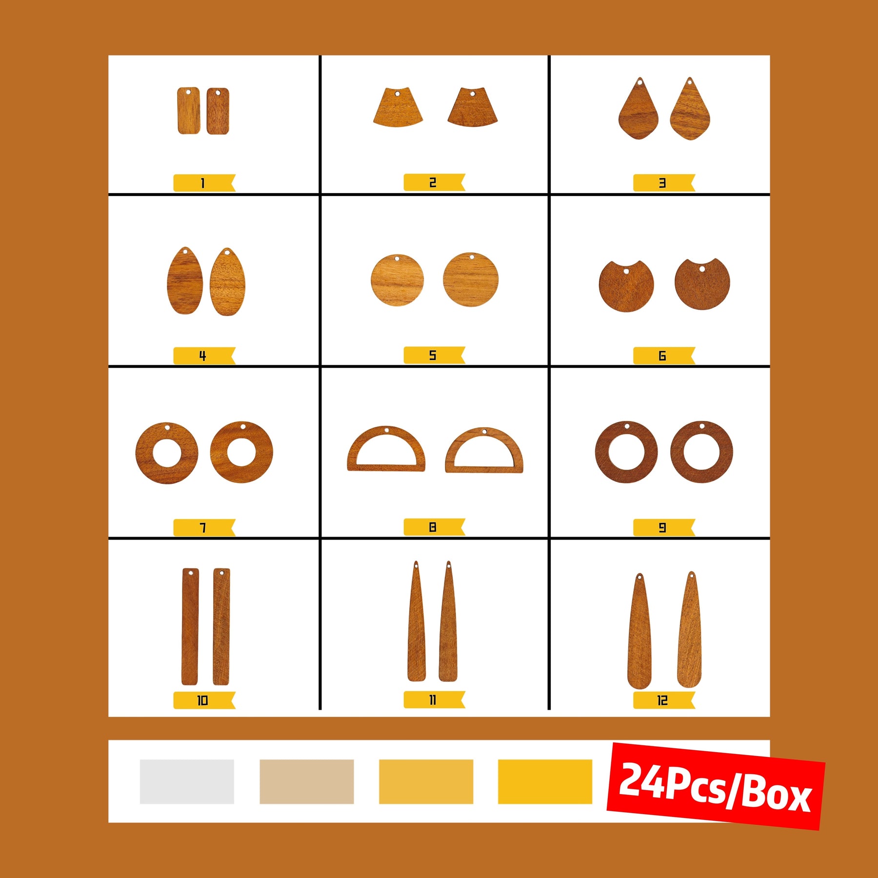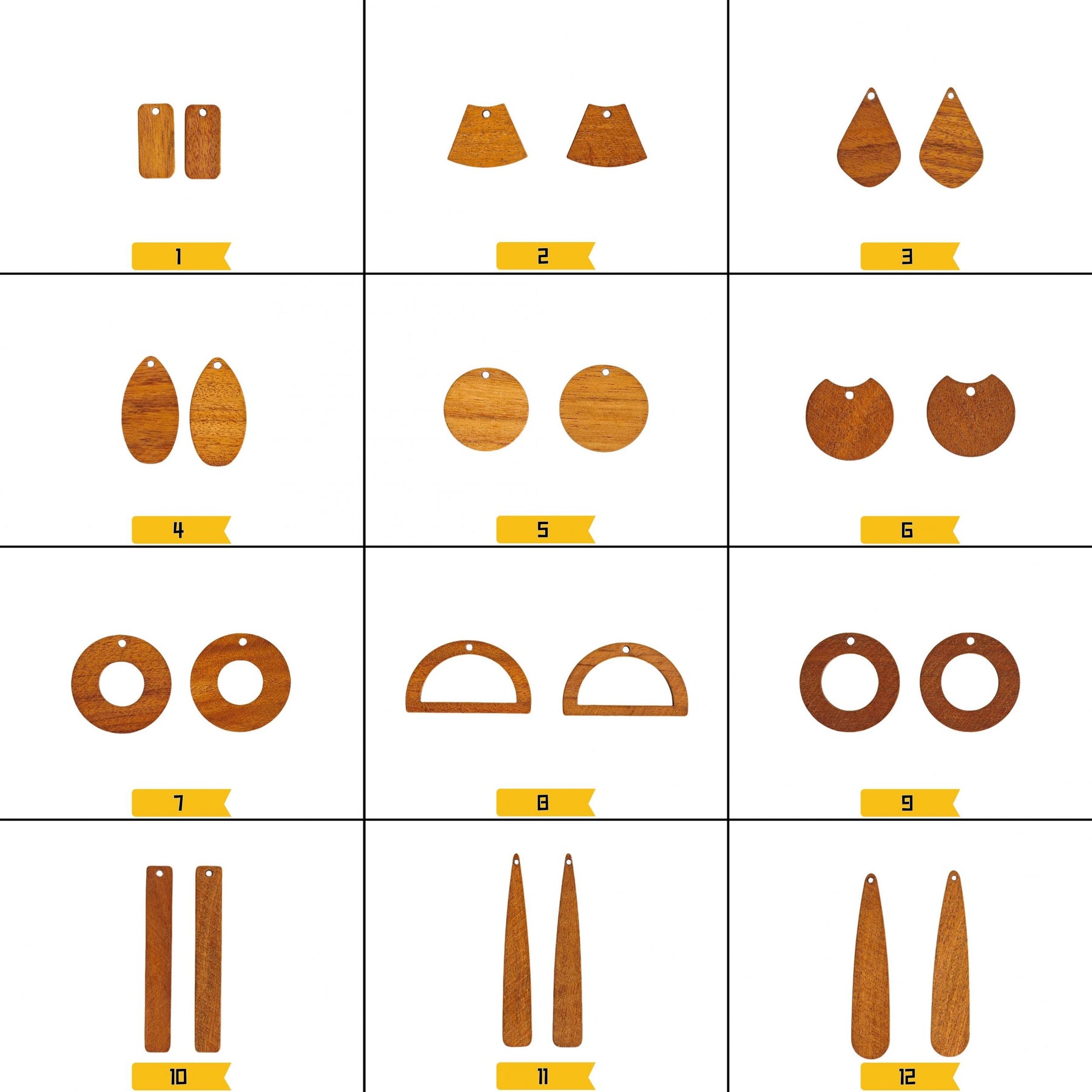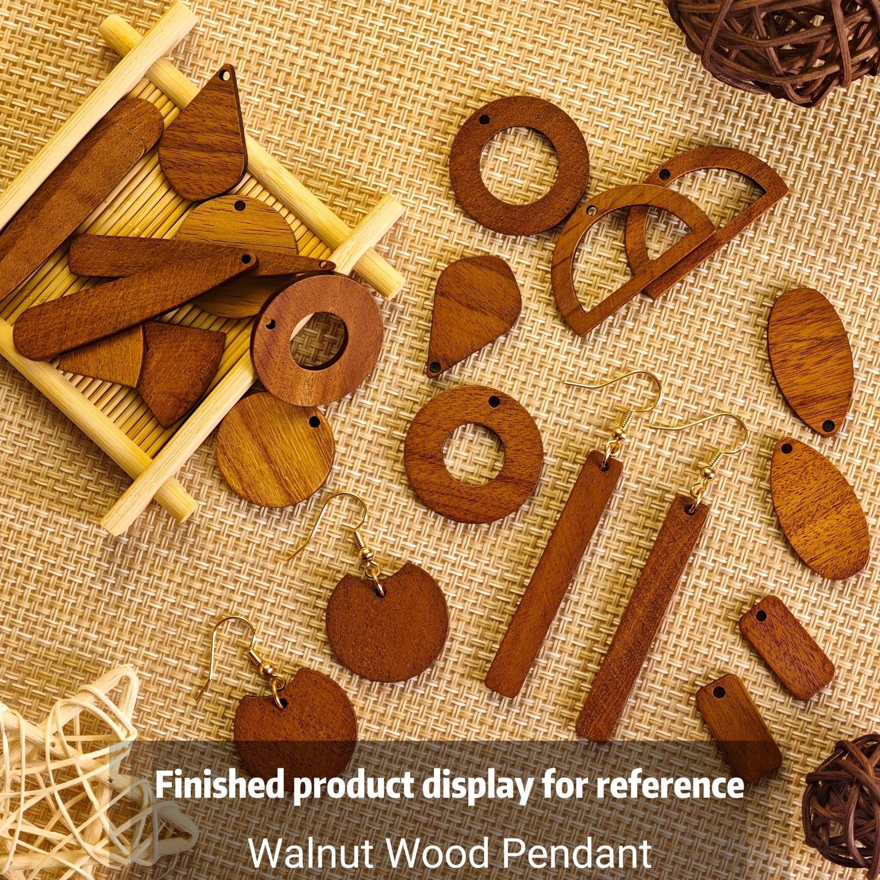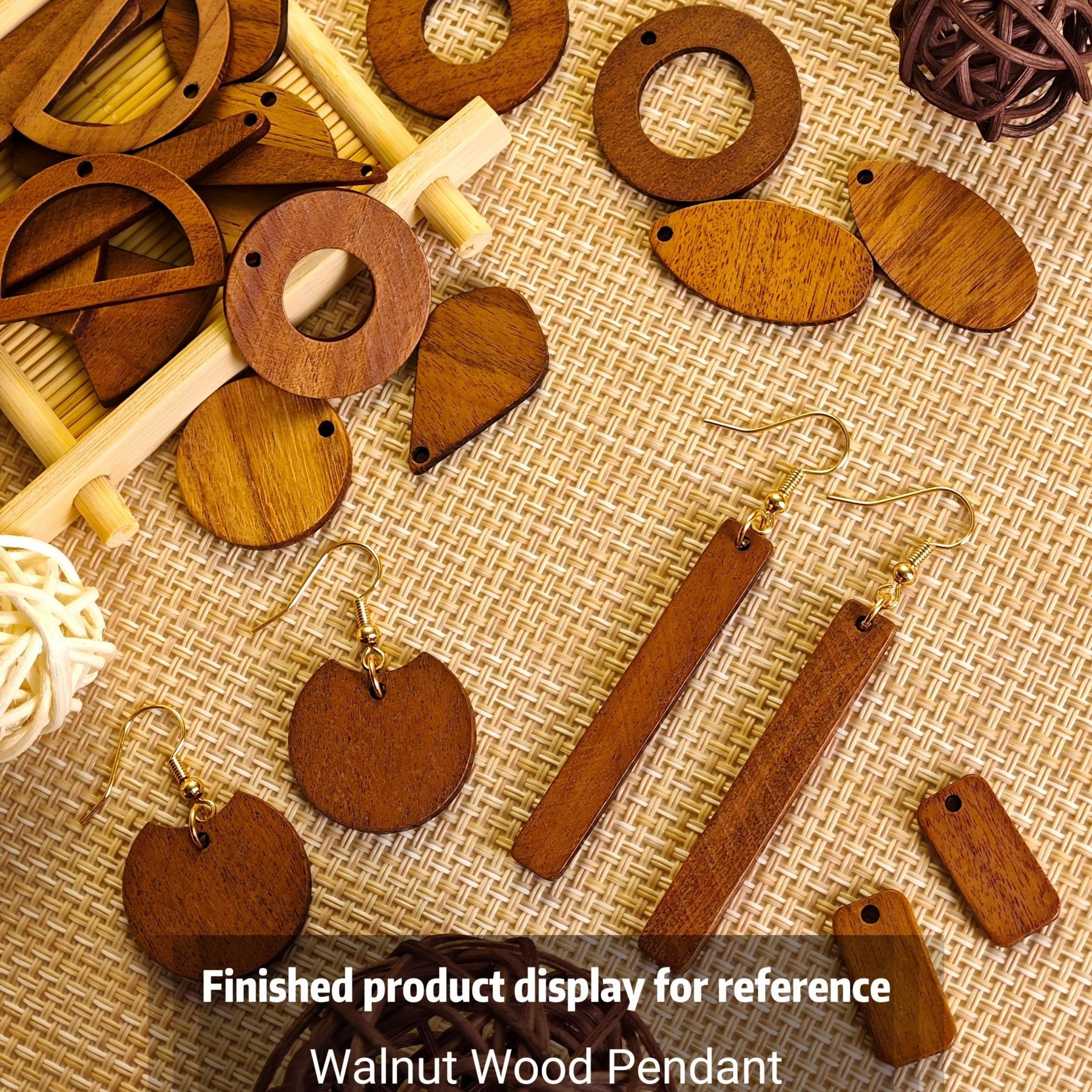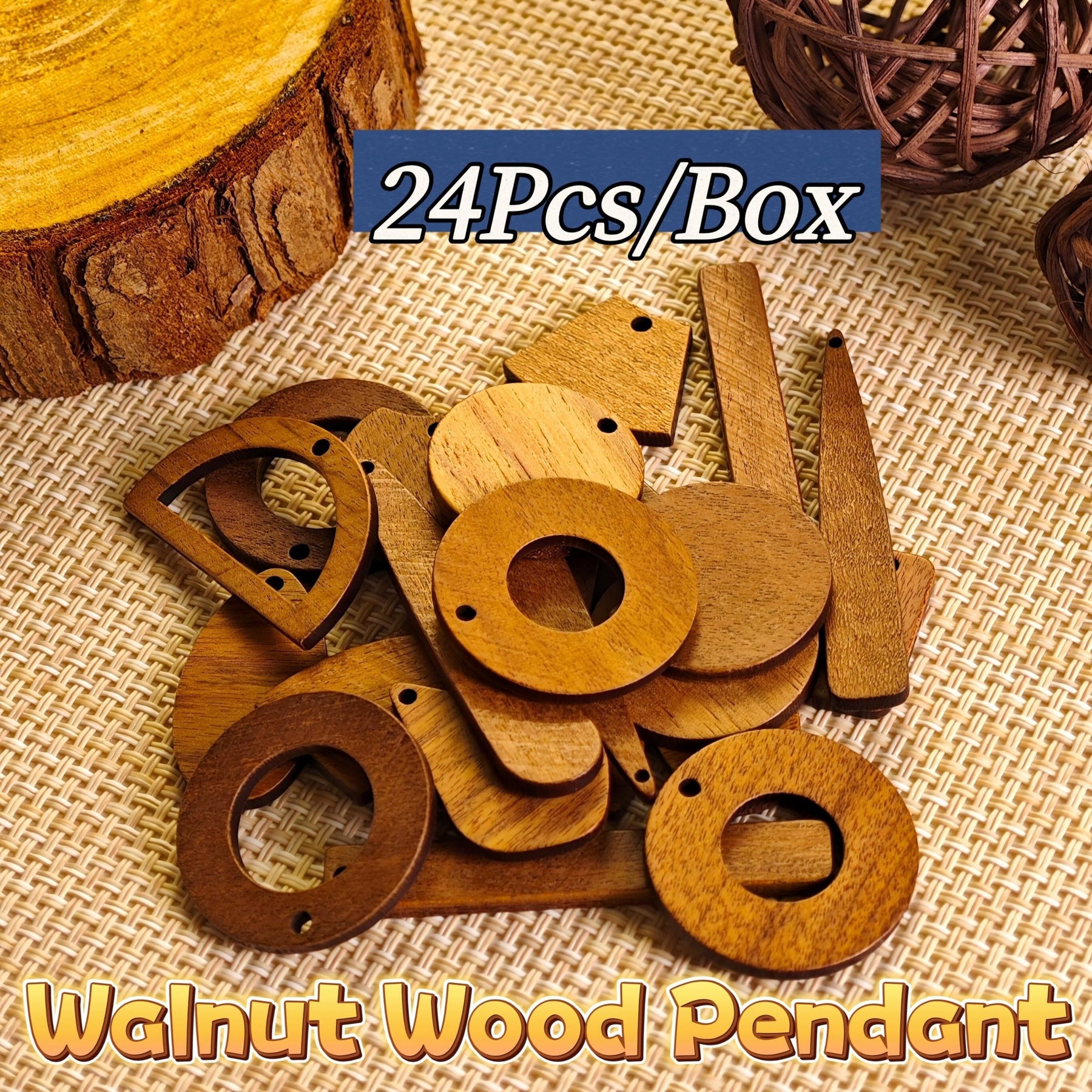 Get creative with this set of 24 geometric walnut wood pendants, perfect for making your own holiday jewelry. Use these fun materials to design unique earrings and accessories.