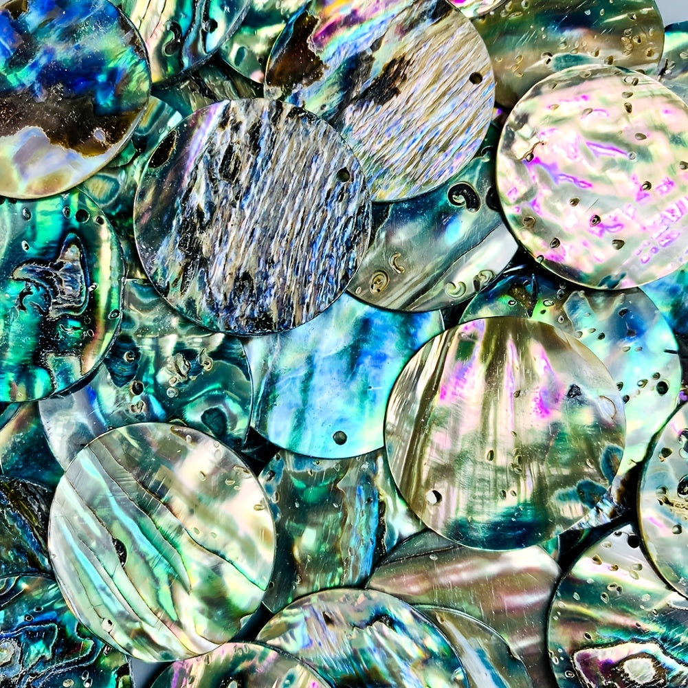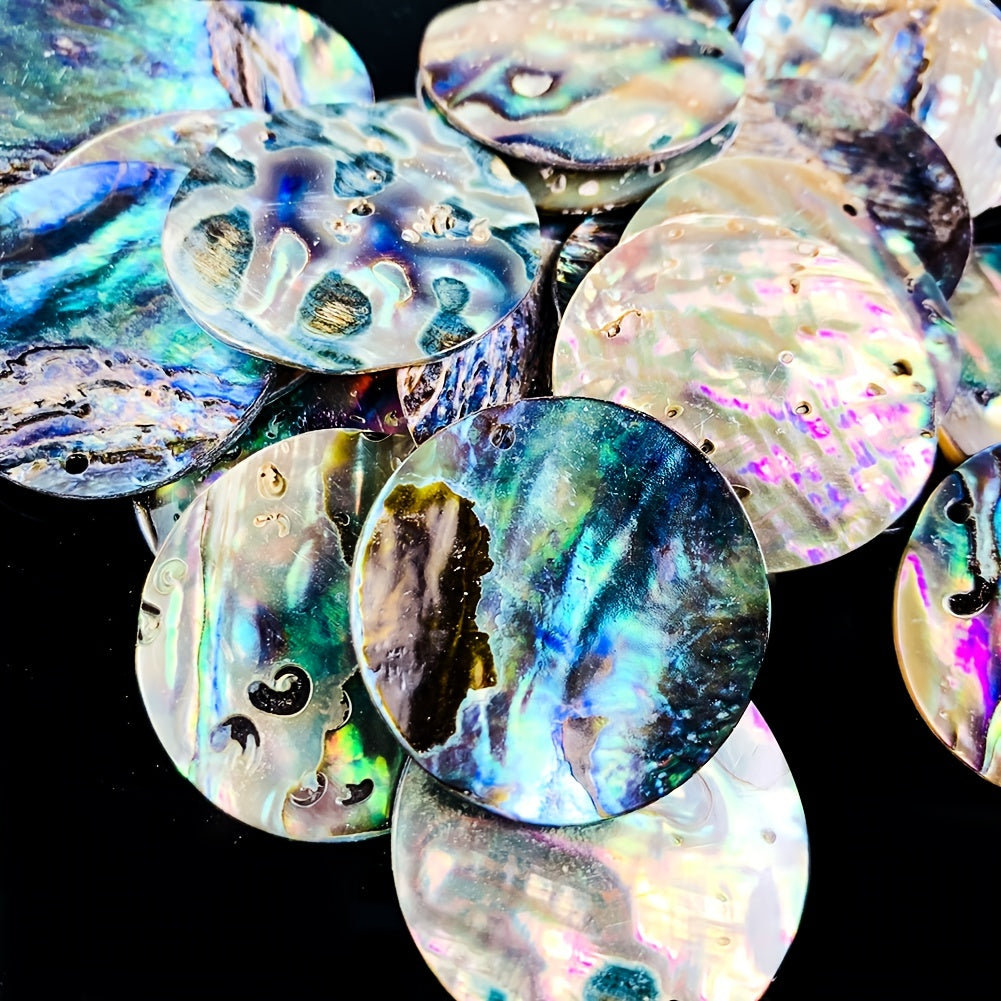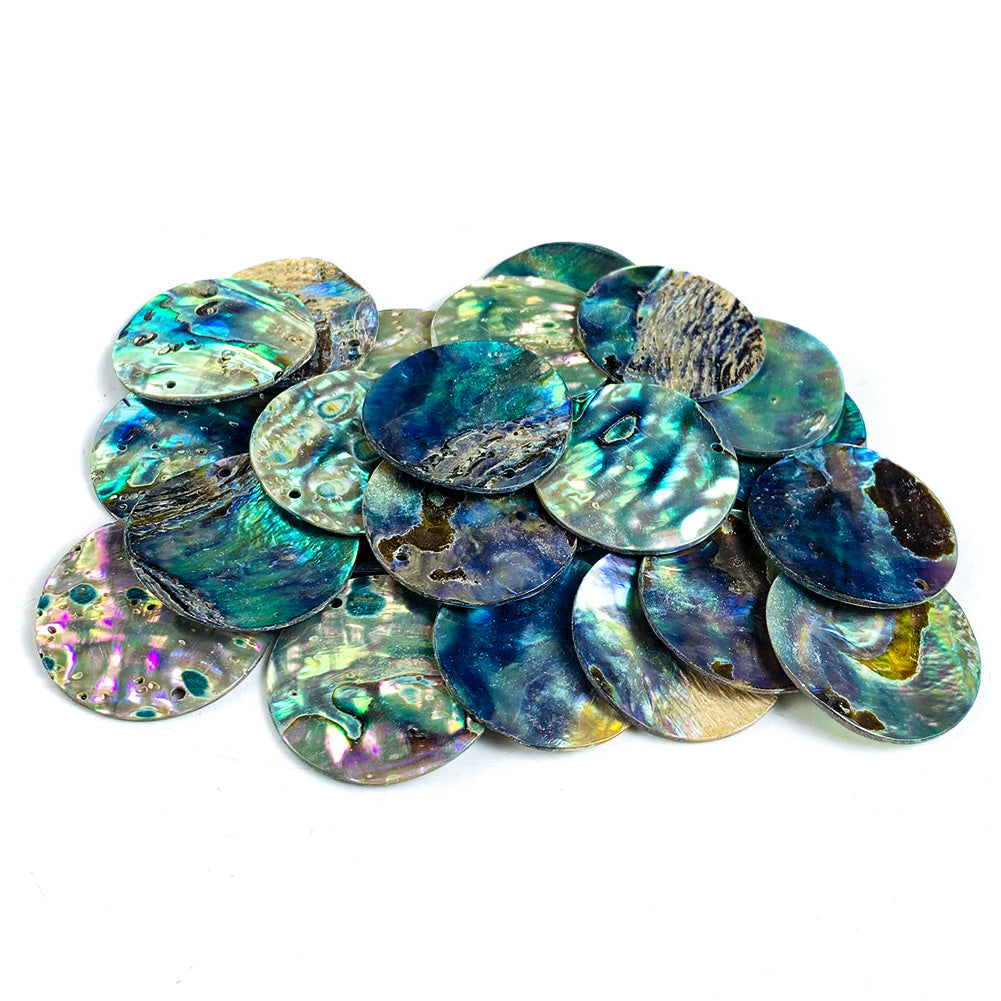 These beautiful abalone shell pendants are perfect for DIY jewelry making. The round shell flakes are hand polished to enhance their natural beauty.