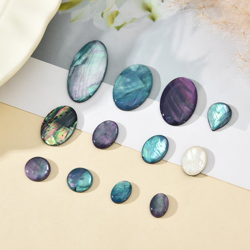 2pcs Hand Carved Fritillary Oval & Round Drops for DIY Jewelry