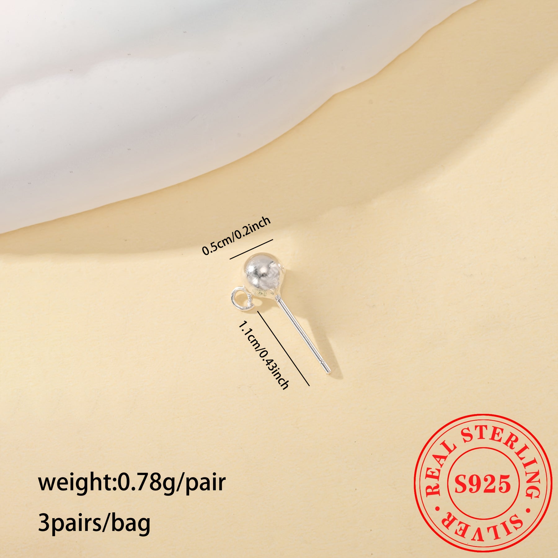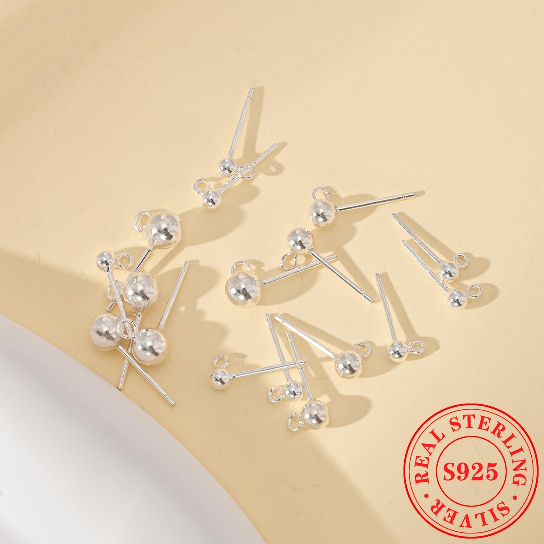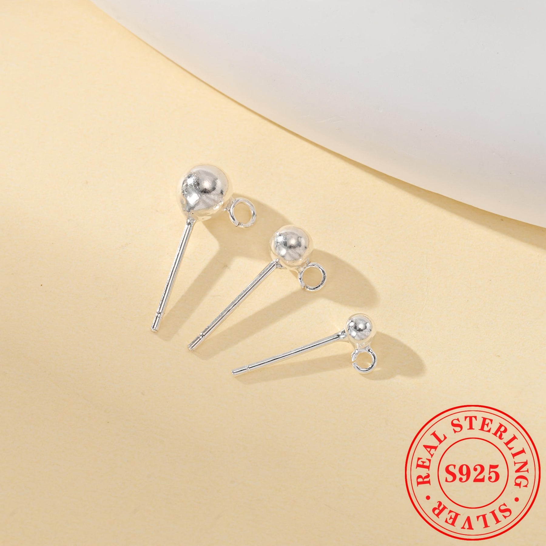This pack includes 3 pairs of plain round bead earrings made of S925 sterling silver. It comes with circle round beads for DIY ear hooks and dangle accessories.
