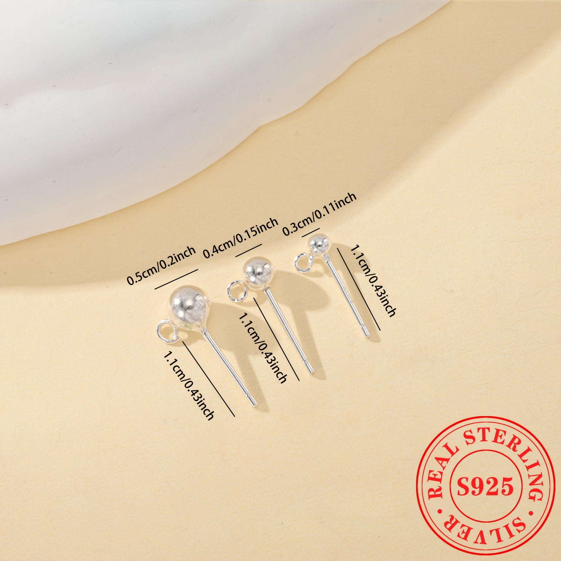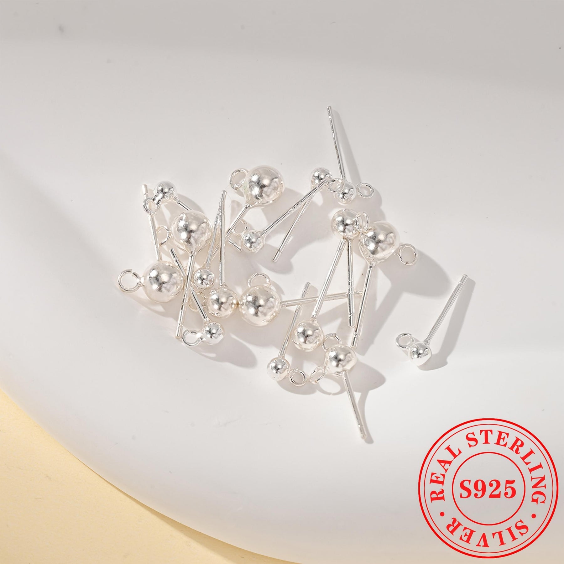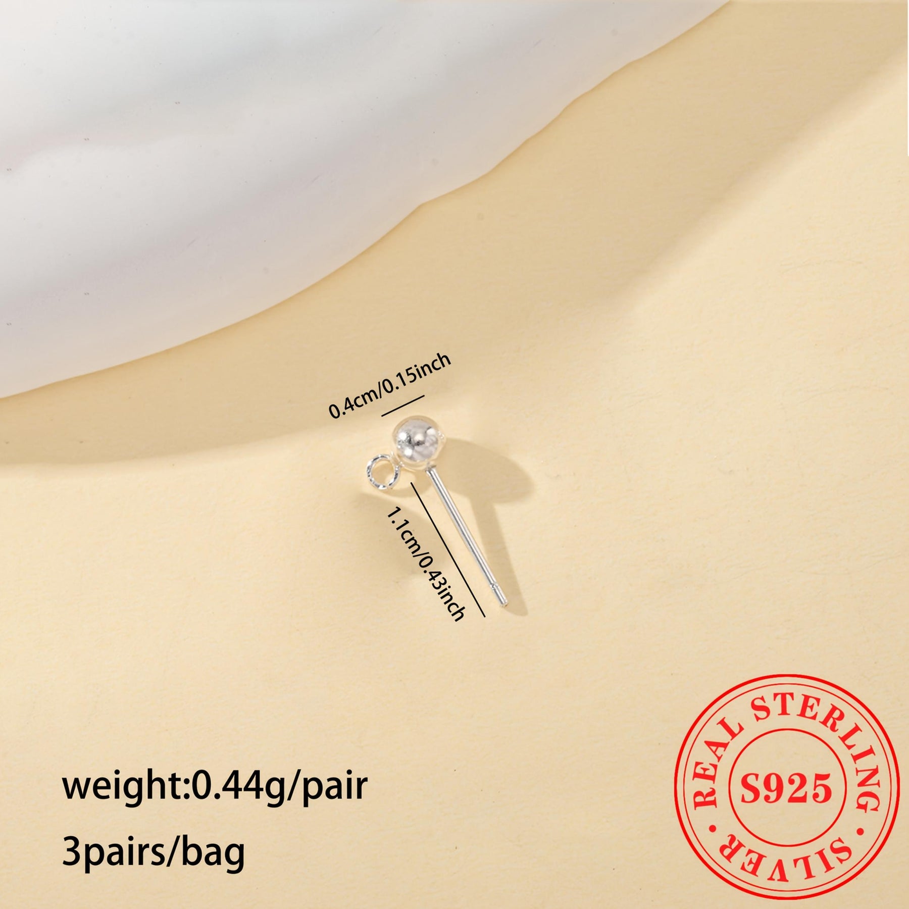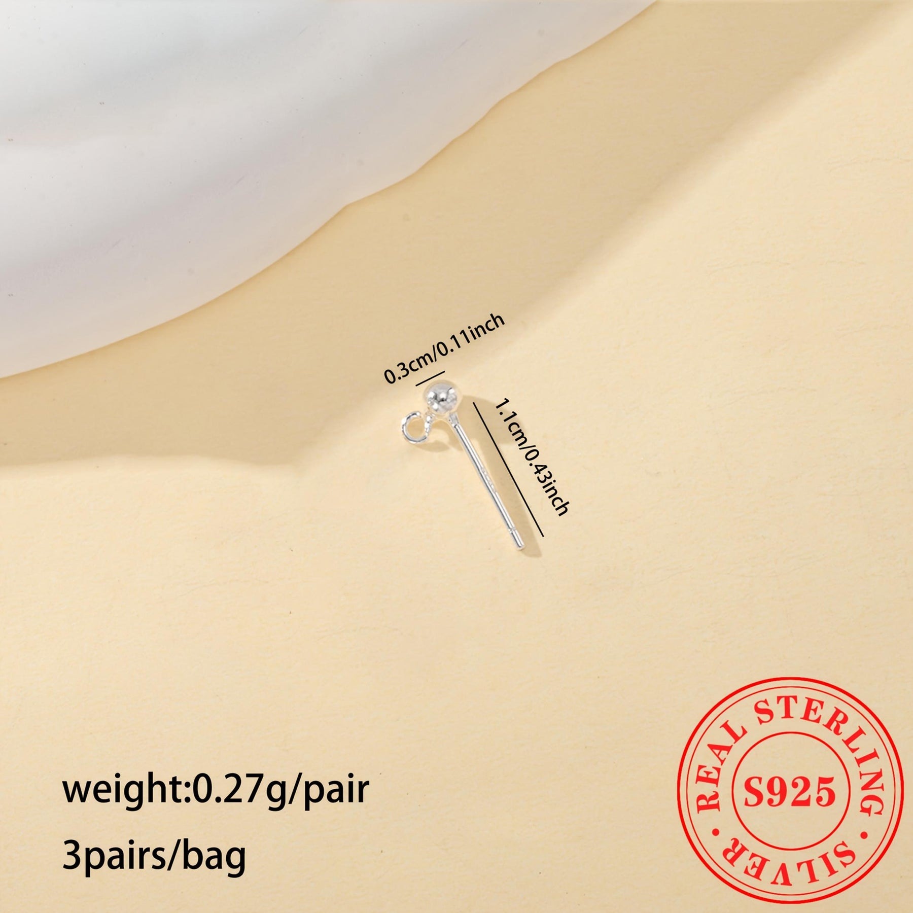 This pack includes 3 pairs of plain round bead earrings made of S925 sterling silver. It comes with circle round beads for DIY ear hooks and dangle accessories.