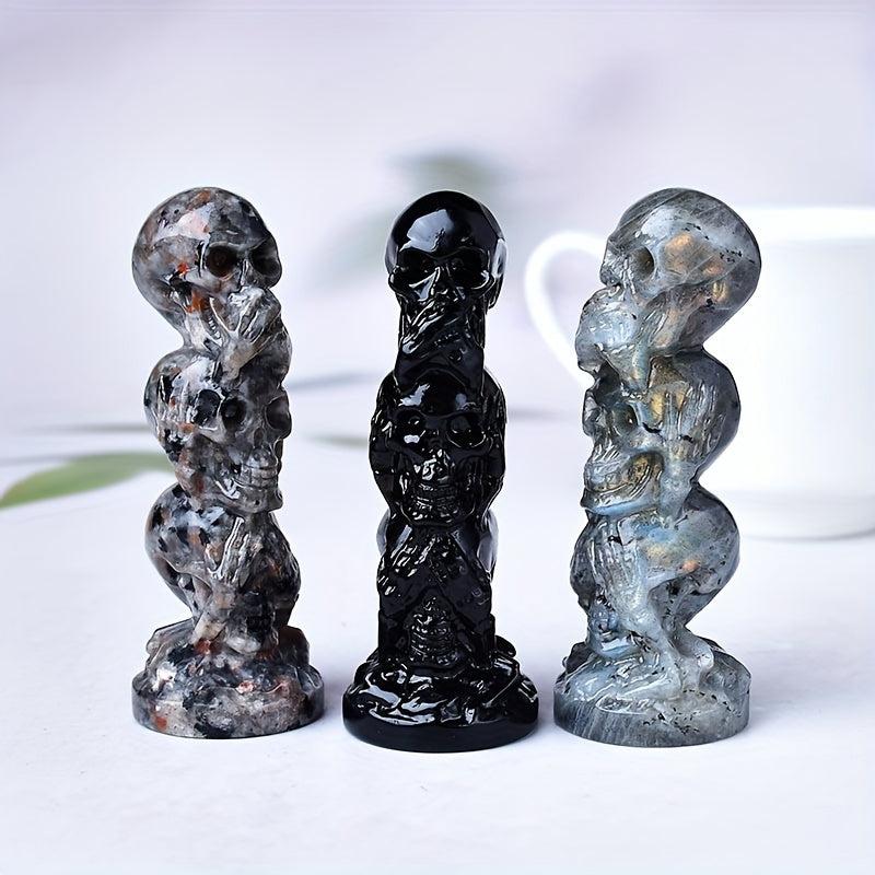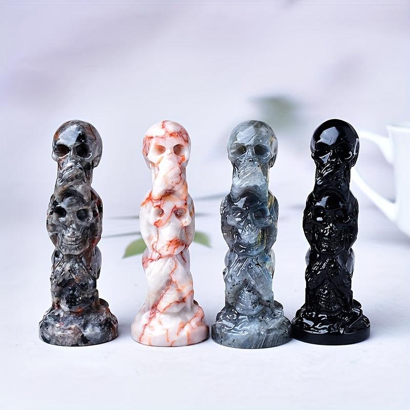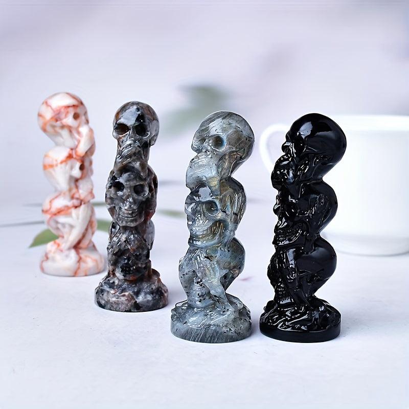 This crystal skull carving is a unique and captivating piece suitable for home decoration or as a thoughtful gift. Made of high-quality crystal, this loose stone will add a touch of elegance to any space.