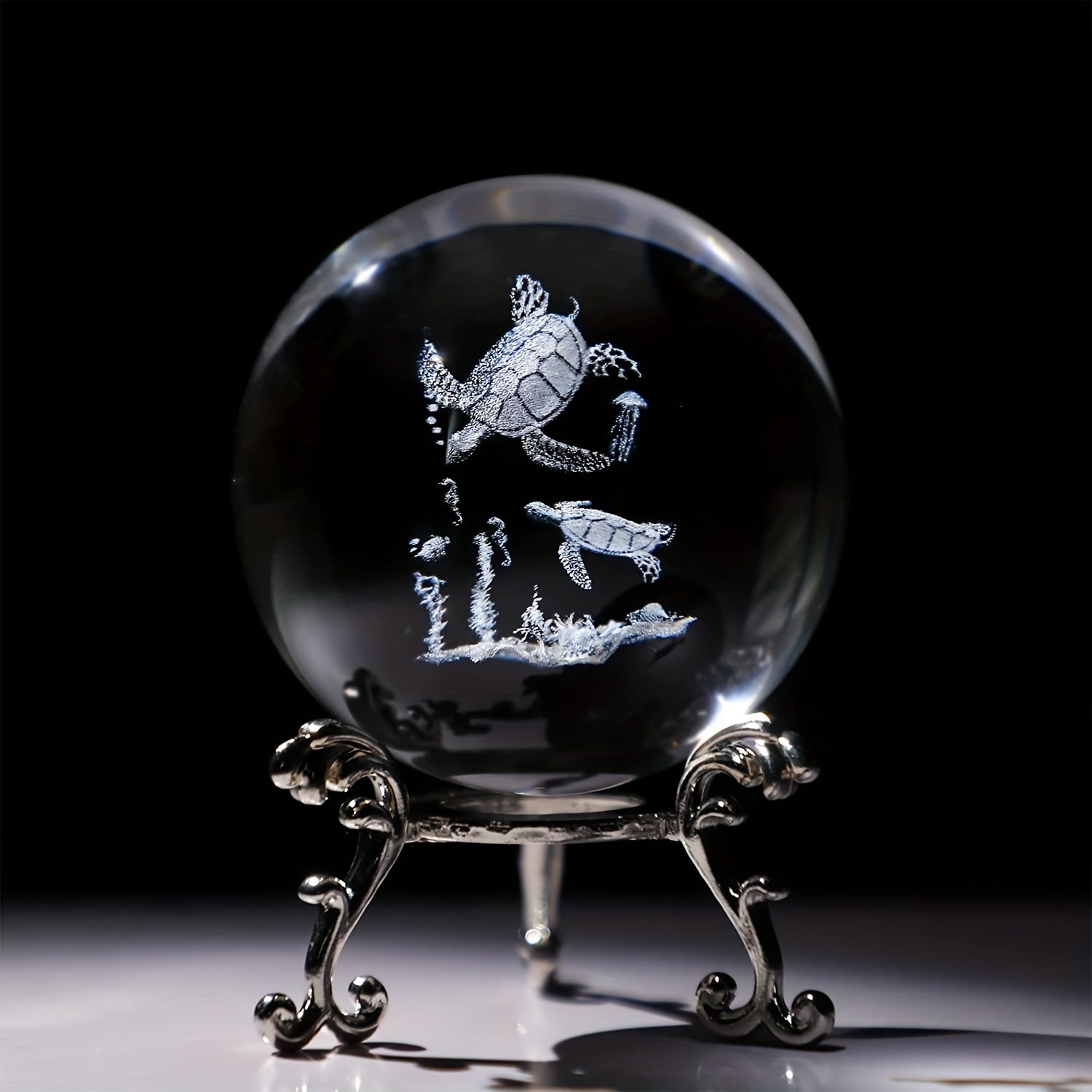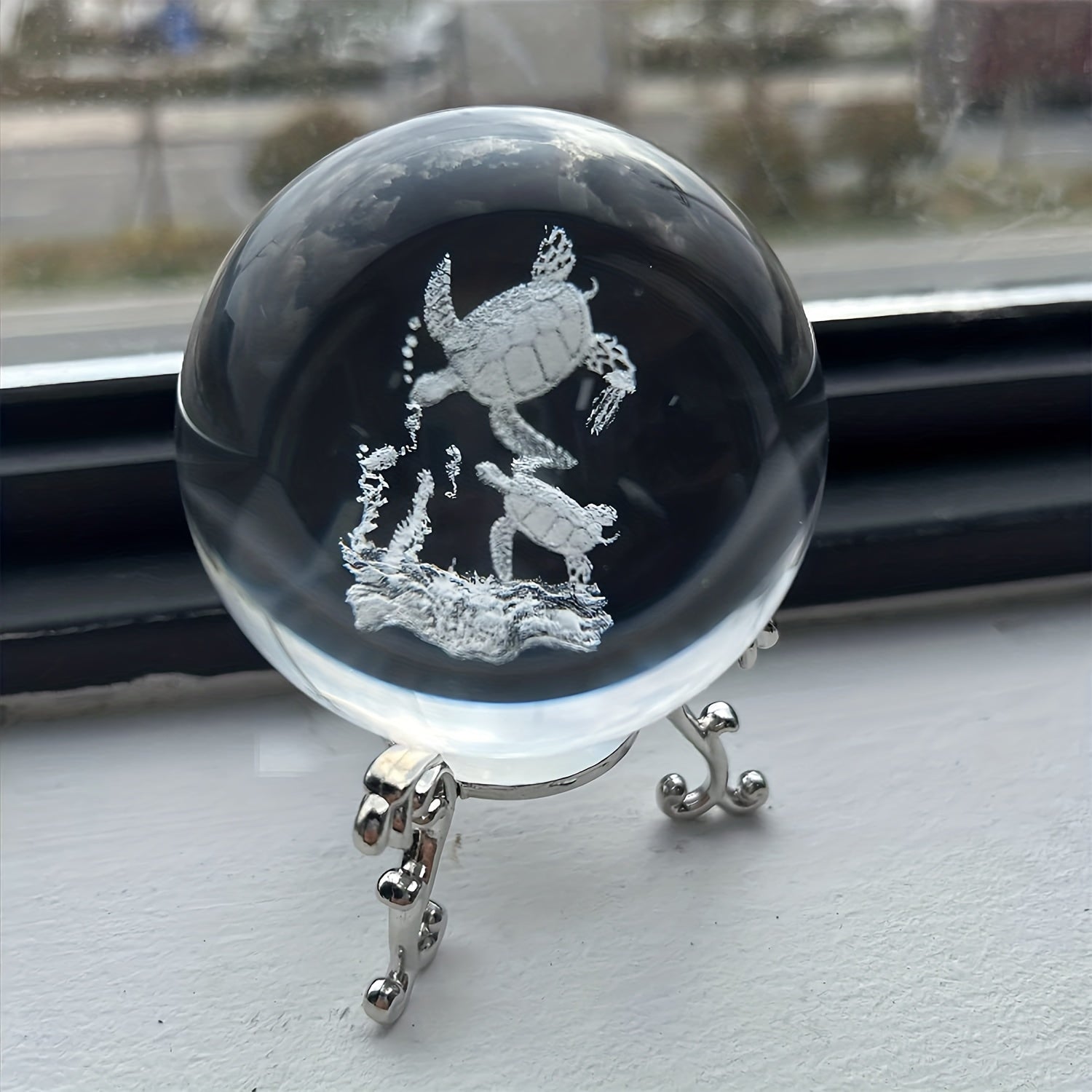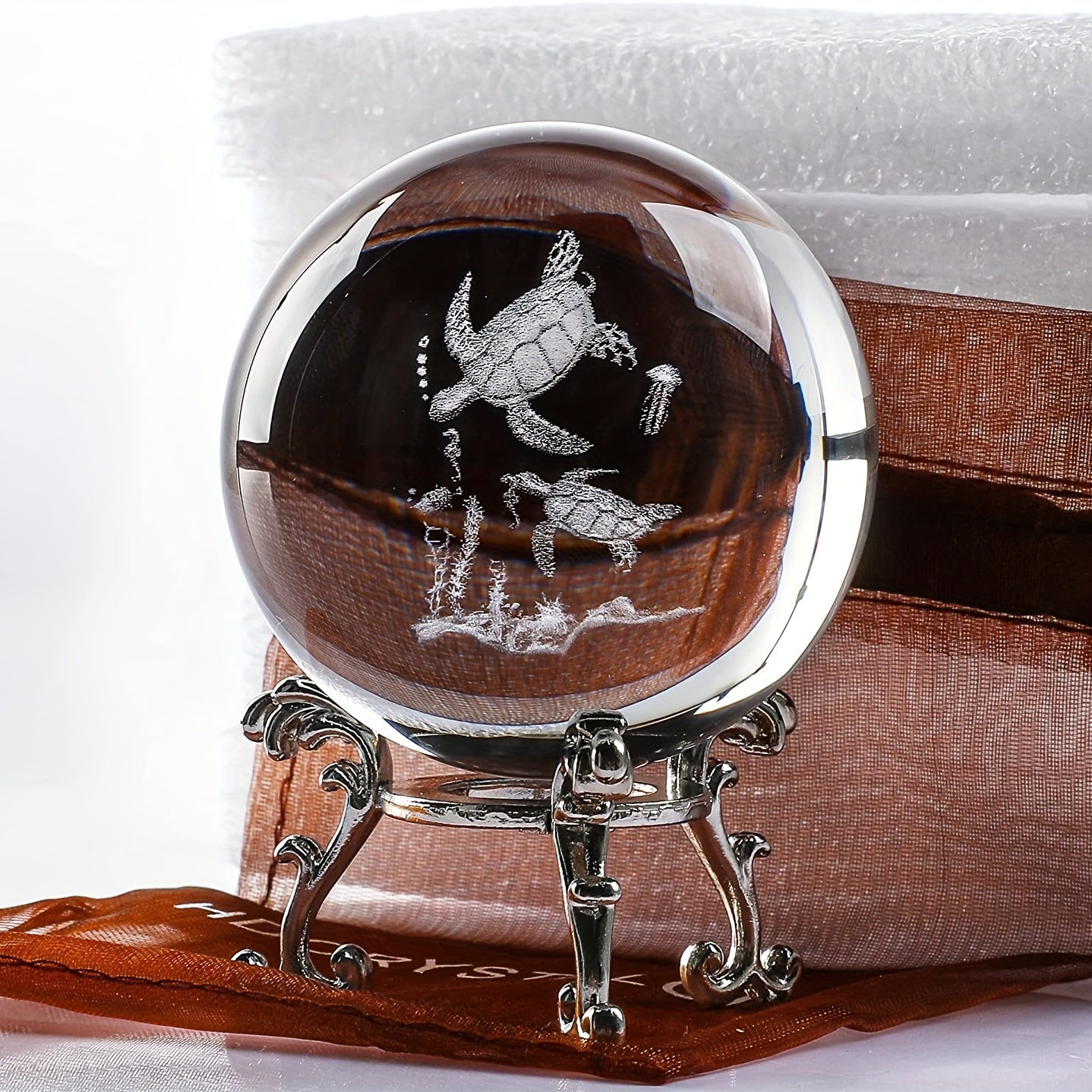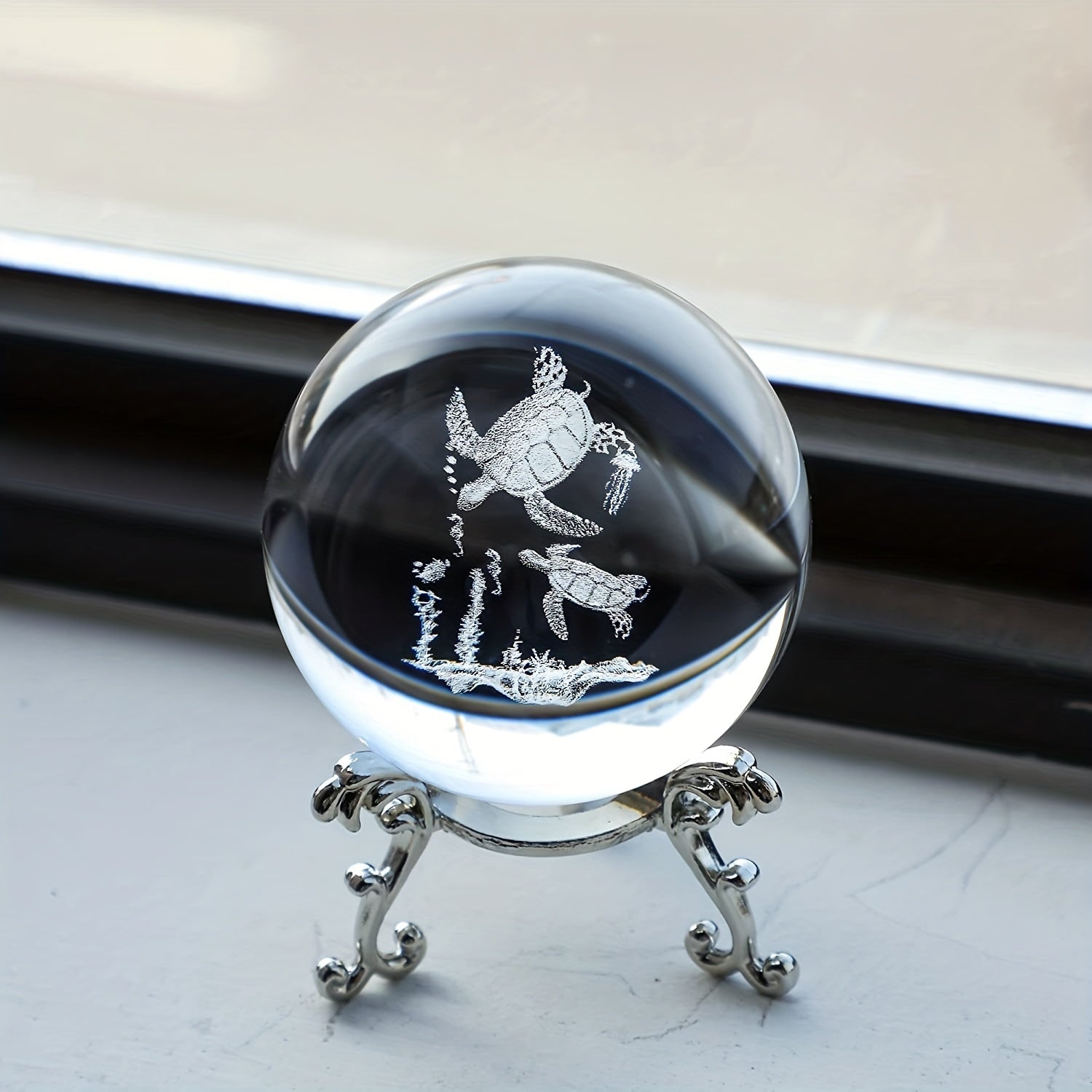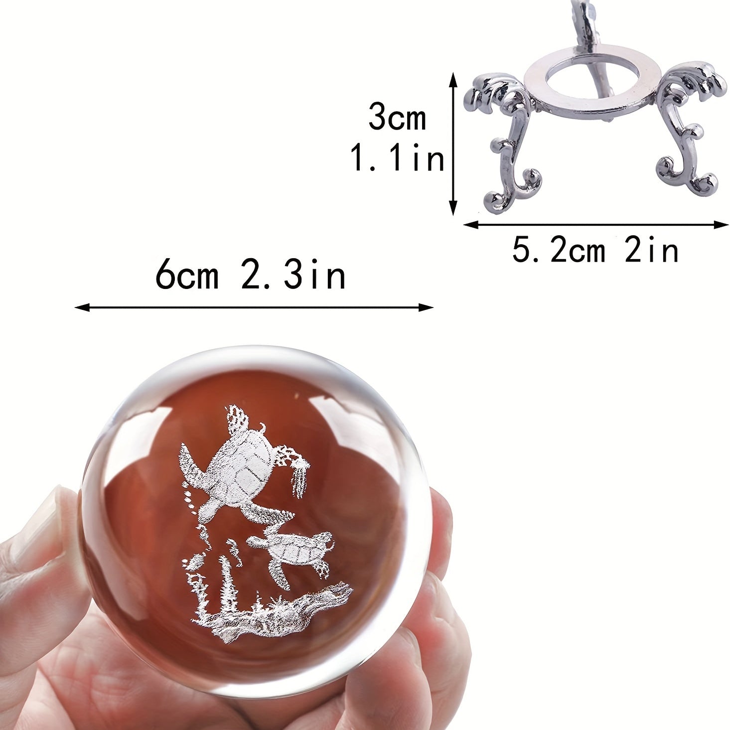 This stunning crystal ball features a 3D laser engraved turtle statue. It measures 2.4 inches in diameter (6.1 cm) and makes a beautiful addition to any home decor.