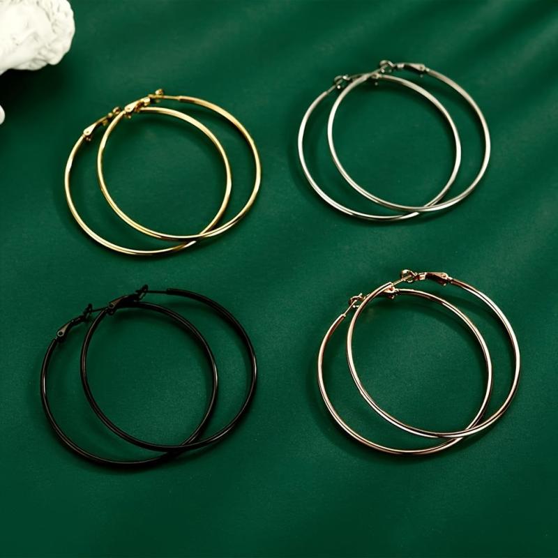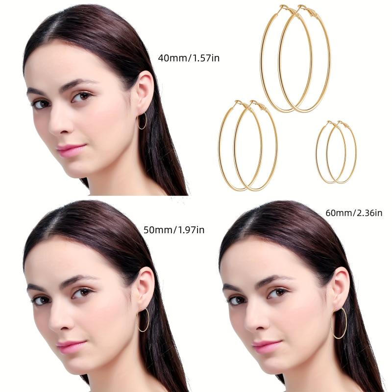 4 Pairs Big Hoop Earrings for Women Girls Stainless Steel Hypoallergenic