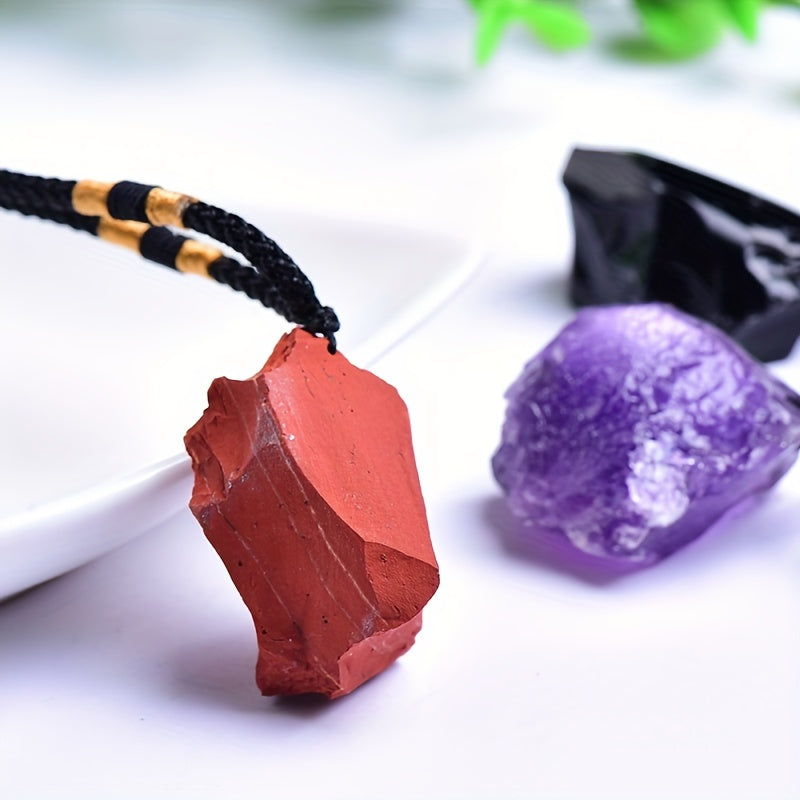 This 40mm natural rough stone pendant features an irregular shape with purple, pink, and yellow hues. Perfect for making pendant necklaces or other DIY jewelry accessories.