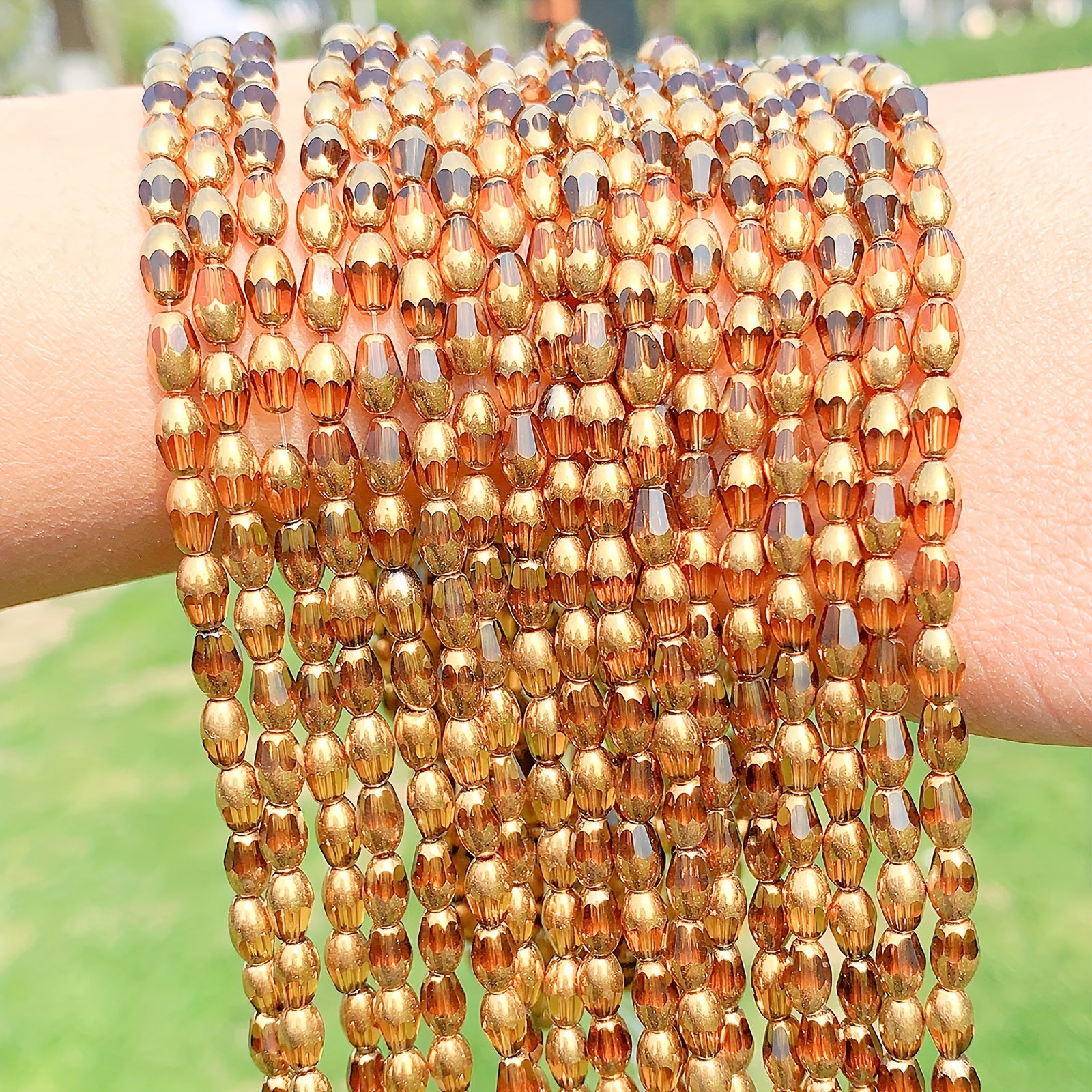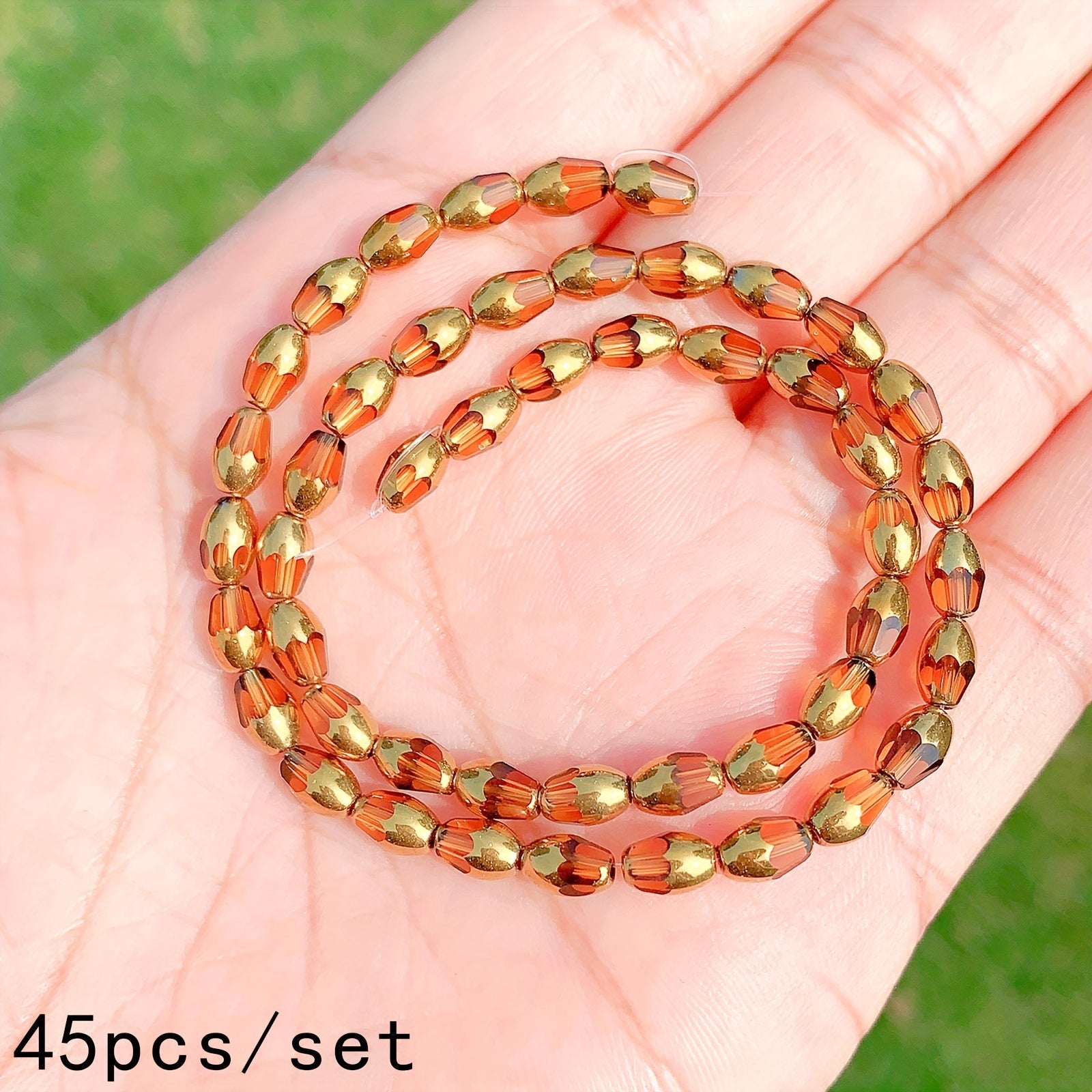 Enhance your jewelry-making projects with this set of 45 golden faceted crystal water drop glass beads. Perfect for creating stunning bracelets and other accessories.