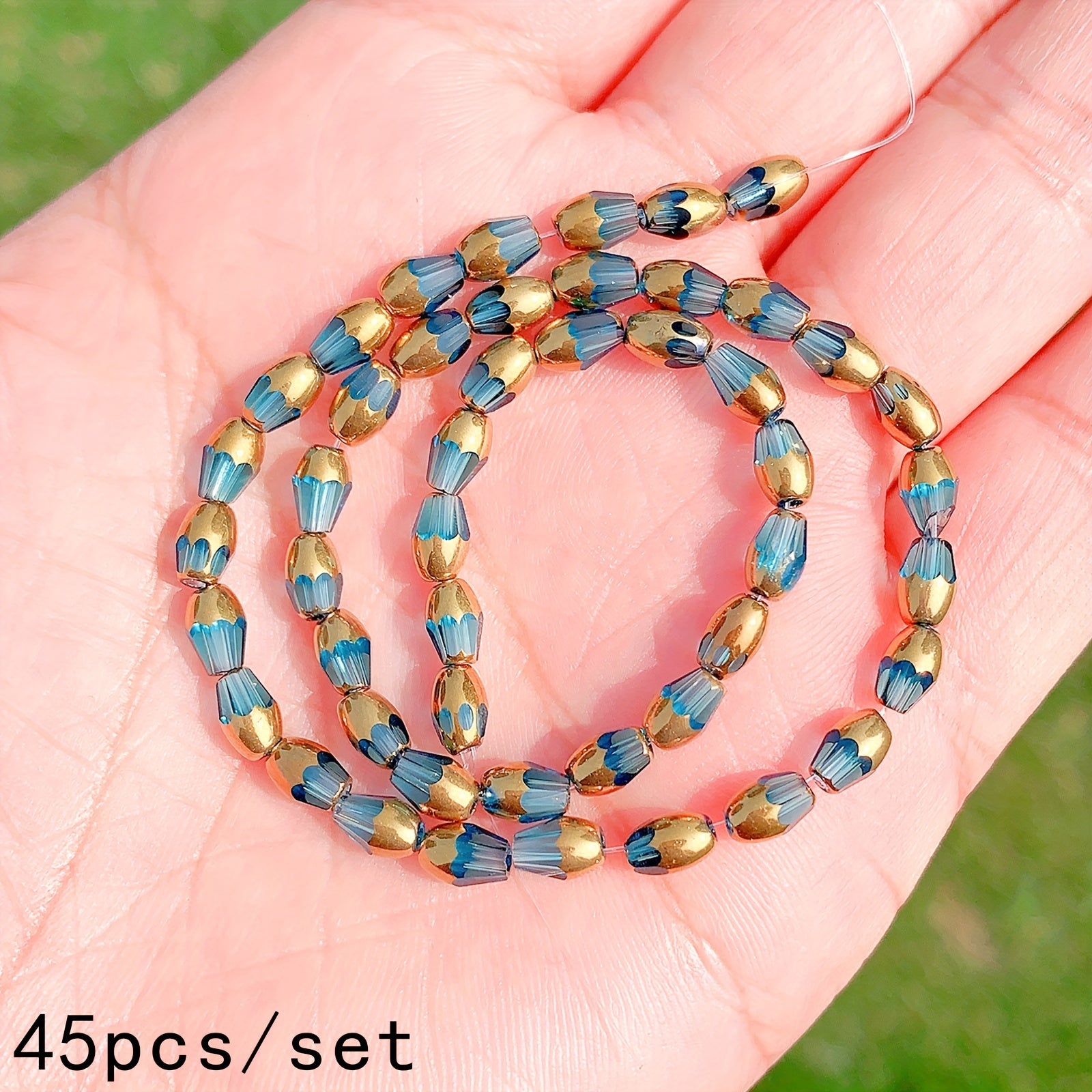 Add a touch of elegance to your jewelry with this set of 45pcs Lake Crystal Beads. These golden water drop glass beads are perfect for creating beautiful bracelets and other accessories.