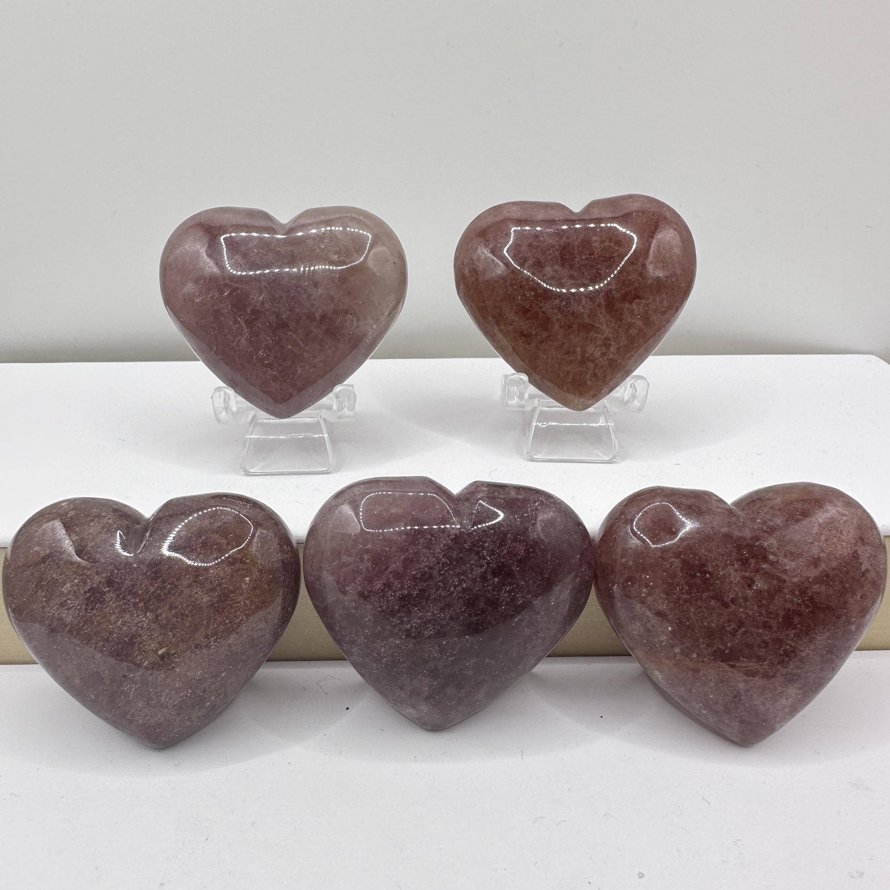 Enhance your energy with these natural strawberry heart palm stones that are perfect for healing purposes.