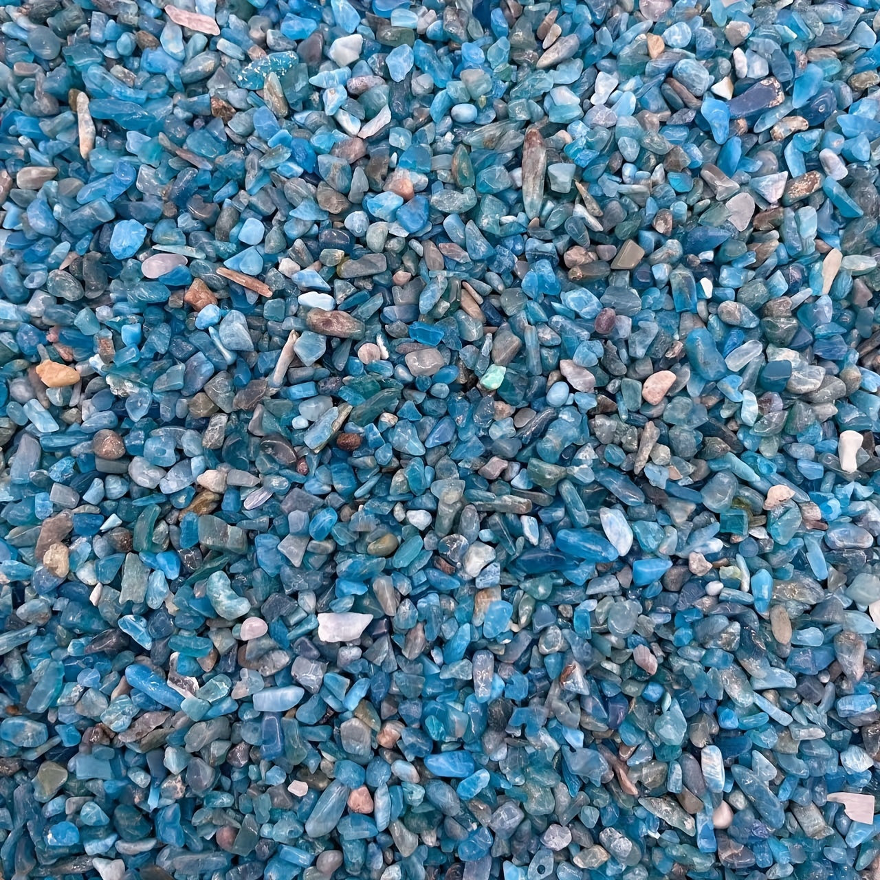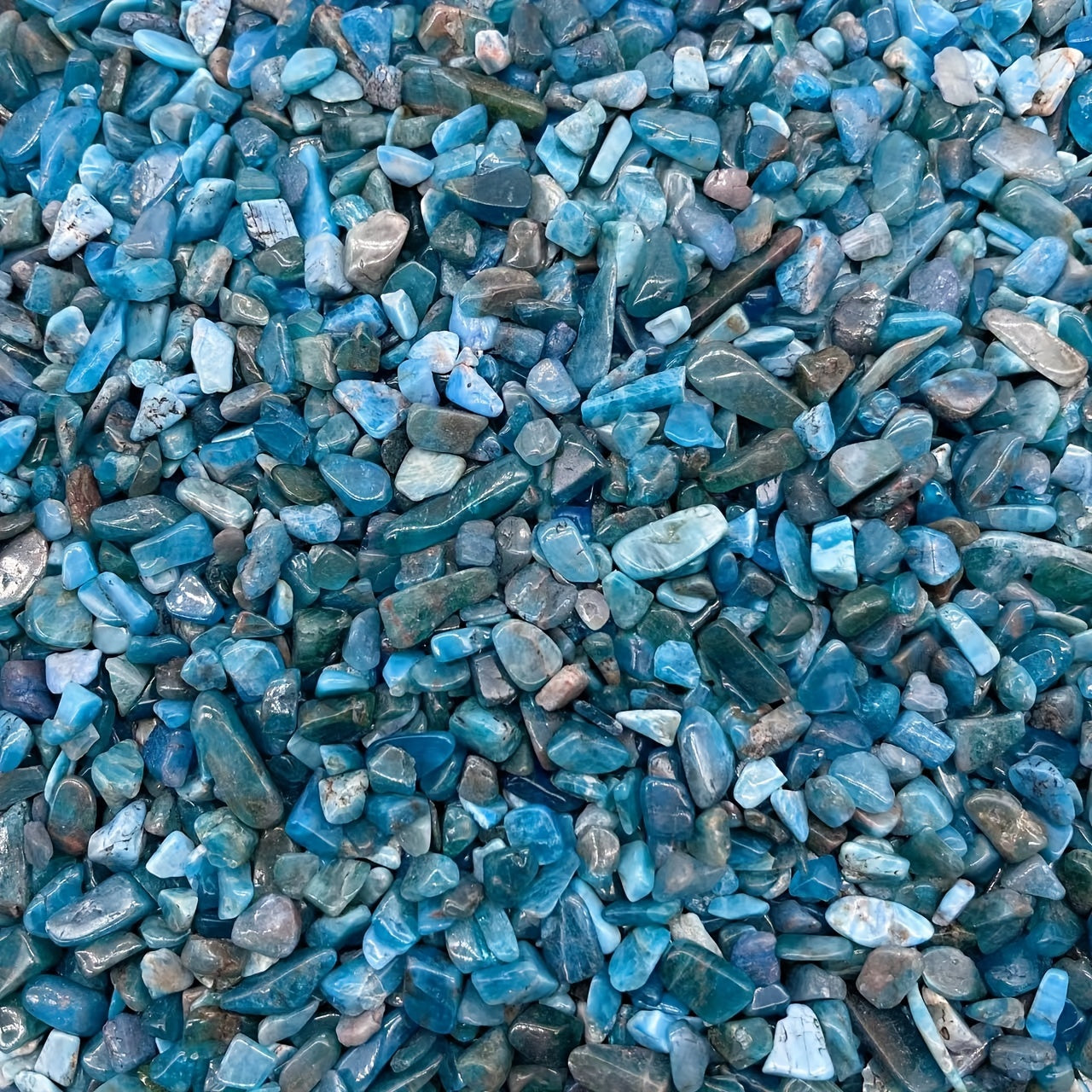 This 50g bag of apatite crushed stones contains healing quartz crystals in irregular shape. Ideal for chakra healing and energy work.