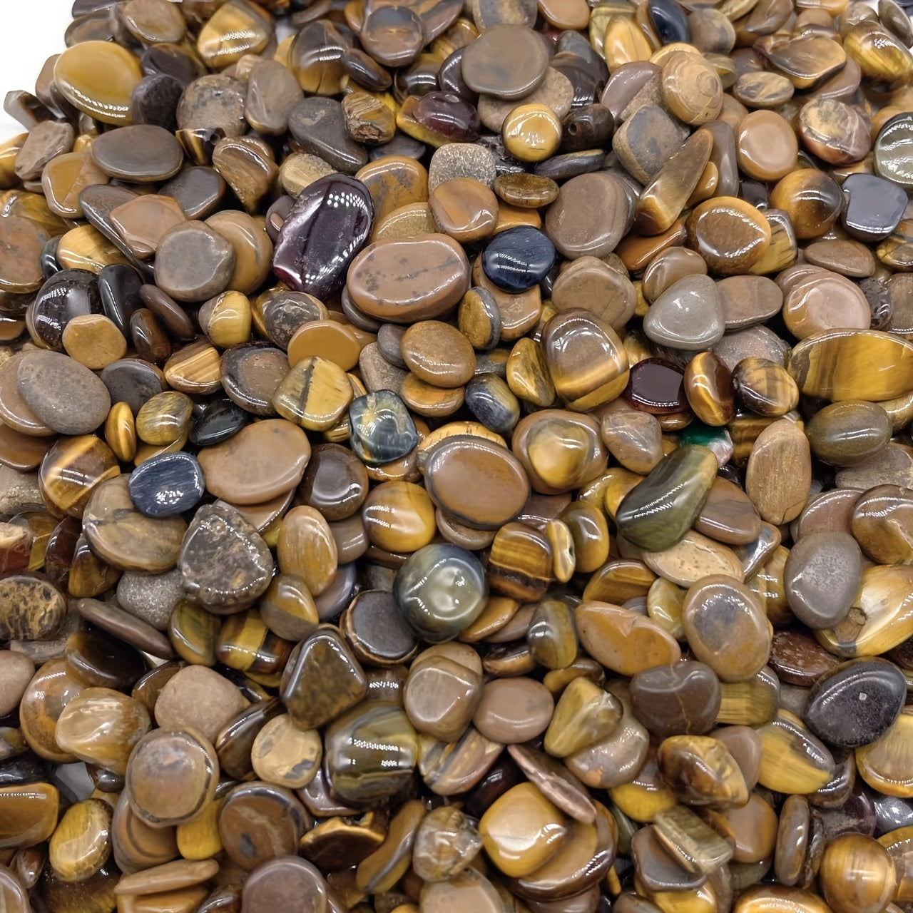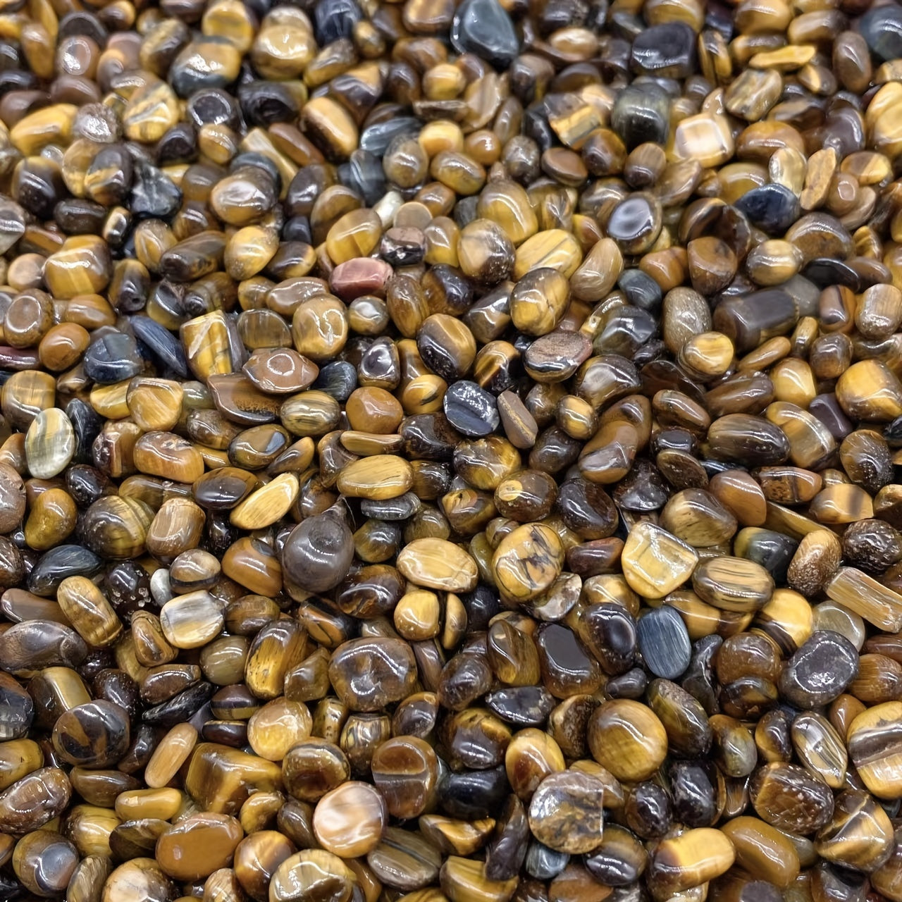 Enhance your energy with this 50g pack of natural tiger eye stone crushed chips. These irregular shaped gemstones provide healing properties and are perfect for chakra balancing.