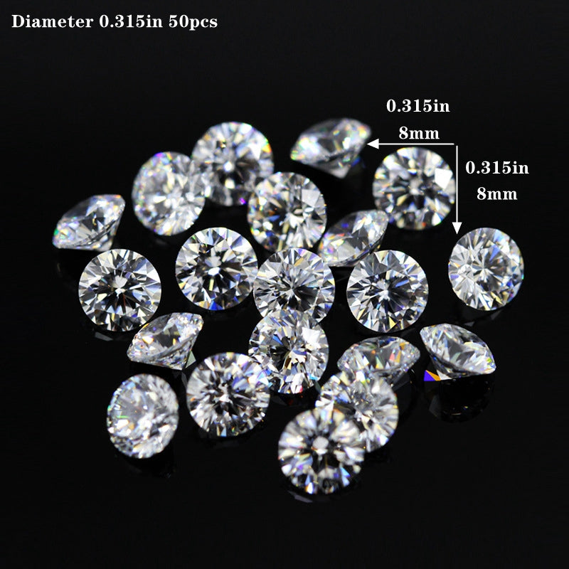 Enhance your jewelry creations with this set of 50 Zirconia Synthetic Cubic Zirconia pieces ranging from 0.158 to 0.315 inches (4mm-8mm). Perfect for DIY projects.