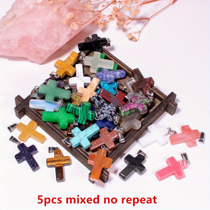 Enhance your jewelry-making skills with these 5 cross stone pendants. Perfect for creating unique pieces for yourself or as gifts.