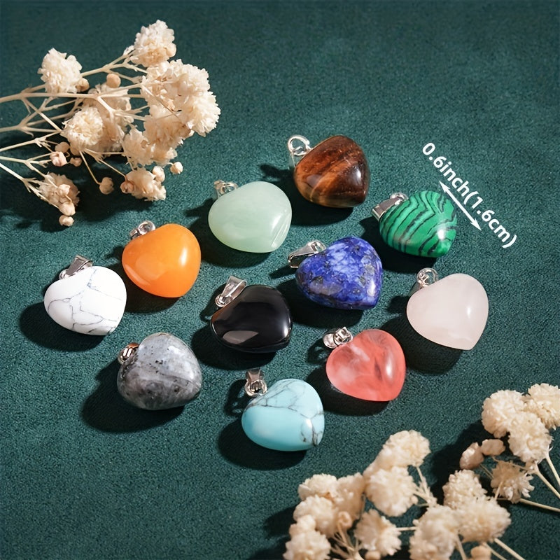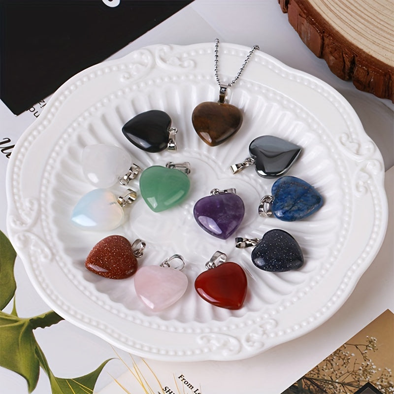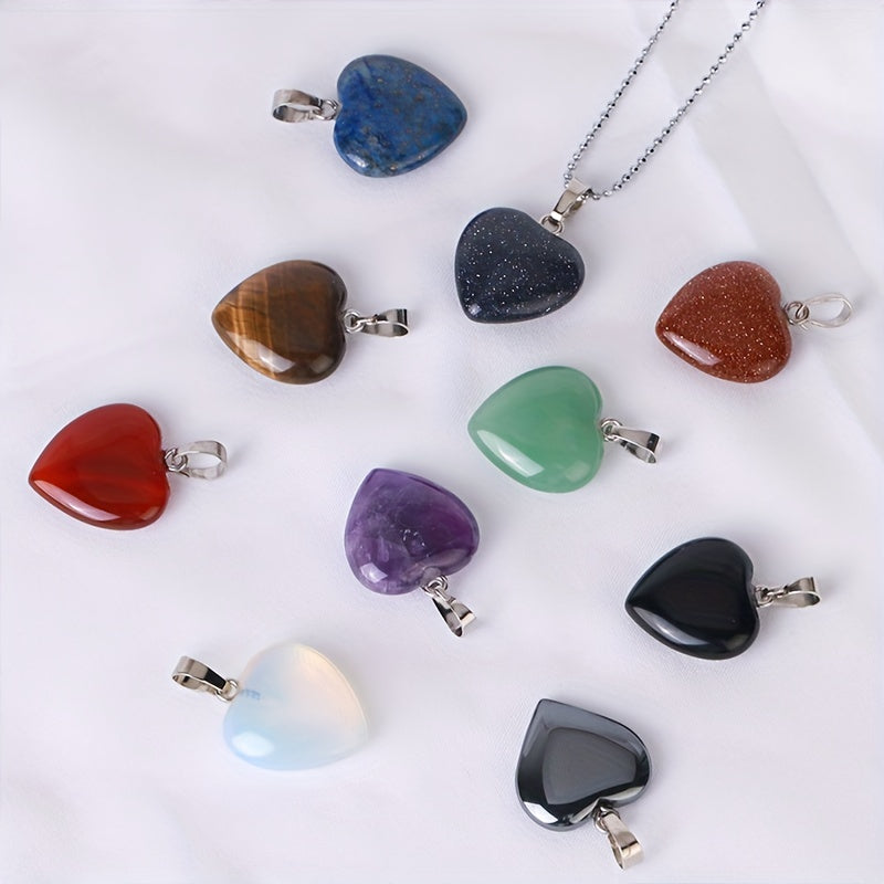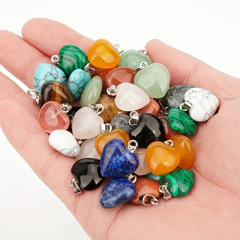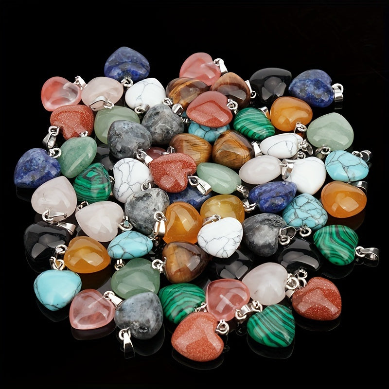 Add some charm to your DIY jewelry with this bulk pack of 5 heart-shaped stone pendants. Each pendant is a random mix of healing chakra crystal gemstones, perfect for creating unique necklaces.