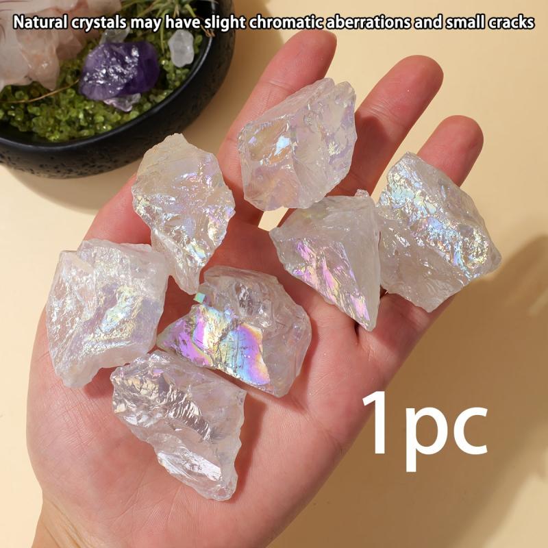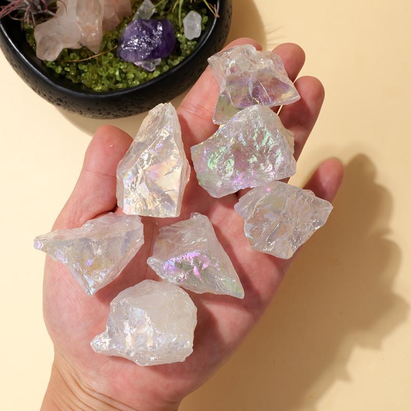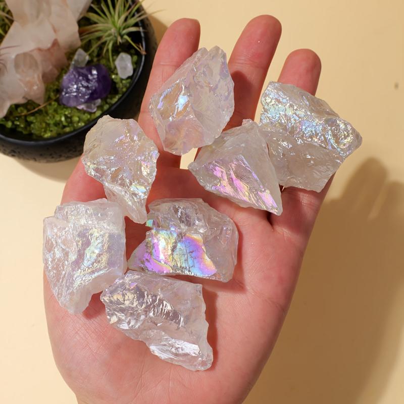 5pcs Natural Raw Crystal Stone High Clear Quartz with Rainbow Iridescence