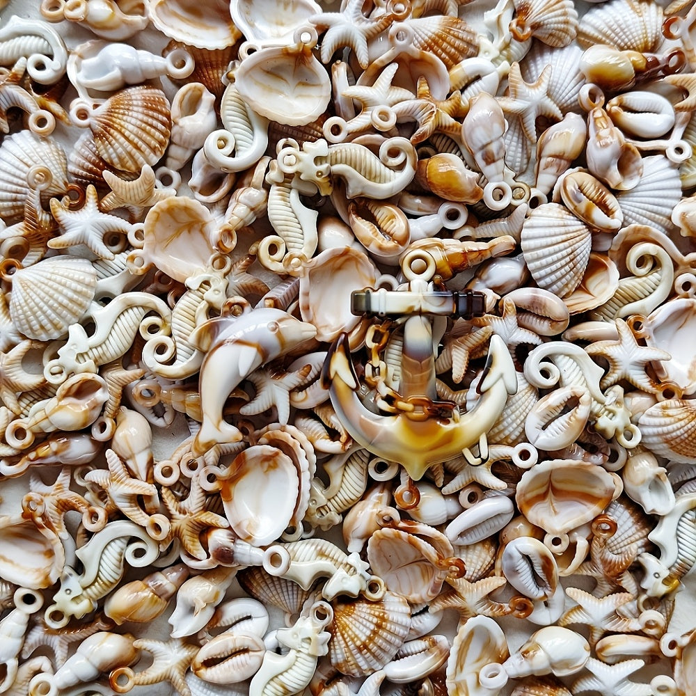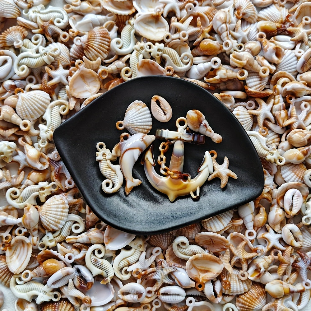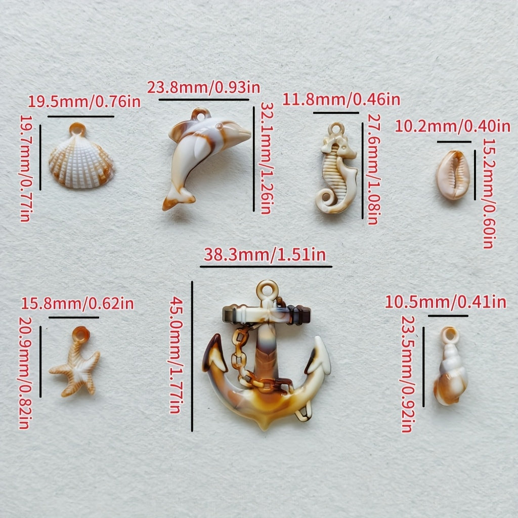 This set includes boat anchor, dolphin, seahorse, conch shell designs made of acrylic for your jewelry making projects.