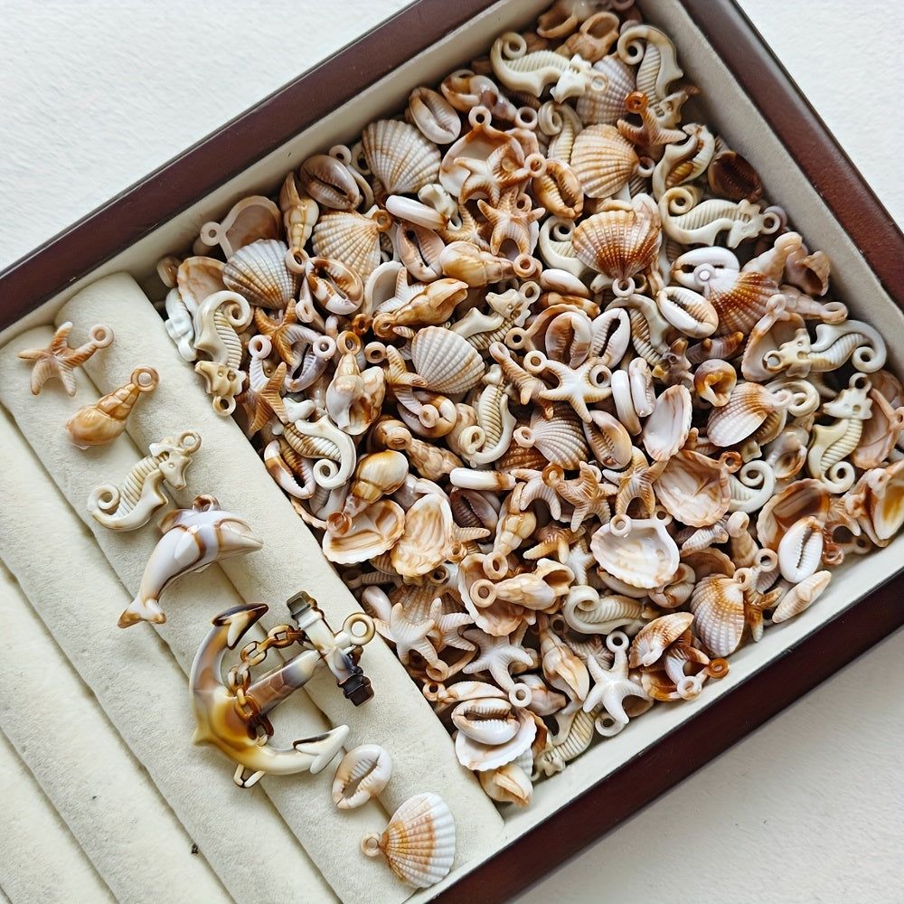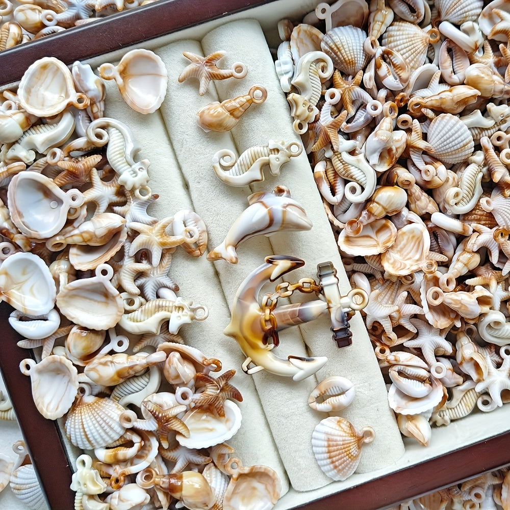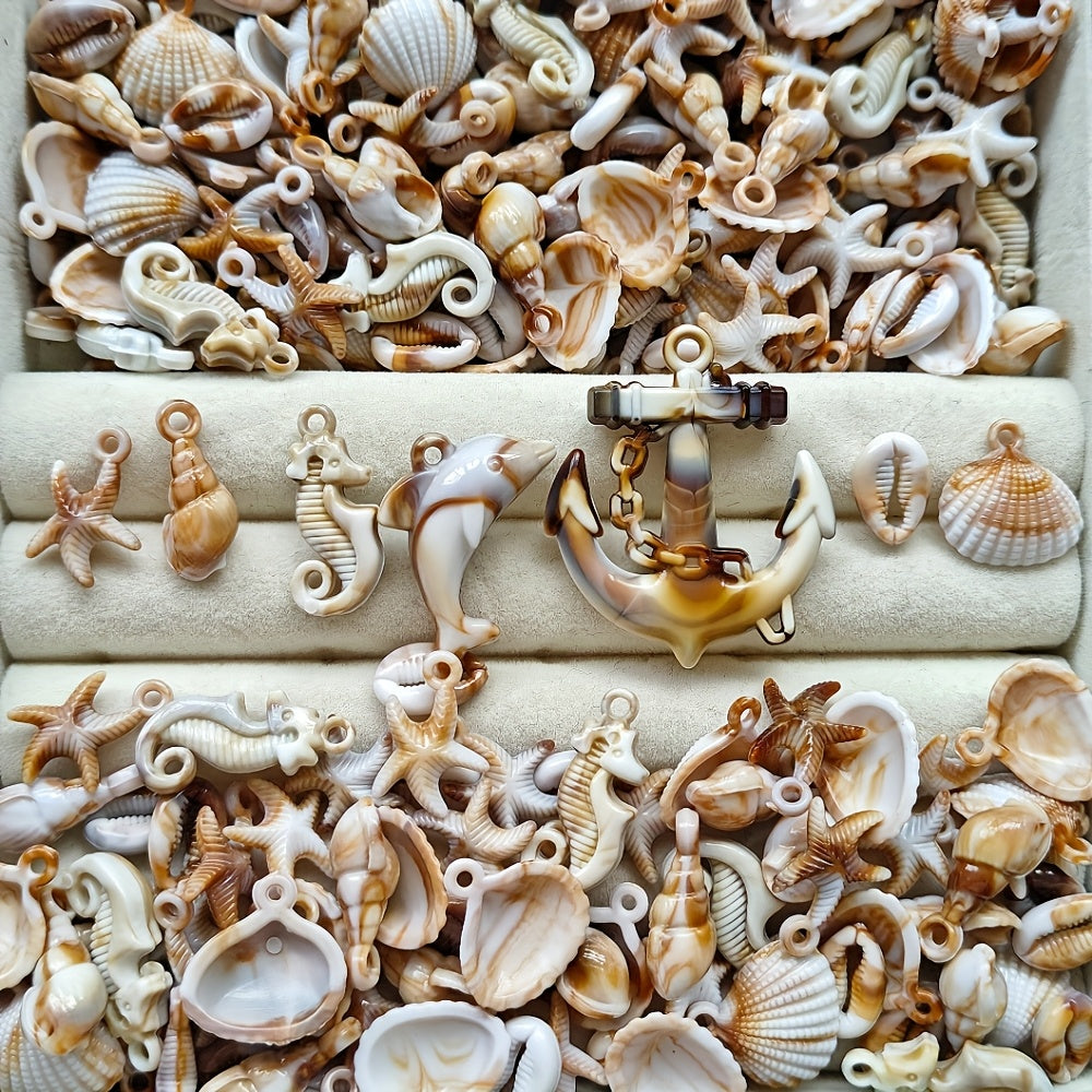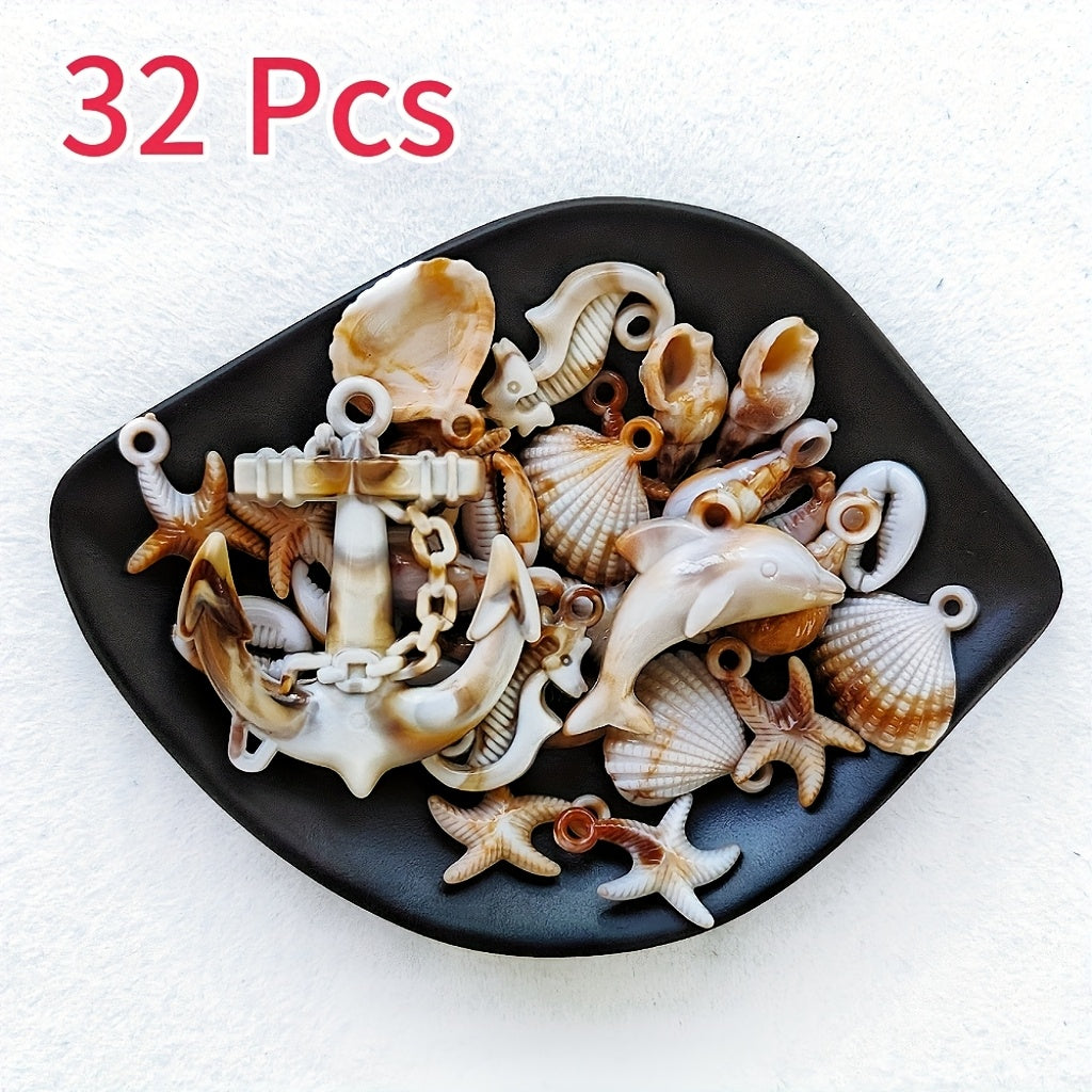 This set includes boat anchor, dolphin, seahorse, conch shell designs made of acrylic for your jewelry making projects.