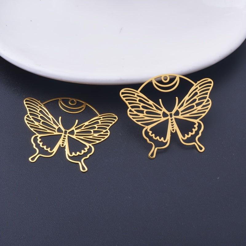 Enhance your jewelry projects with these 6pcs brass golden stainless steel filigree charms. Perfect for adding a touch of elegance to your designs.