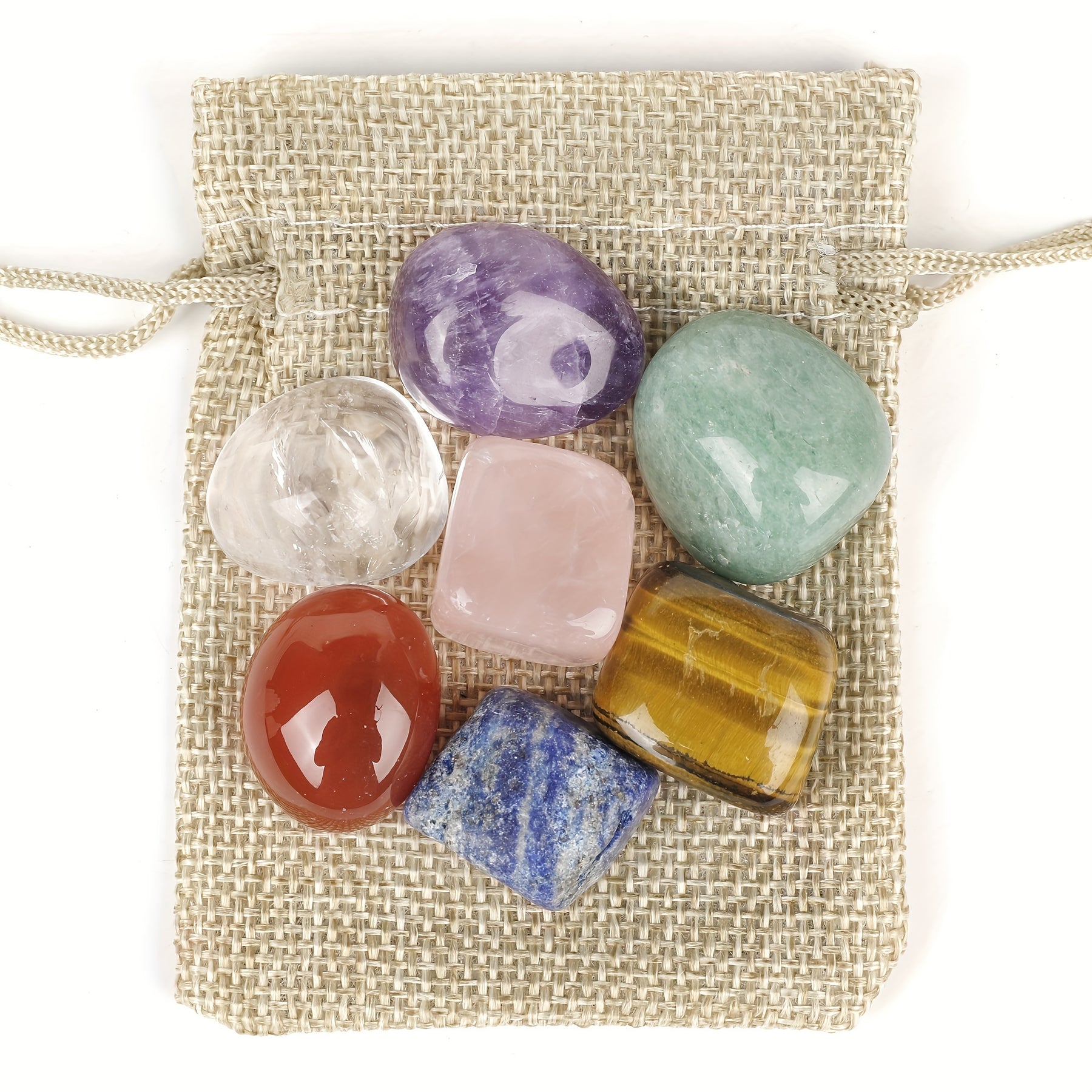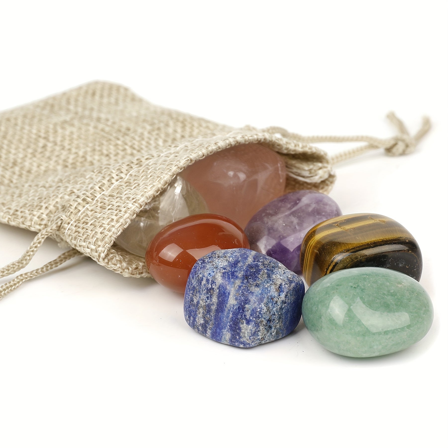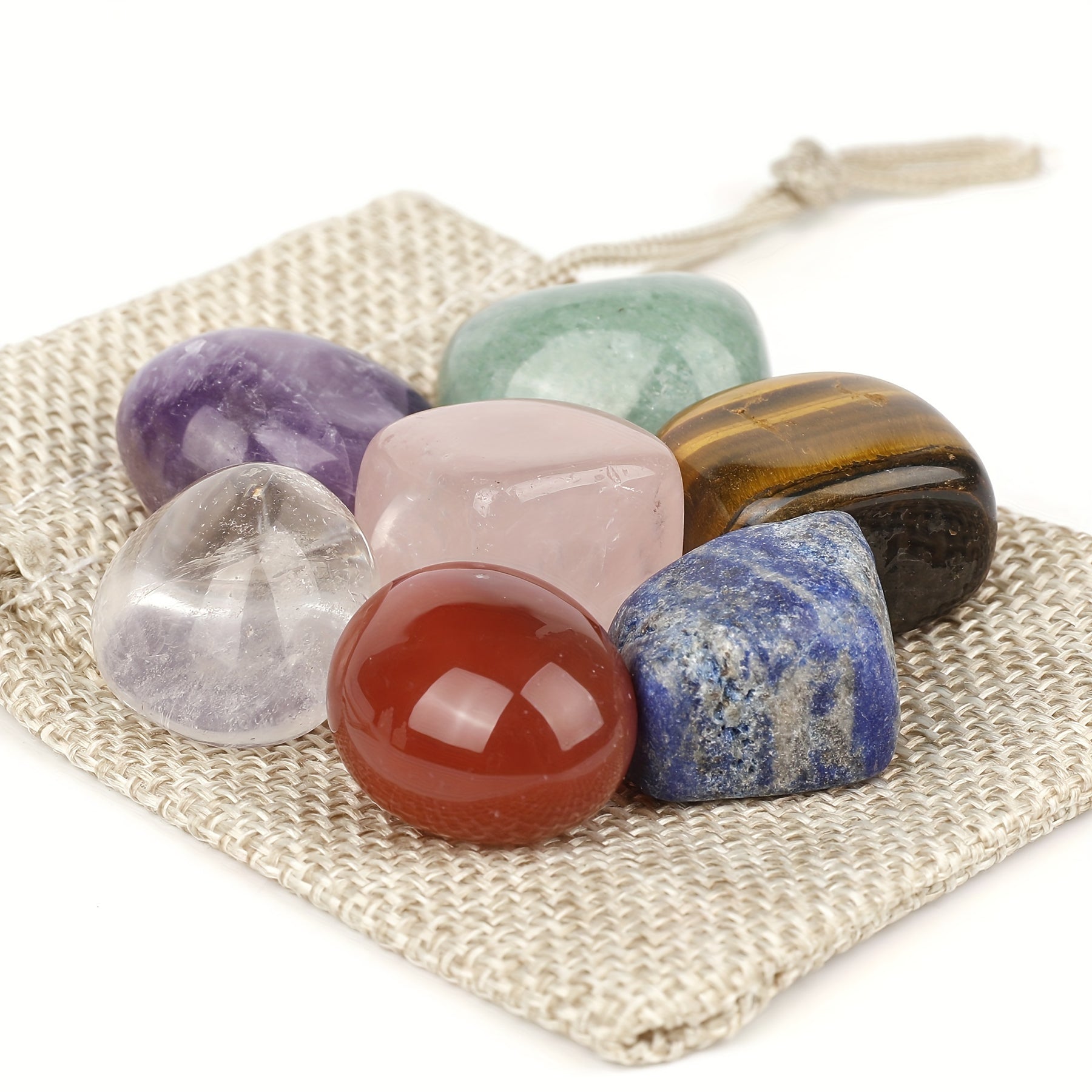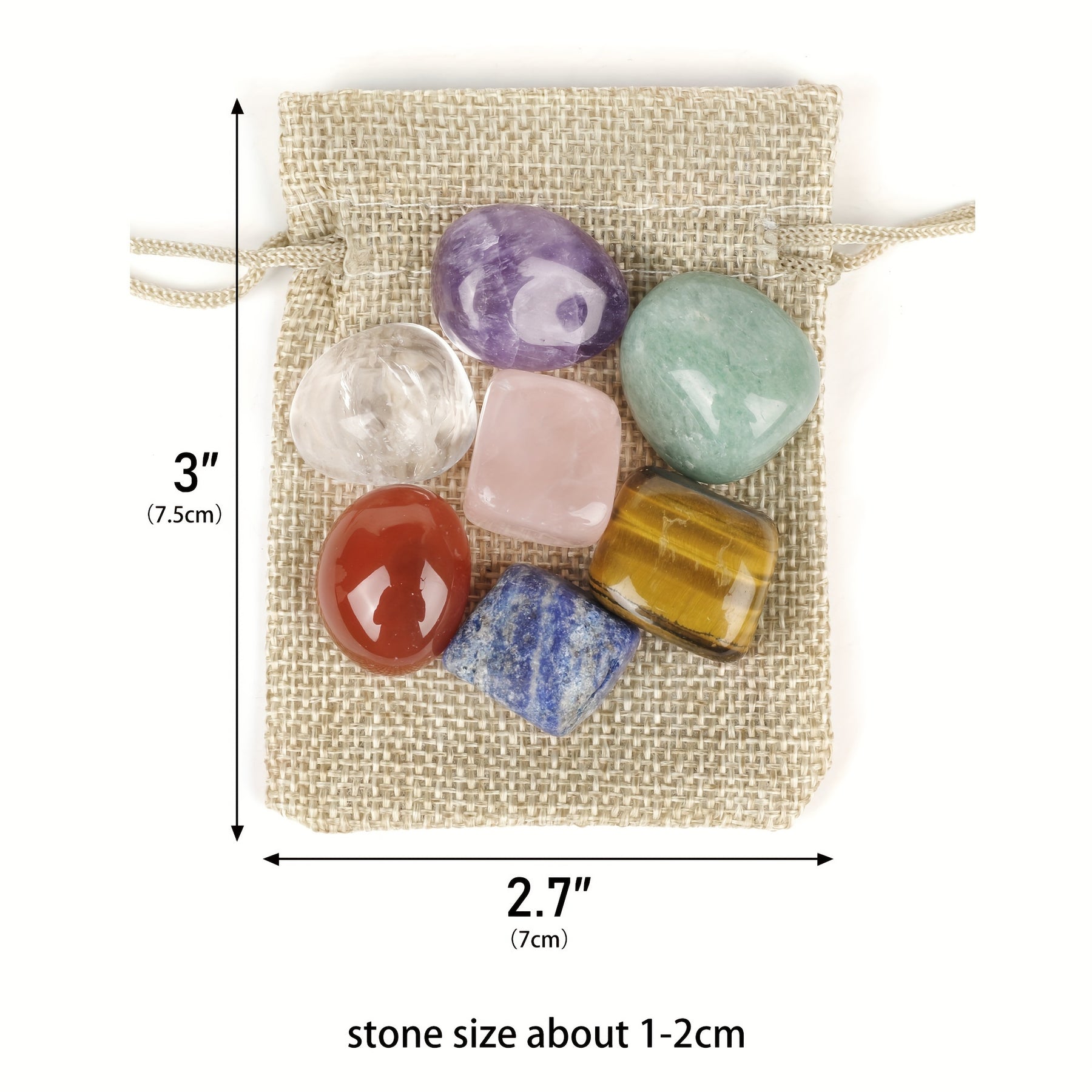 Enhance your crystal healing practice with this set of 7 irregular stones representing the seven chakras. Each stone is unique and measures approximately 0.39-0.79 inches.