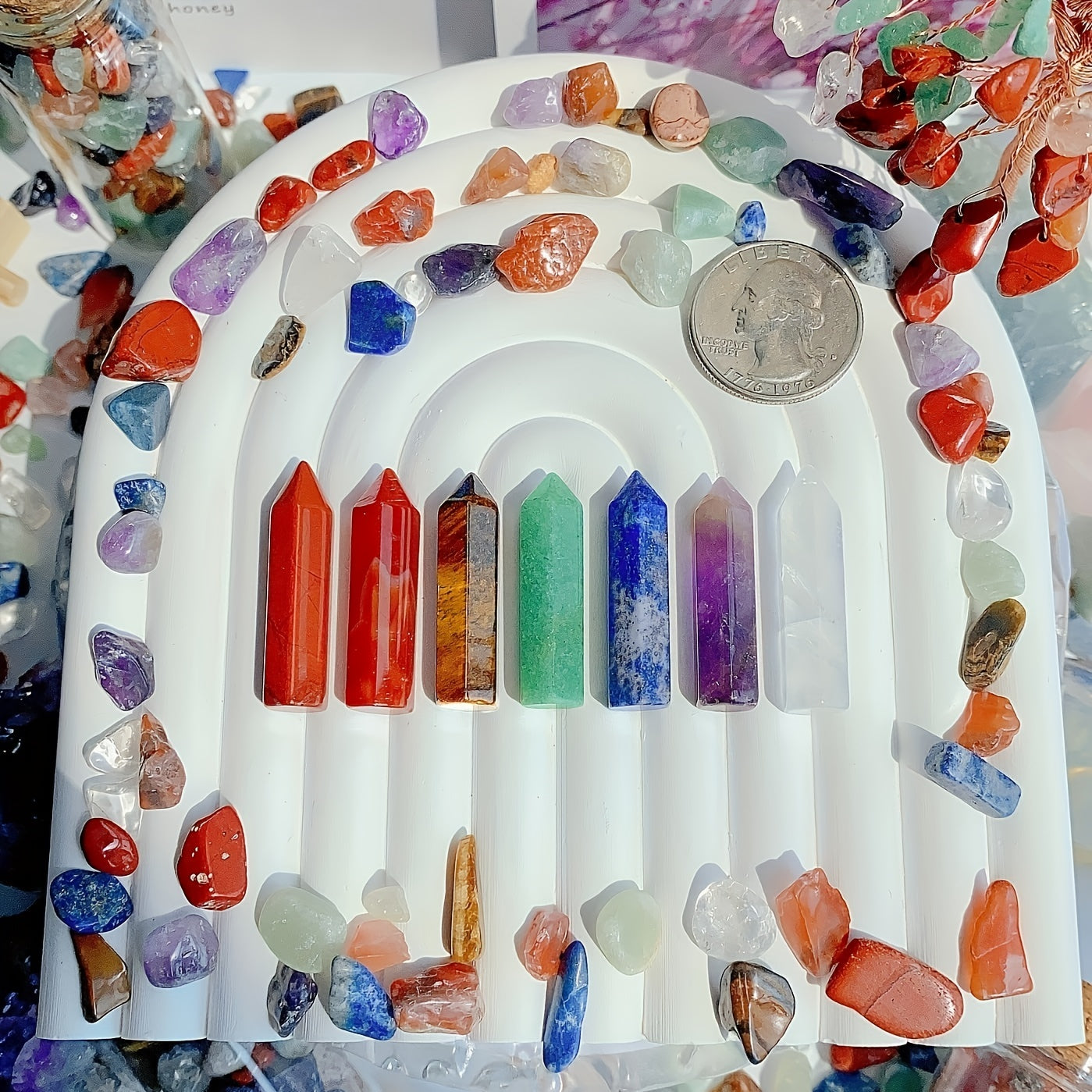 Natural crystal stones ideal for energy healing, interior decoration, and jewelry making. Each stone represents one of the 7 chakras.