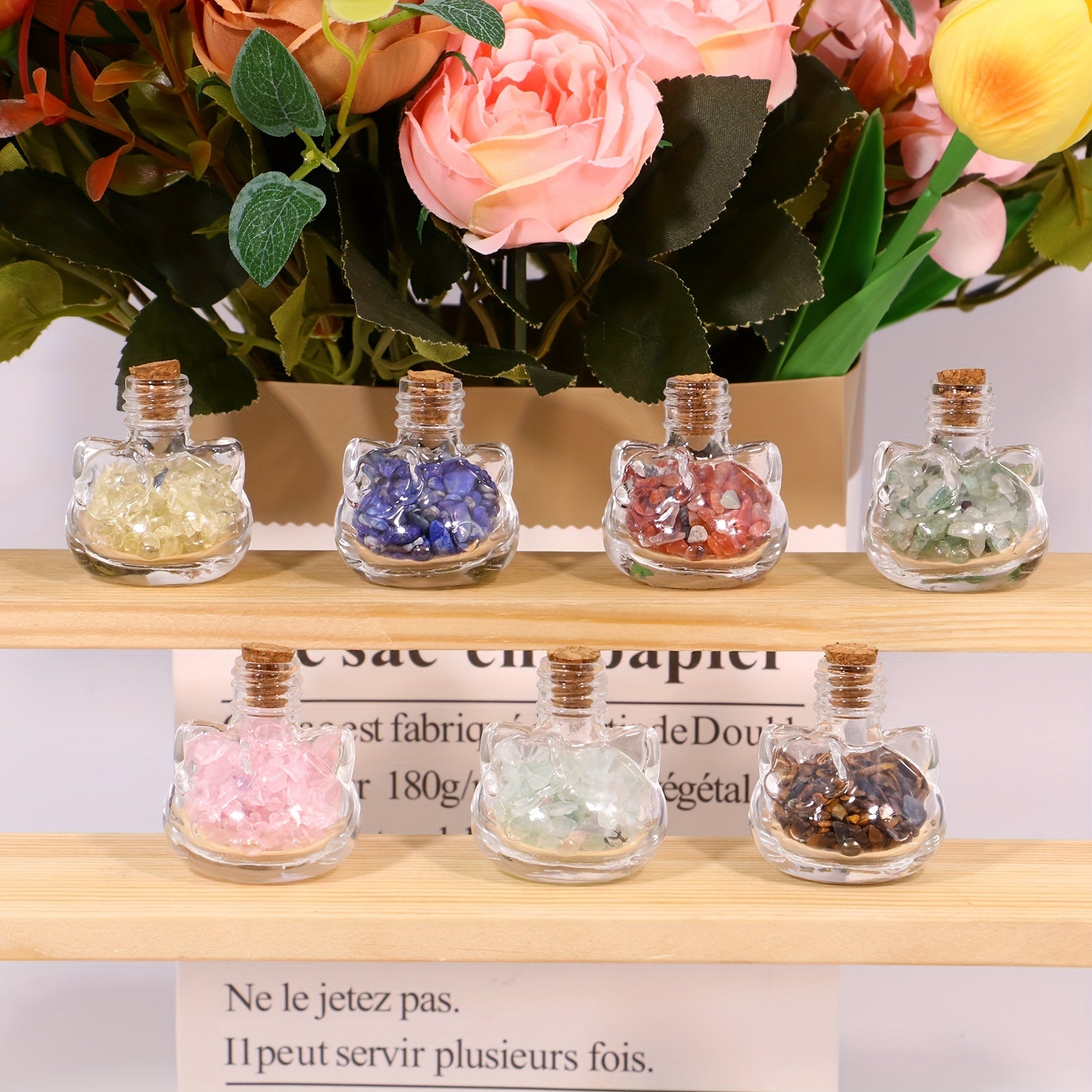 Bring a touch of elegance to your home with this 7-piece kitten-shaped crystal gravel set in an amethyst glass bottle. Perfect for adding style and charm to any room.
