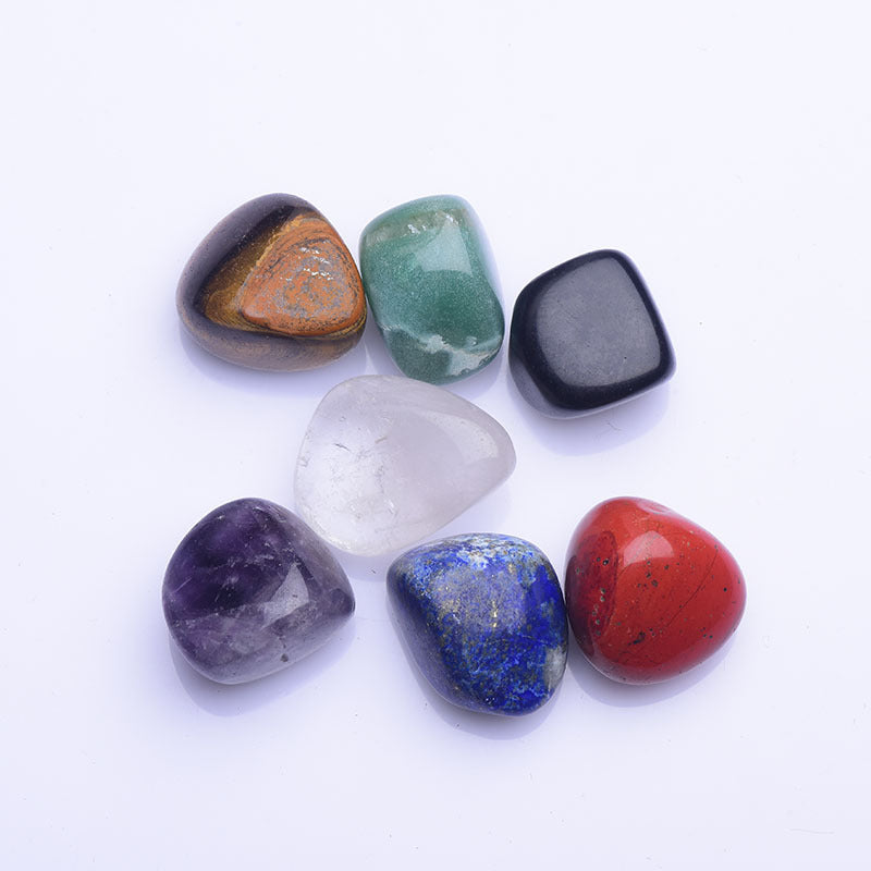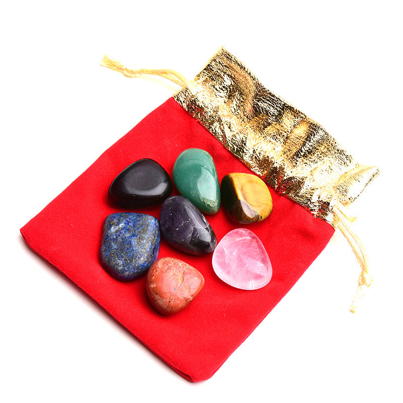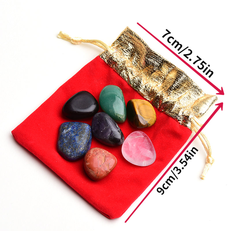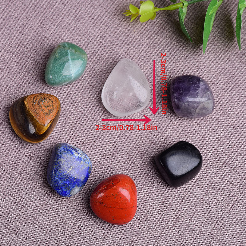 Enhance your yoga practice with this 7-piece set of natural quartz chakra stones. Each stone represents one of the seven chakras and is perfect for reiki healing or meditation. Manual polishing ensures quality.