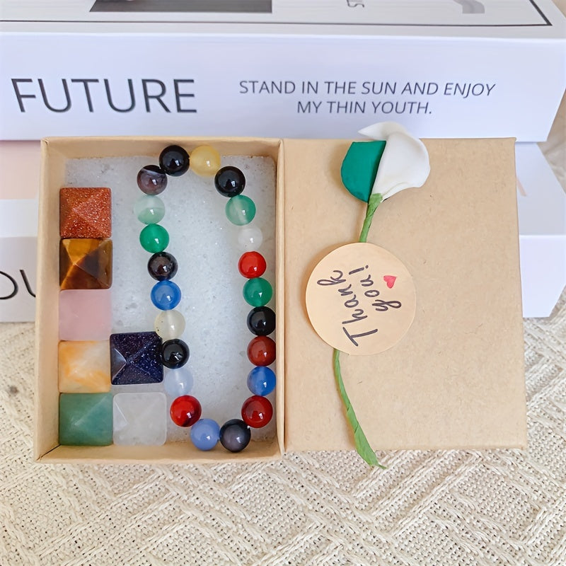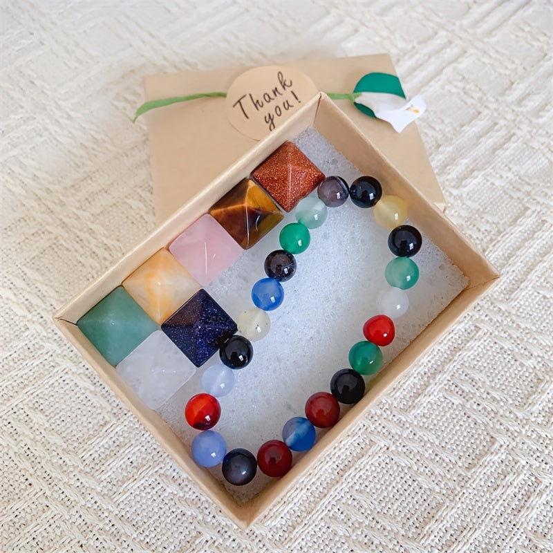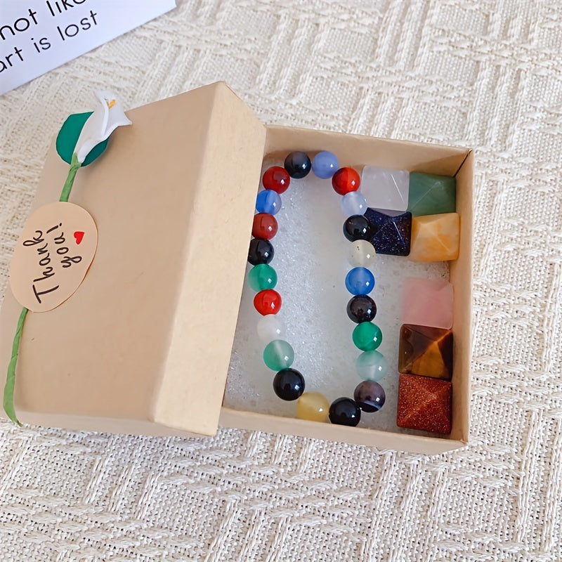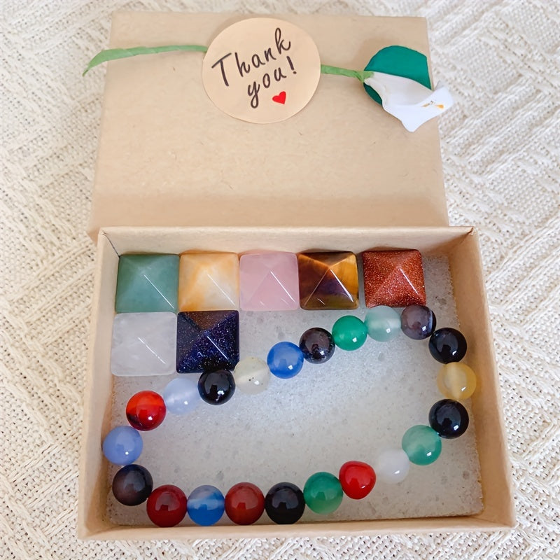 Discover the beauty of natural quartz with this crystal surprise box featuring pyramid carvings and a bracelet mix. Perfect for crafts and décor.