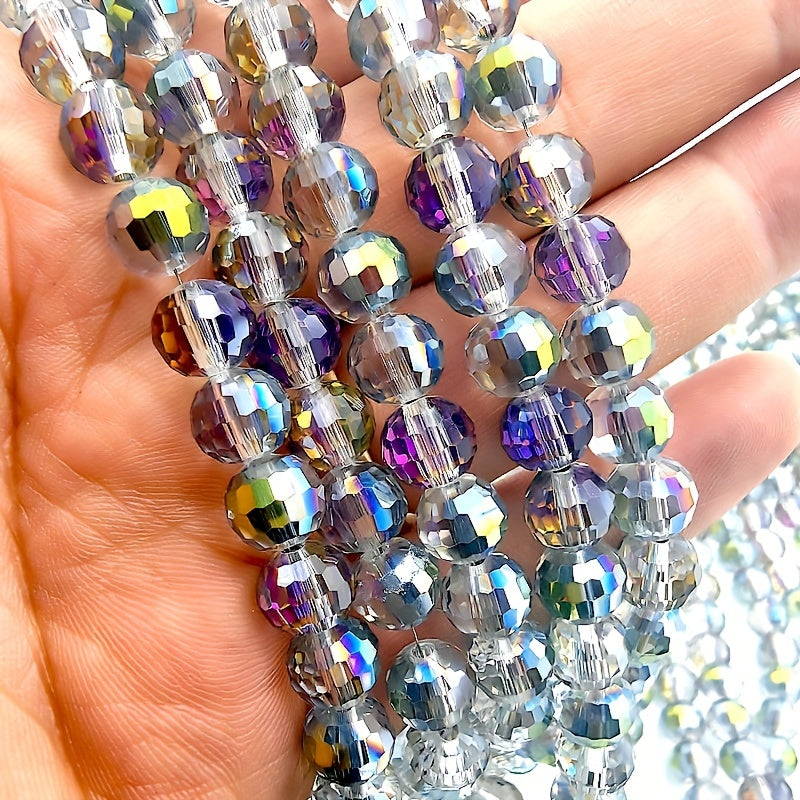 These 8mm glass beads in rose green AB color are perfect for jewelry making. The faceted shape and colorful crystal spacer beads add a touch of elegance to your creations.