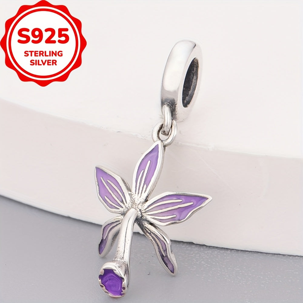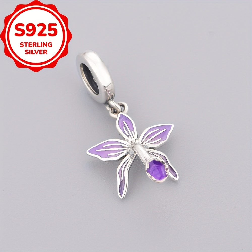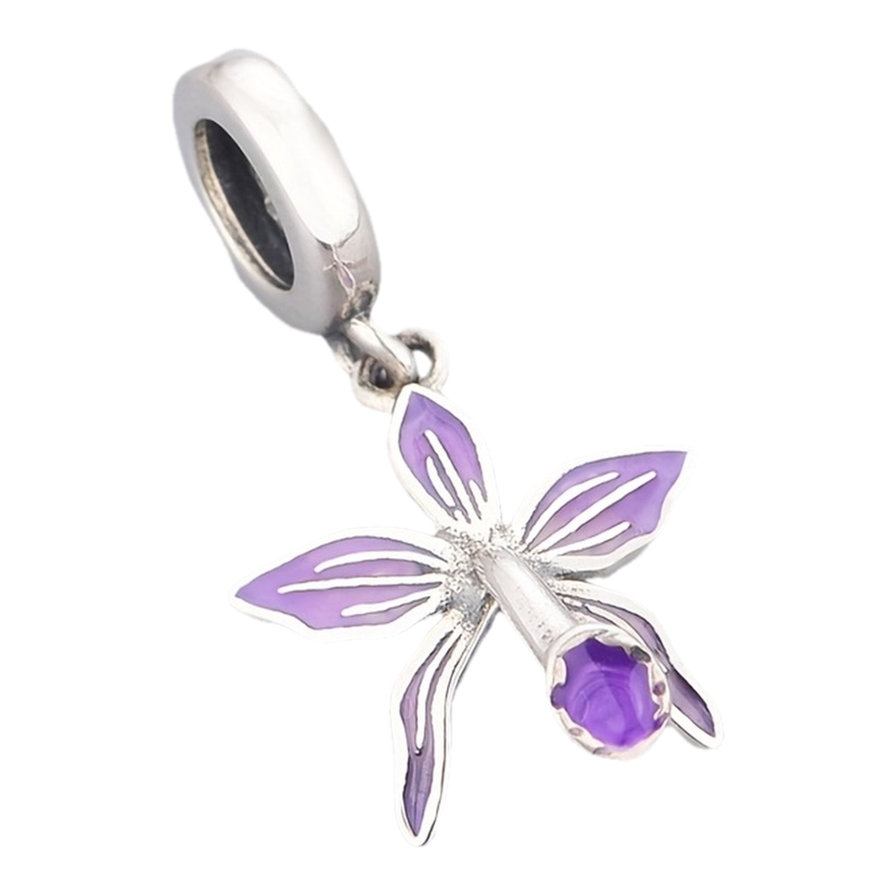 This 925 sterling silver purple orchid charm pendant is perfect for creating your own bracelet or necklace. It makes a great gift for birthdays, Mother's Day, or Easter.