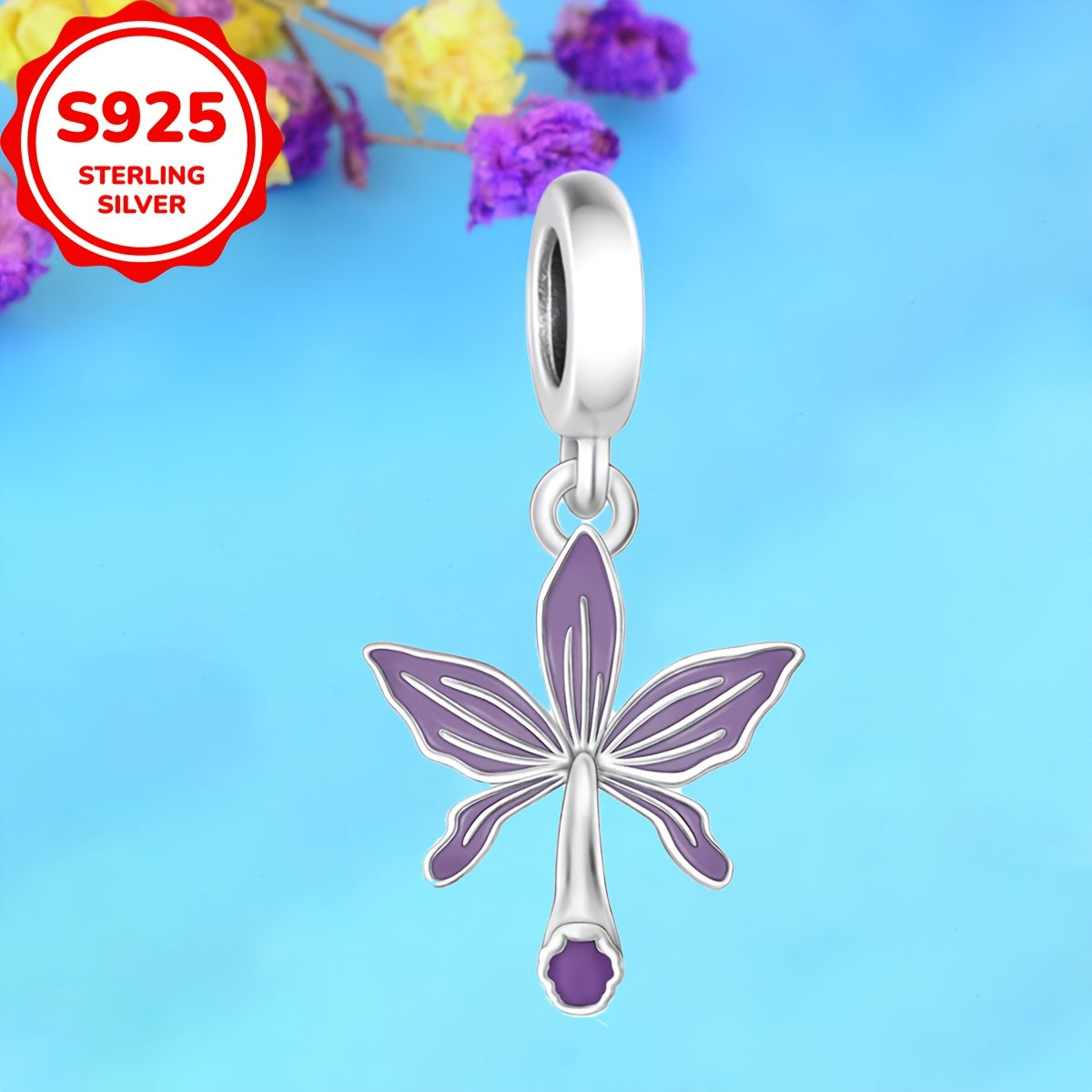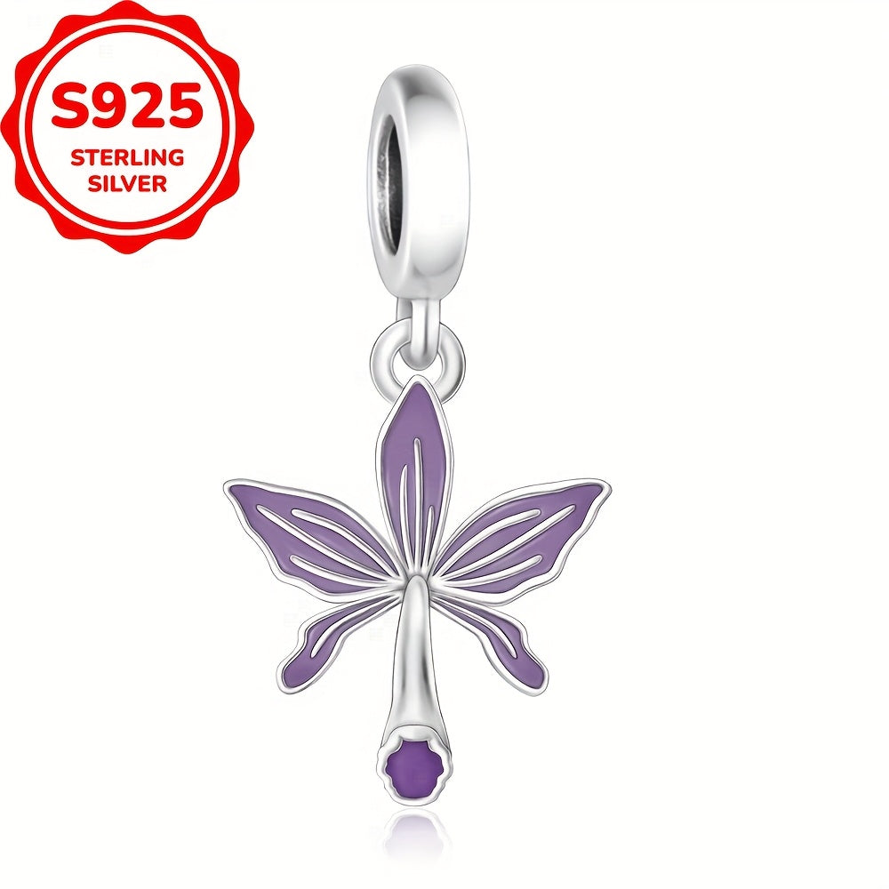 925 Silver Purple Orchid Charm Pendant DIY Bracelet Necklace Jewelry Gift