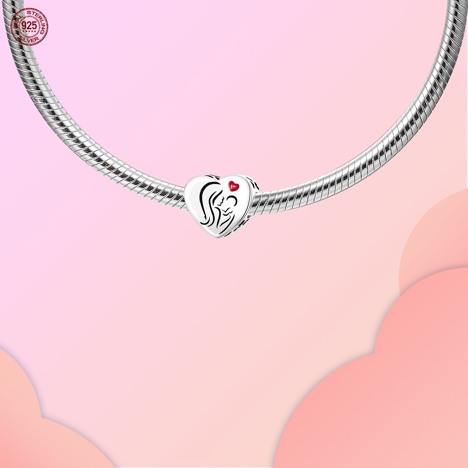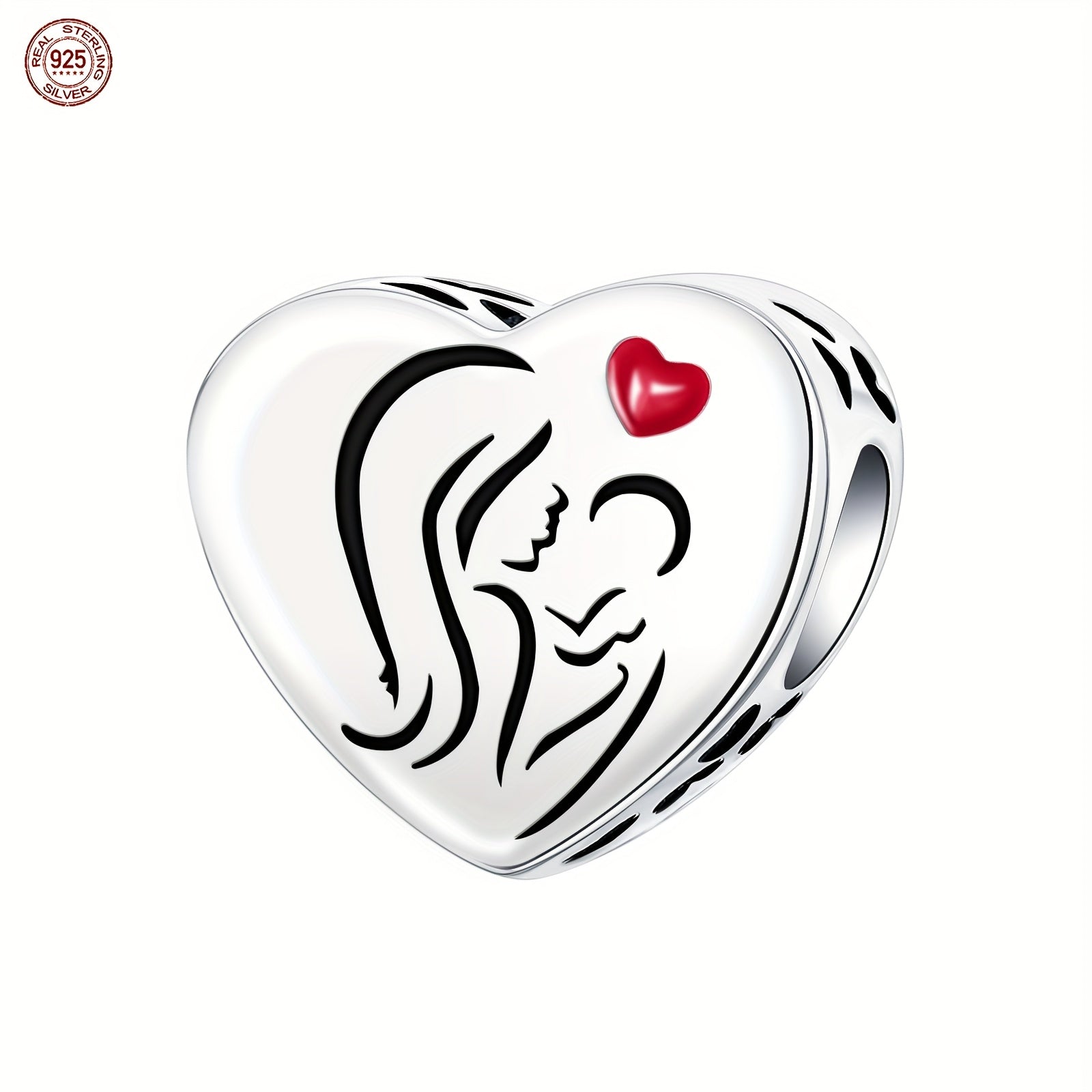 Create unique bracelets and necklaces with this sterling silver red family series parent heart zirconia pendant. Ideal for women who cherish family bonds.