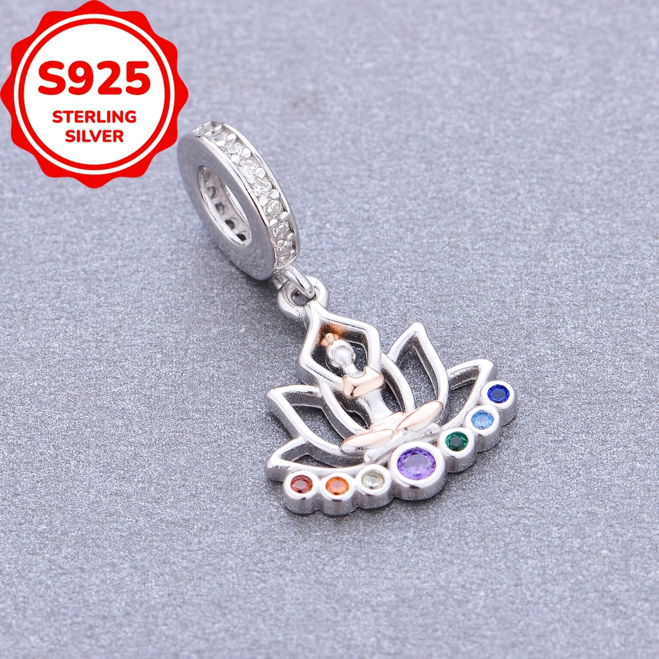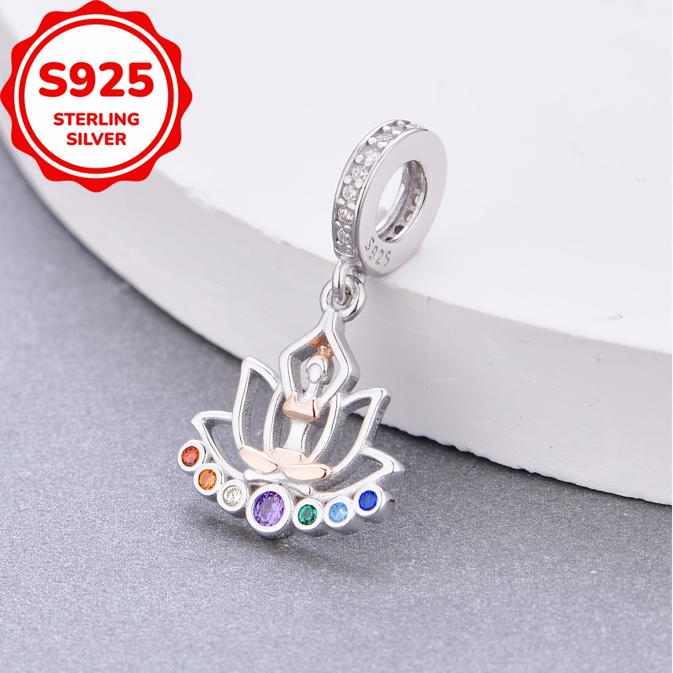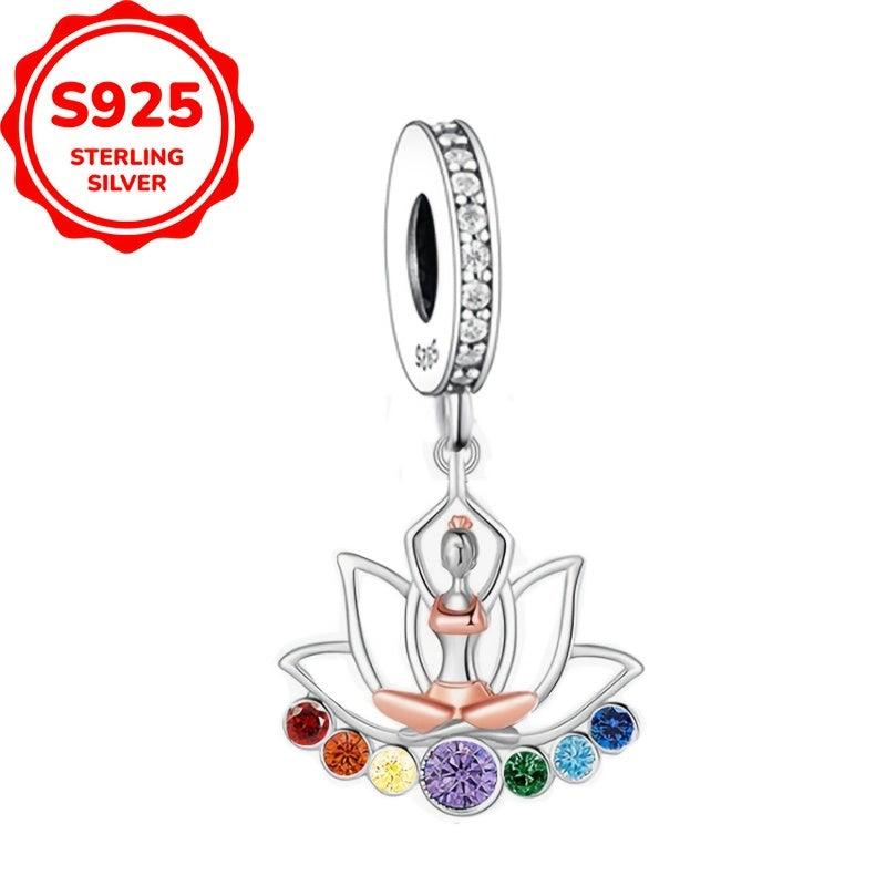 925 Silver Yoga Lotus Throne Pendant Rose Plated with Synthetic Zirconia