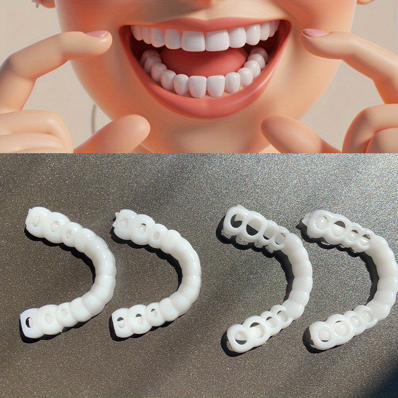 This set includes 4 adjustable clip-on dentures for natural upper and lower models. Suitable for both men and women in all seasons.