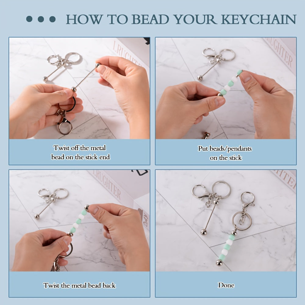 These metal beadable keychain rods are perfect for creating personalized keychains. Ideal for DIY crafts, Christmas presents, and Valentine's Day gifts.